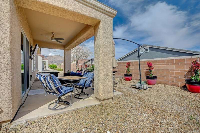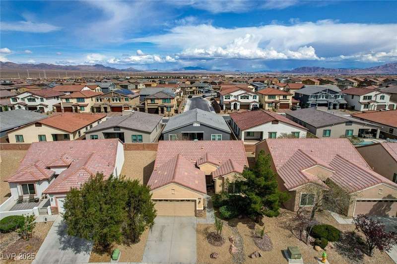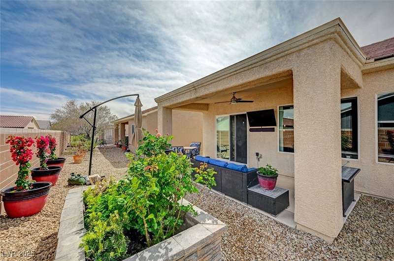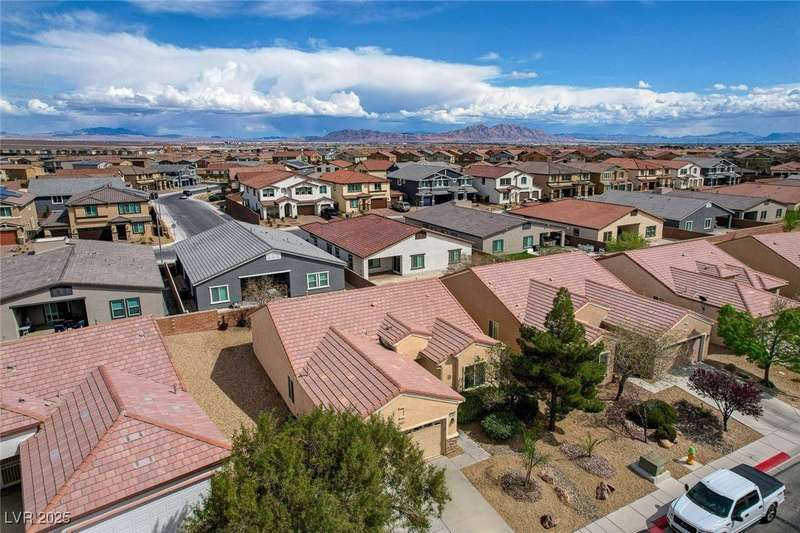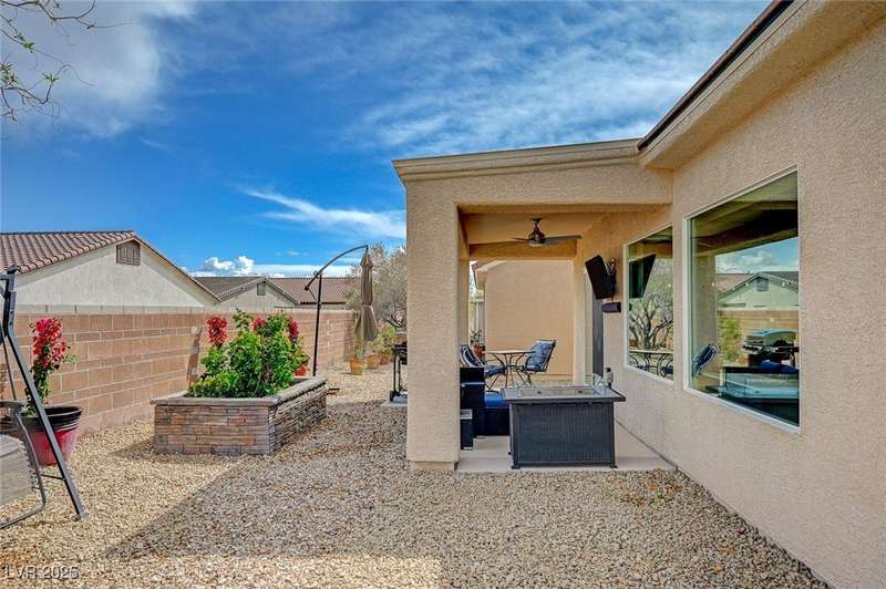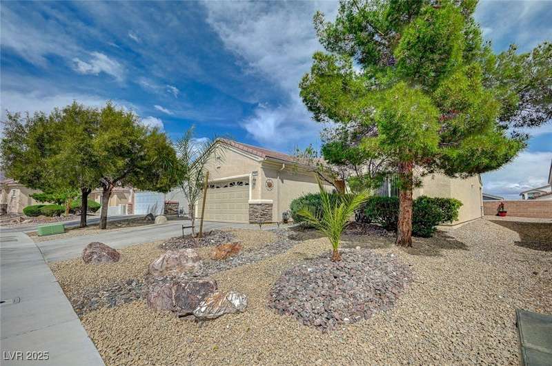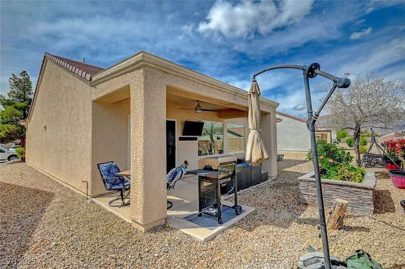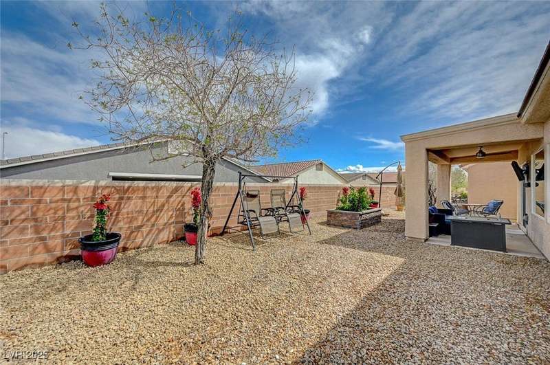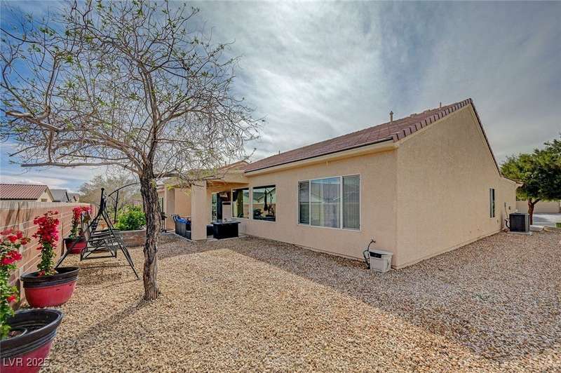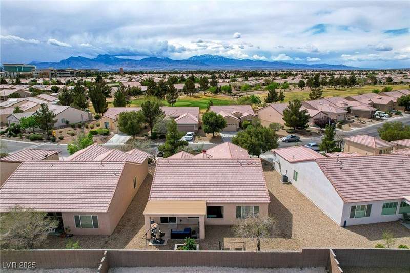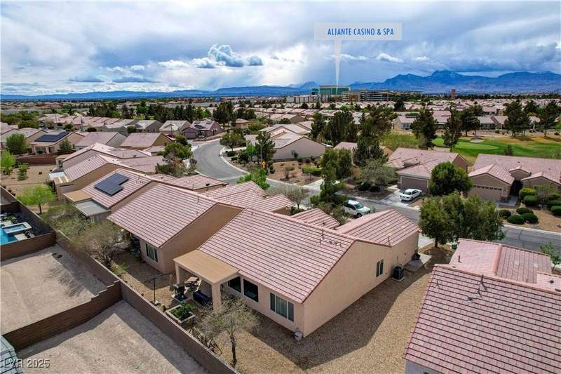 Discover this stunning single story home in the highly desired age qualified Sun City Aliante community! Featuring 2 beds + den, 2 baths, and breathtaking mountain views, this home offers an open-concept design with a spacious kitchen, large breakfast bar, granite countertops, 2 pantries, and all included stainless steel appliances. The primary suite boasts a huge walk-in closet and picture windows. Enjoy luxury vinyl plank & tile flooring throughout, custom fireplace, upgraded light fixtures, and a den that can serve as a third bedroom. The backyard oasis includes a covered patio with a Charbroil Gas BBQ with an option to fully fence and a garden area. The finished 2 car garage features epoxy floors, a workshop, ample storage, 30-amp outlet, full water treatment/filtration system & water softener. Sun City Aliante offers top tier resort-style amenities: golf, indoor & outdoor pools/spas, tennis, pickleball, basketball courts, clubhouse, fitness center, and more! Don’t miss this one!