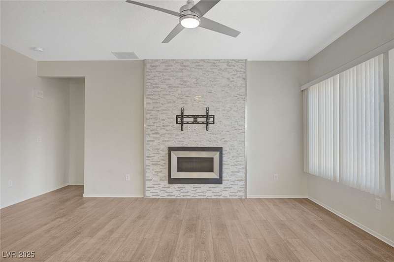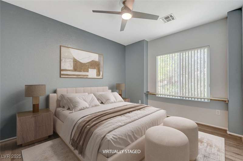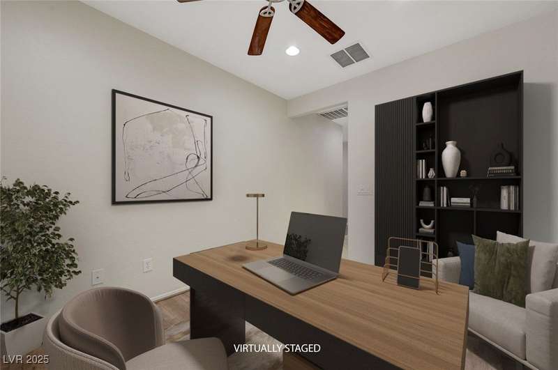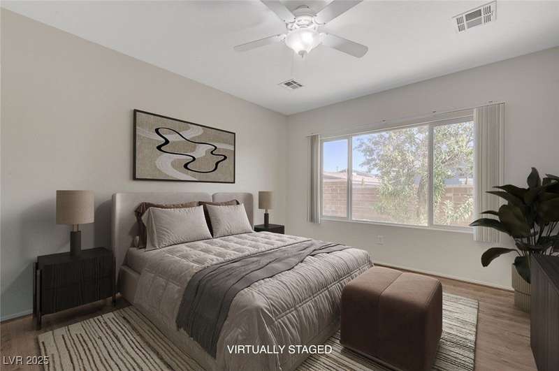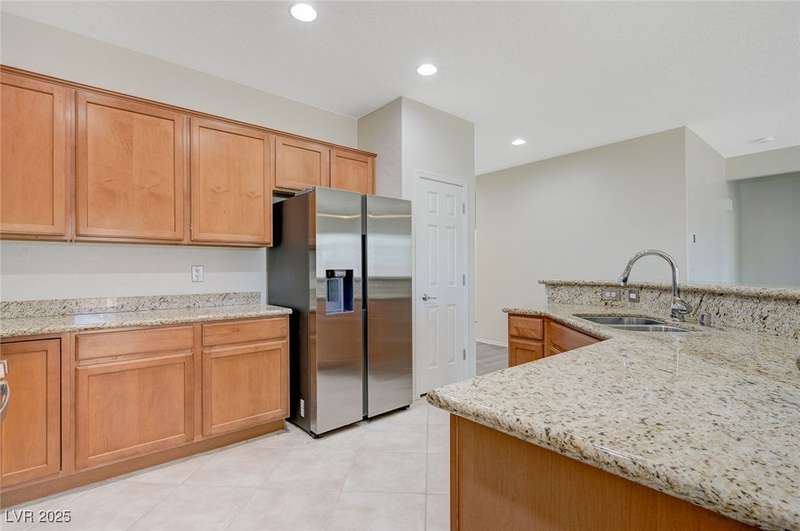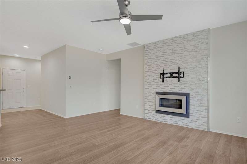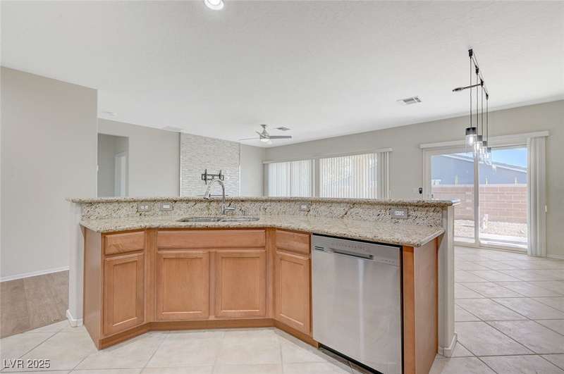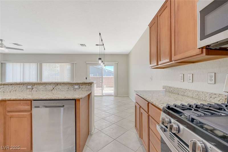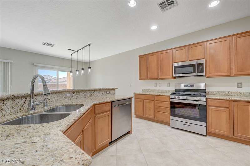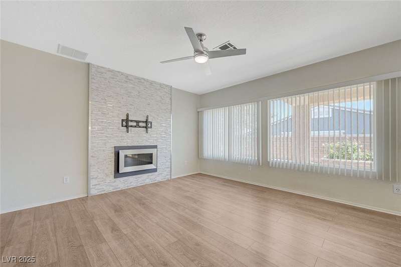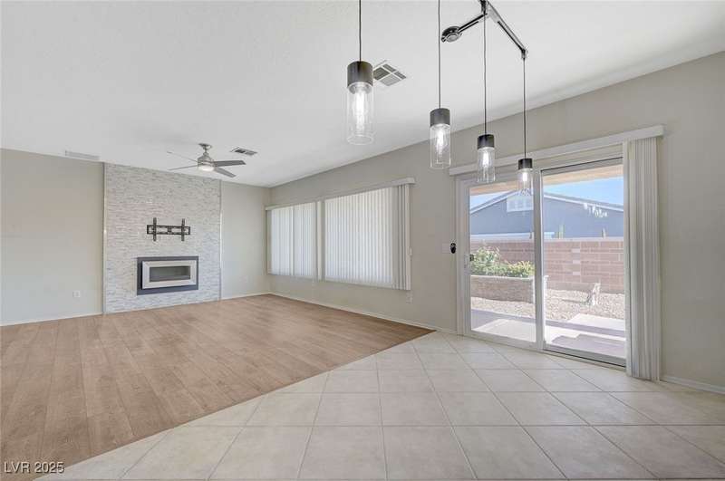 Discover this stunning single story home in the highly desired age qualified Sun City Aliante community! Featuring 2 beds + den, 2 baths, and breathtaking mountain views, this home offers an open-concept design with a spacious kitchen, large breakfast bar, granite countertops, 2 pantries, and all included stainless steel appliances. The primary suite boasts a huge walk-in closet and picture windows. Enjoy luxury vinyl plank & tile flooring throughout, custom fireplace, upgraded light fixtures, and a den that can serve as a third bedroom. The backyard oasis includes a covered patio with a Charbroil Gas BBQ with an option to fully fence and a garden area. The finished 2 car garage features epoxy floors, a workshop, ample storage, 30-amp outlet, full water treatment/filtration system & water softener. Sun City Aliante offers top tier resort-style amenities: golf, indoor & outdoor pools/spas, tennis, pickleball, basketball courts, clubhouse, fitness center, and more! Don’t miss this one!