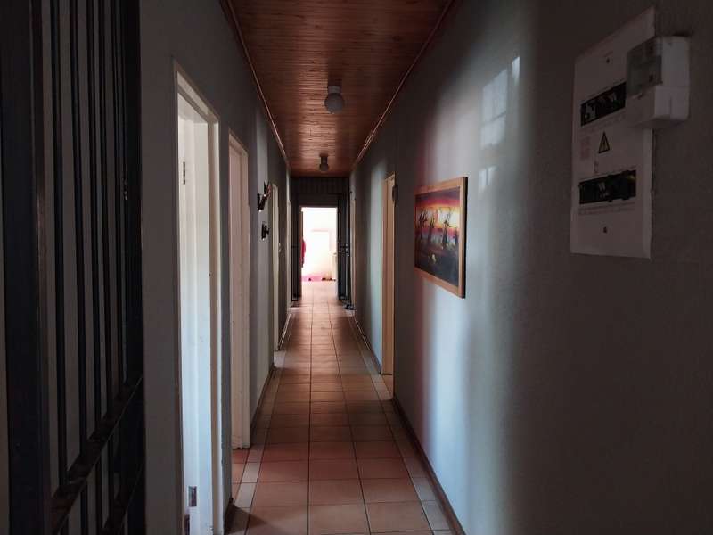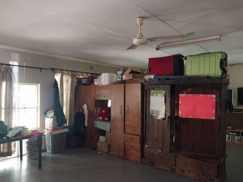 Situated in a popular area of ou dorp this property offers you 6 Bedrooms with cupboards , tiled floors curtailn rails 3 Bath rooms of which one is en - suite at the main bedroom with bath toilet and basin and a seconf bsthroom with shower basin and toilet and a children's bathroom for a school with 5 toilets and 3 basins Kitchen come with lots off cupboards , tiled floors , 4 plate gas hob with an electric oven separate wash up Laundry next to the kitchen with electrical points for washing machine Lounge with a fire place Tv room Dining room There is a big spacious entertainment room borehole not equiped 2 double garages and a big carport Electrical fencing Motorise gate store room