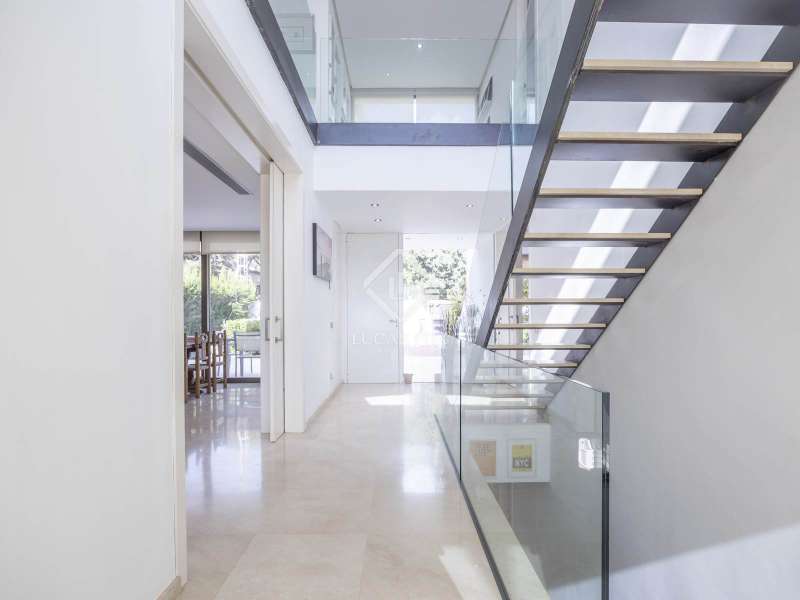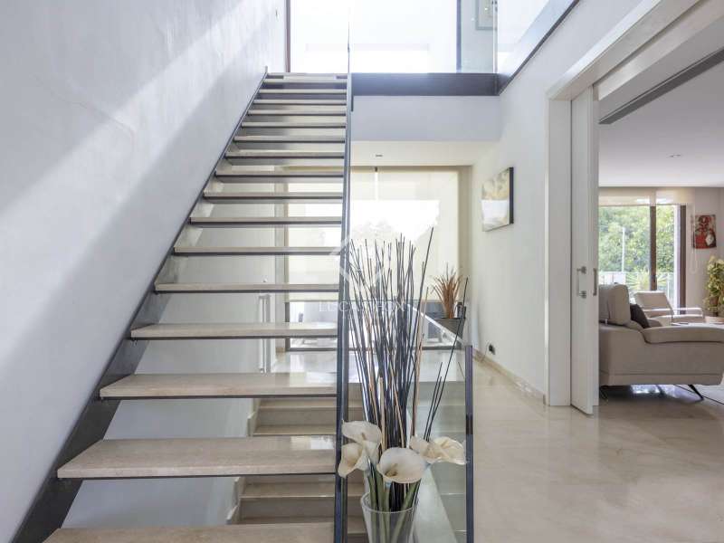Lucas Fox presents this comfortable home with a modern design in a prime location in Campolivar. The spacious house has a contemporary style, with straight lines and materials such as glass, giving it a very elegant and bright feel. On the main floor , we find a modern and functional island kitchen with integrated appliances . The spacious living-dining room is very bright, ideal for gatherings or family gatherings. There is also a double bedroom and a full bathroom with a shower. Ascending a staircase with a glass railing, we reach the upper floor , where there is an study-style room, perfect for working or studying in a quiet environment. There are also two double bedrooms that share a bathroom with a bathtub, and the main bedroom, which has an open dressing room and a full bathroom with double sinks. The property has several English patios that provide natural light. The property features underfloor heating , hot/cold ducted air conditioning , a water softener, and a water heater, among other modern features that provide comfort and energy efficiency. It also has a large garage with capacity for up to three vehicles. In the basement, there's an open-plan area that can be used as a gym or games room, among other things, as well as a utility room, ideal for storage or laundry room. Exterior, there's a porch and several terraces for enjoying the outdoors, along with a pool perfect for cooling off on hot days. It's a house that combines bright and functional interior spaces with outdoor spaces designed for leisure and relaxation. It's also located in a prestigious, safe residential area with all amenities nearby.