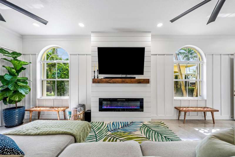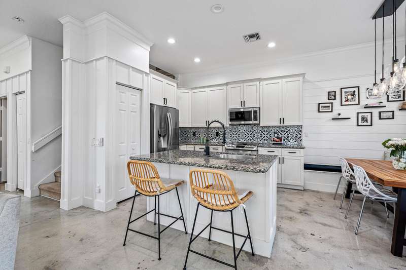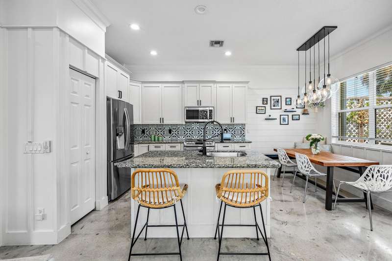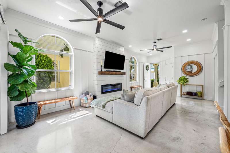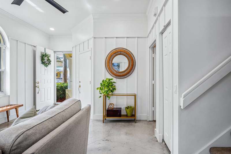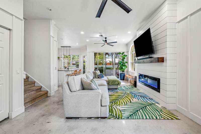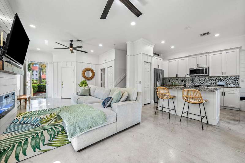 Welcome to Barefoot Cove, a tropical paradise gated waterfront community where every day feels like a vacation. This beautifully updated 3-bedroom + den, 3-bathroom end unit townhome offers the perfect blend of privacy, comfort, and coastal charm. Located directly across from the Intracoastal-front pool, this residence is one of the most desirable spots in the neighborhood.Step inside to discover thoughtfully upgraded interiors, including all remodeled bathrooms, custom Crate & Barrel light fixtures, and dimmer switches throughout for a perfectly curated ambiance. The screened sunroom and expansive patio provide ample outdoor living space to relax, entertain, or simply enjoy the tropical surroundings.Additional highlights include a rare 2-car garage, flexible den/office