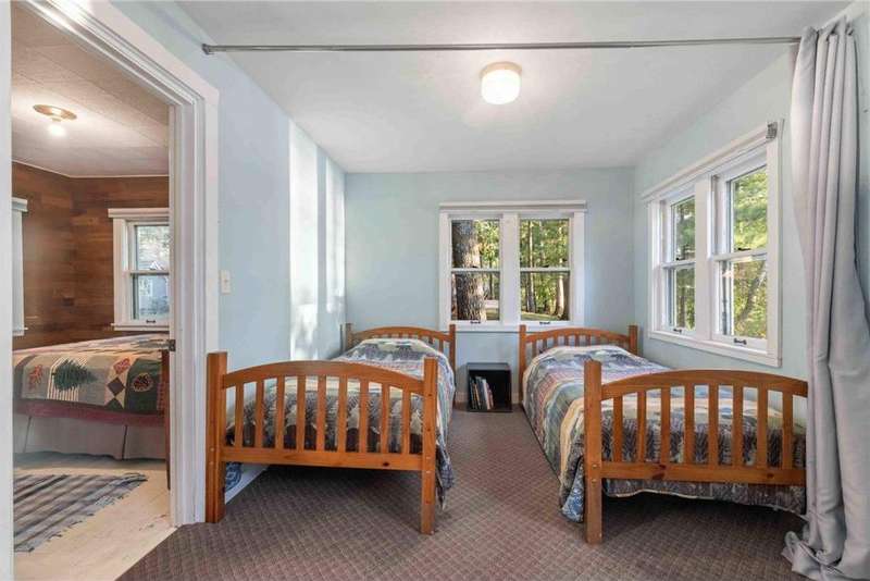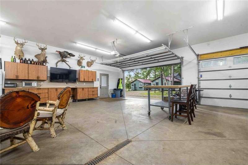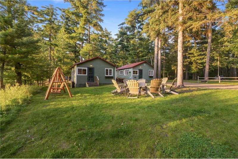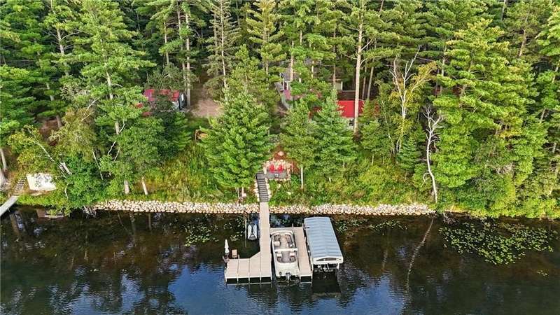 West-facing on beautiful Clark Lake, this property offers 167 feet of shoreline with breathtaking sunset views. A heated 8-car tandem garage provides exceptional gathering, storage and workspace. The year-round cabin is complemented by two seasonal cabins and a bunkhouse, perfect for hosting family, friends, and guests. Proven as a successful weekly rental for 3 years, the property also features central A/C in the main cabin and a $100,000 lakefront redesign with new cement stairs, rip rap, lush landscaping, and a paver patio. Selling mostly furnished and priced well below the 2026 proposed tax value, this is a rare opportunity for both personal enjoyment and strong investment potential.