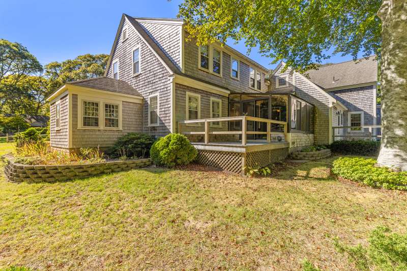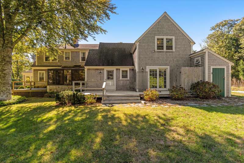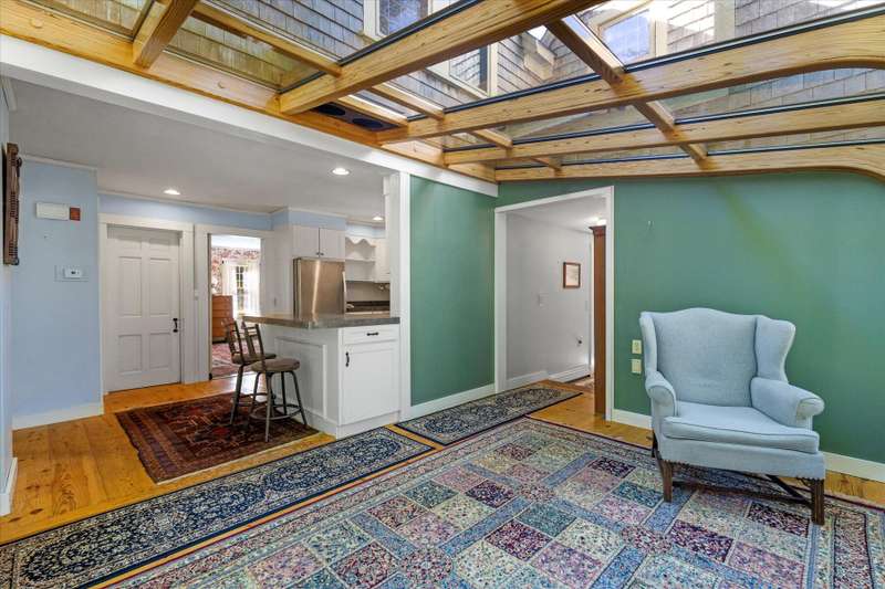 Timeless Cape Cod charm meets modern comfort in the heart of Harwich Center. Set on a beautifully landscaped lot with mature trees and gardens, this lovingly maintained home blends the craftsmanship of the past with today's conveniences and new primary suite. The bright, inviting living areas feature wide plank floors, built-ins, and period details enhanced by thoughtful updates throughout. The kitchen combines classic cabinetry opening to the atrium overlooking the beauty of the rear yard.Upstairs, airy bedrooms capture the Cape light, while updated baths balance charm and function. Step outside to your private oasis--brick walkways, stone patios, and lush perennial gardens create a serene setting for outdoor dining or quiet reflection. Just beyond the gardens, discover the multi-purpose barn--a character-filled space ideal as a workshop, artist's studio, home gym, or guest retreat.Stroll to Harwich Center, Brooks Free Library, or Brooks Park--or head less than a mile to Bank Street