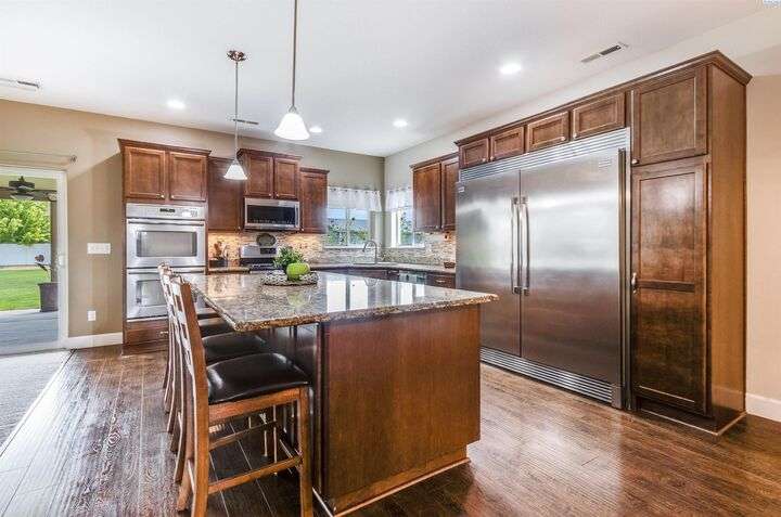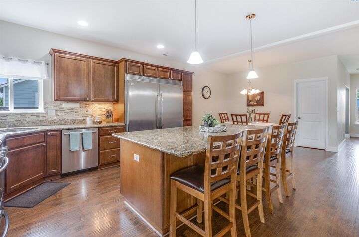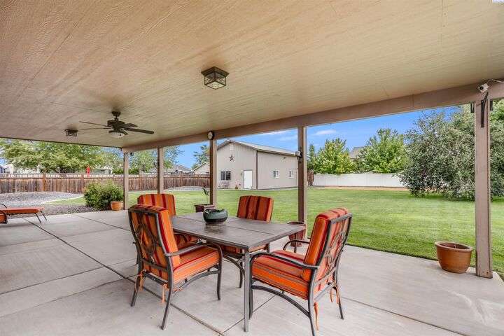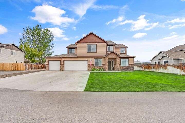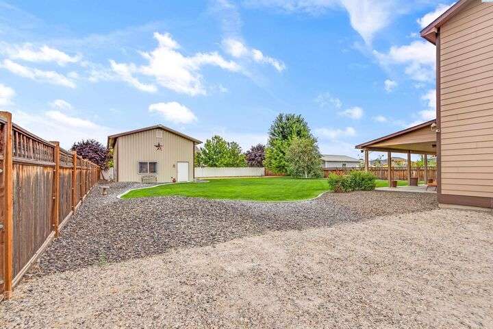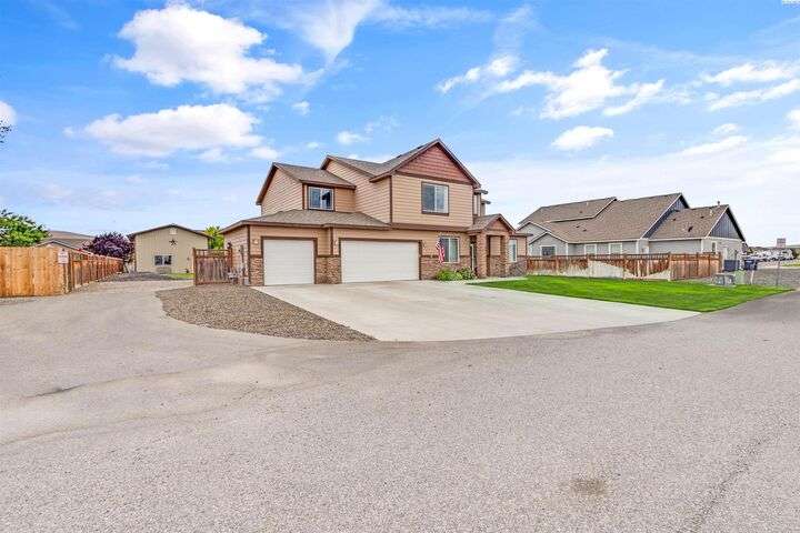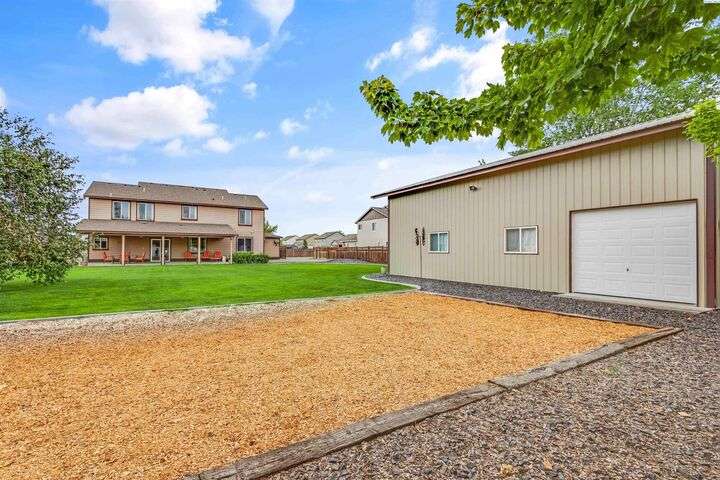 MLS# 286424 THIS IS THE ONE!!! This 5 bedroom 2.75 bath 2 story has everything you've been dreaming of. Located on a half acre and a private drive - this home has something for everyone. The chef's kitchen has a large breakfast bar island with storage, stainless steel appliances (including the HUGE fridge) granite counters with full stone backsplash, spacious 10x4 pantry and an adjacent eating area. The great room concept allows for lots of entertaining space. A main level guest bedroom with .75 bath could be a 2nd primary bedroom for guests, grandparents and more. There is engineered hard surface flooring in the front living room, foyer/hallway, kitchen and dining nook and new carpet installed at the end of July '25! The 16x16 primary bedroom has a full bath with dual sinks, corner soaking tub, shower, private water closet and walk in closet. The additional 3 guest bedrooms all have walk in closets too! The upper level family/bonus room is perfect for a playroom, media room, craft room, etc. The 35x17 covered patio awaits for endless outdoor shaded entertaining and a ceiling fan for cool breezes. The 24x40 detached shop is set up currently as a huge hobby room with dual ceiling fans, carpeting and mini split system for heating and cooling. The window can be replaced with a 14ft overhead door in the future if needed!! The single bay garage/storage in the back has an 8 foot door and tons of shelving for storage. The shop is currently wired with a 60 amp service, but it can support 100 amps! The entire property has timed underground sprinklers and is fully landscaped. The yard is almost completely fenced - it just needs a gate on the East side. Located a short distance to Enterprise Middle School, Yokes Fresh Market, restaurants, coffee and more!