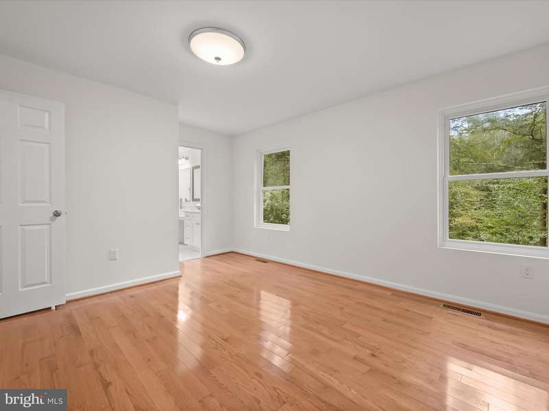 Nestled on a wooded cul-de-sac in the serene Forest Hills subdivision, this stunning brick Colonial has been meticulously renovated in 2020, seamlessly blending timeless elegance with modern luxury. Spanning over 3,000 square feet across three finished levels, the home offers 4 spacious bedrooms and 4.5 bathrooms, providing ample space for both relaxation and entertaining. Step inside to discover a harmonious mix of hardwood flooring, stylish lighting fixtures, and architectural details including crown moldings and box wainscoting that elevate the living spaces. The living room welcomes you with soaring vaulted ceilings, a floor-to-ceiling brick fireplace, and glamorous chandeliers, creating an impressive focal point for gatherings. Adjacent, the den features matching wainscoting and abundant natural light, offering a distinguished space for work or leisure. The chef-inspired kitchen is a showpiece, complete with stainless steel appliances, double ovens, an induction cooktop, sparkling quartz countertops, and an expansive island perfect for casual dining or culinary creations. A butler's pantry with a wine cooler and charming window seat enhances functionality, while the dining area, with a sliding glass door leading to the balcony, provides a seamless indoor-outdoor connection for entertaining or grilling. Retreat to the main-level primary suite, a private haven with a walk-in closet and a luxurious en-suite bath featuring upgraded countertops with modern vessel sinks, and a tiled tub/shower surround accented by marble-look tile and mosaic inlay. Upstairs, one bedroom enjoys an en-suite bath, while the other two share a beautifully updated full hall bath. The fully finished basement expands the home's living and entertaining options, offering an expansive family room with a second brick fireplace and sliding glass access to the backyard. A recreation area with a granite wet bar and mini refrigerator is perfect for entertaining or cozy movie nights. The lower level also includes a laundry room and a third full bath. Outside, the property sits on a generous two-acre lot backing to lush parkland and trees, offering a tranquil escape. The balcony provides picturesque views, and the included additional two-acre lot expands the total property to four acres. With an attached two-car garage and ample driveway parking, convenience and accessibility are unmatched. Bowie, MD provides a variety of amenities for every lifestyle. Residents enjoy shopping and dining at Bowie Town Center, Hilltop Plaza, and Bowie Plaza, as well as recreational opportunities at Allen Pond Park and the Bowie Community Center. Major highways ensure easy access to Washington, D.C., Baltimore, and Annapolis, combining small-town charm with city convenience. This exquisite home is a rare find, offering luxurious interior finishes, expansive outdoor spaces, and a serene, private setting, a perfect sanctuary for those seeking elegance and comfort.