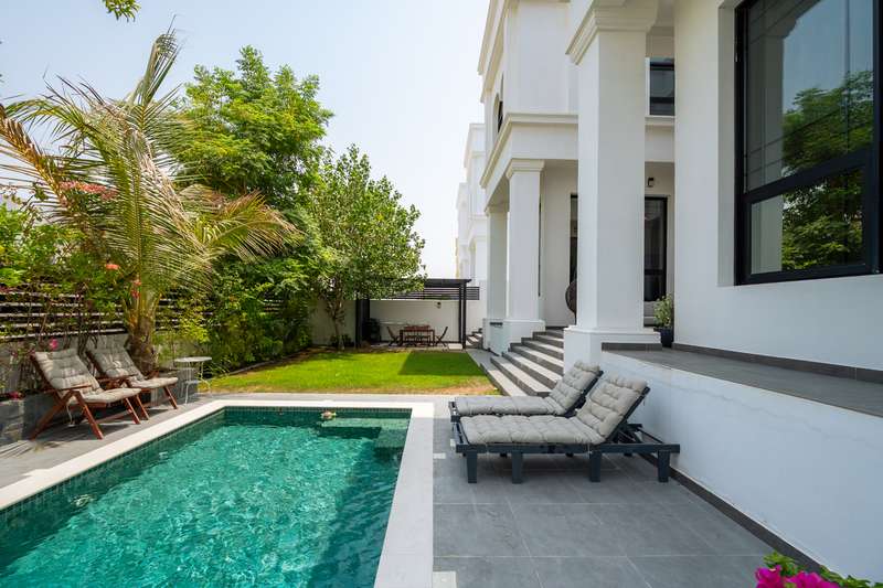Better homes is delighted to exclusively present this stunning, custom-built 5-bedroom luxury villa in Al Furjan West. This upgraded, spacious residence boasts premium finishes, offering unparalleled luxury and convenience. Property Features: * 5 Spacious Bedrooms * 7 Bathrooms * Plot size 6,556 sqft * Built up 4,900 sqft * All Bedrooms En-suite * 4 En-Suite rooms on the 1st floor with Family Landing Space * Modern Design with High End Finishing * Sleek Contemporary Kitchen * Private Pool * Private Courtyard for Outdoor Family Relaxation * Maid's Room * Driver's Room * Quiet Location Al Furjan West is a peaceful residential neighborhood that combines traditional charm with modern amenities and is popular with the families due to its strategic location and exceptional connectivity. The community also stands out for its convenience, offering a variety of nearby amenities to support everyday living. This villa is a standout property in Al Furjan, offering a blend of elegance, comfort, and prime location. Finance is available through Better homes in-house mortgage team. Call Better homes to arrange a private viewing of this magnificent property.