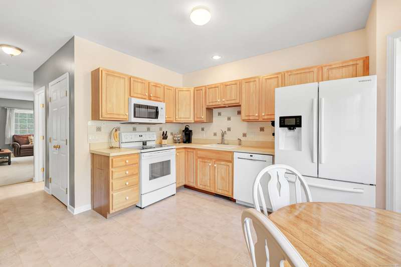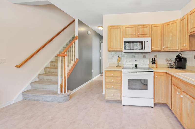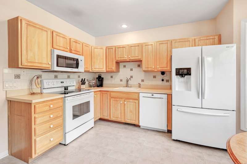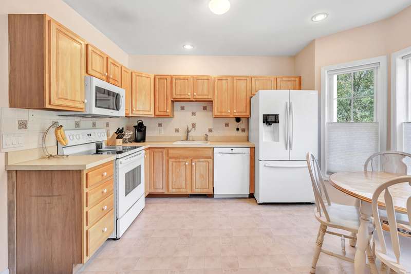 Welcome to 13 Oak Ridge Way! This beautifully maintained 2-bedroom, 1.5-bath end-unit townhouse offers the perfect combination of privacy, natural light, and convenience in the highly sought-after Great Oak Ridge community-well known for its low HOA fees of just $285/month with no planned special assessments and is FHA APPROVED! The lower level features a spacious attached garage with soaring ceilings, a utility room, and a bonus storage space complete with custom California Closets. On the main level, you'll find a bright and open living area with large windows, sliders to your own private patio, and a generous half bath. The kitchen includes ample cabinet space, a breakfast nook with bay-window, and plenty of room for casual dining. Upstairs, the primary bedroom boasts a walk-in closet, while the second bedroom offers versatility as a guest room, office, or den. A full bathroom, conveniently located laundry with stackable washer/dryer, and abundant natural light throughout complete t