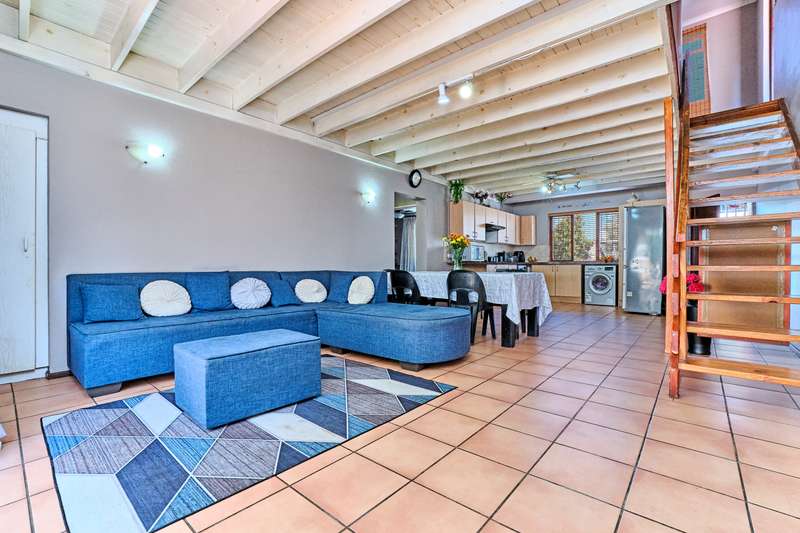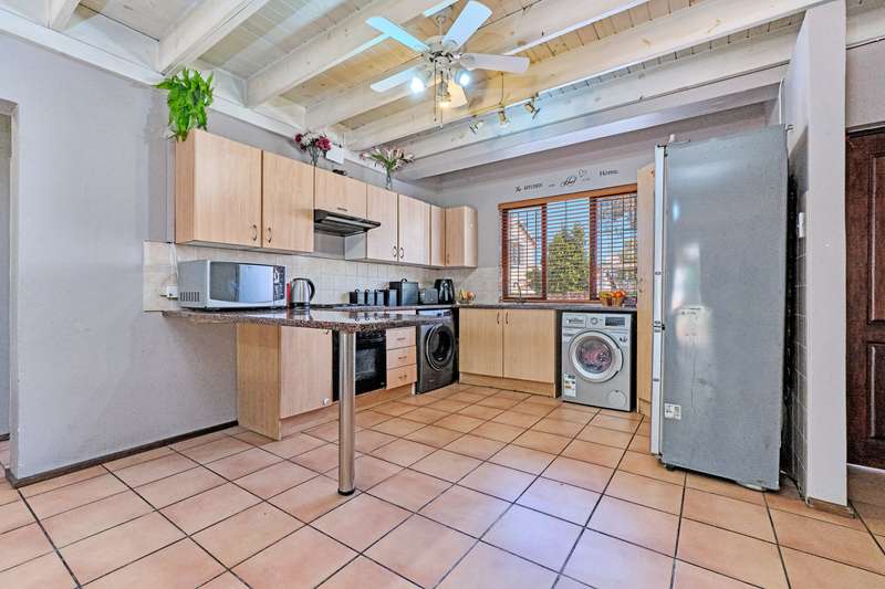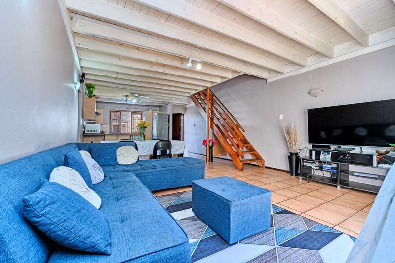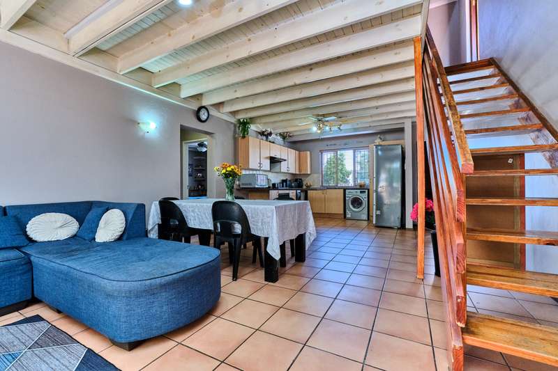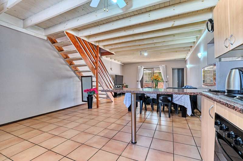 This is a well-maintained 4-bedroom, 2-bathroom duplex with several desirable features. It has an open-plan layout that connects the kitchen, dining, and lounge areas. There's also a dedicated pajama lounge for a more relaxed, private space. The property offers excellent outdoor living and entertainment options with a patio, a massive balcony, and a very large garden. Key Features and Amenities • Kitchen: The spacious kitchen has plenty of cupboard space and room for a double-door fridge and two additional appliances. It's equipped with a stove and an extractor fan. • Potential: The property has the potential to be converted into a 5-bedroom home while still keeping the pajama lounge. The large balcony is highlighted as a great space for entertaining. • Location: Situated in Midrand, the property is conveniently located close to major amenities and is just a 5-minute drive from the New Road onramp. • Security: The complex offers a safe and secure environment with 24-hour security, access control at the gate, and CCTV cameras. • Off-Grid Systems: This home is equipped with a few backup systems, including a solar inverter and battery for electricity backup, a Jojo water tank, and a solar geyser. The listing concludes by inviting interested parties to contact Bobby, the Midrand Property Specialist, to schedule a viewing.