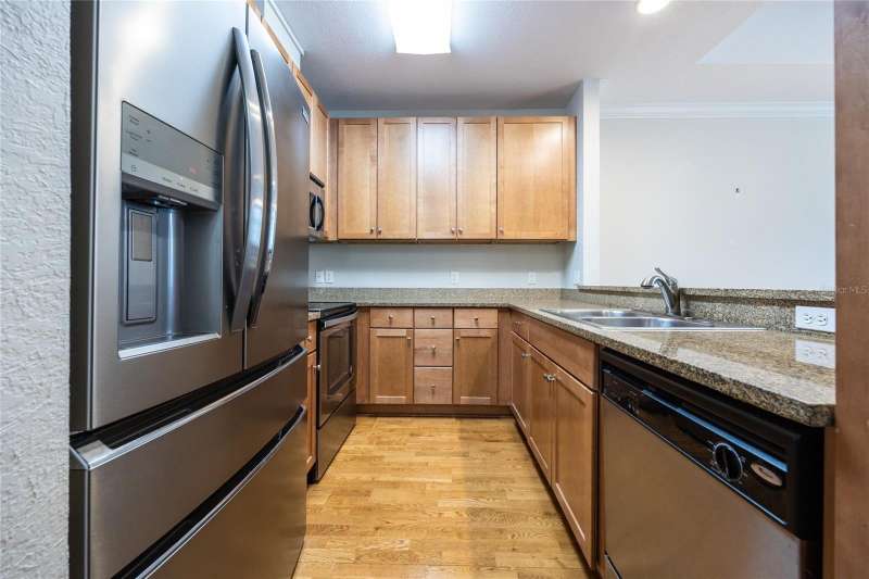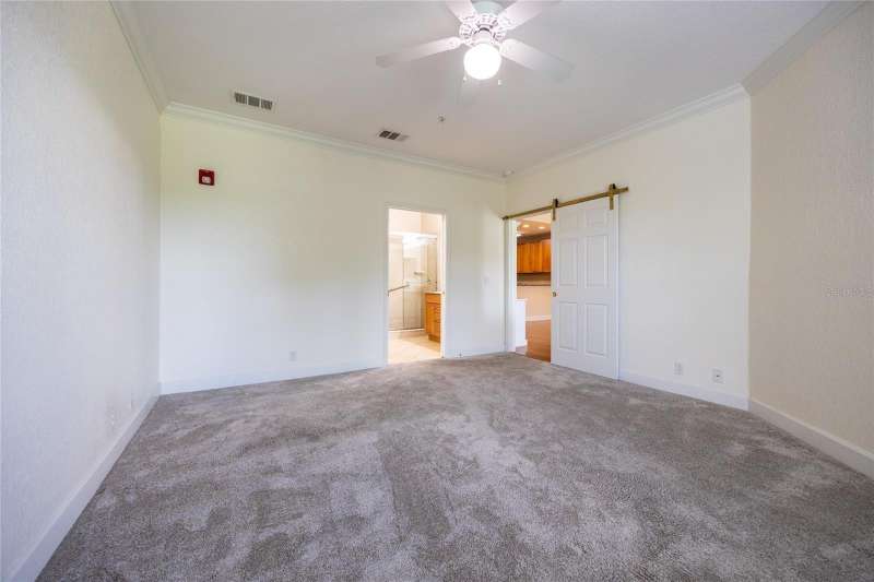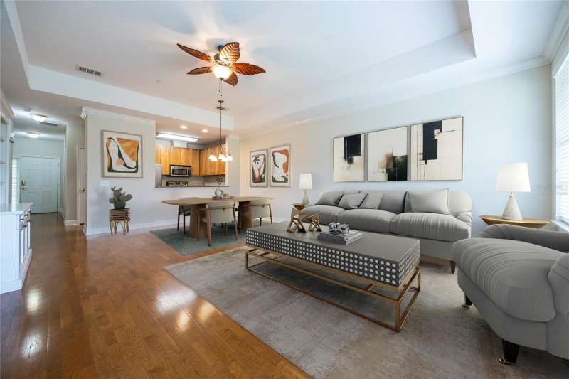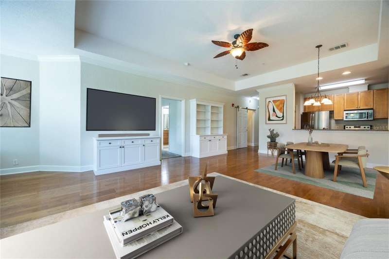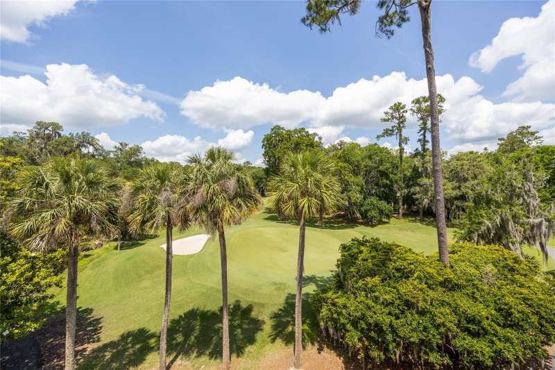 One or more photo(s) has been virtually staged. Stunning view from this luxury top floor condo overlooking the 12th green of the Hawkstone Golf Course. Covered balcony is perfect for relaxing with your morning coffee or a sip of wine at sunset. Kitchen w granite, newer refrigerator, breakfast bar, wood cabinets, pantry, wood floors in main living areas, combo living & dining rooms for spaciousness with built in cabinetry & window box seat, split bedroom plan with large owners suite with dual vanity, walk in shower & walk in closet, sliding barn doors, laundry room with newer Electrolux washer/dryer, HVAC 2019. One car garage with newer garage door opener with additional guest parking and building elevator. Enjoy maintenance free living and all the amenities this award winning community has to offer including an optional country club membership. The location is a short distance to the Haile Village Center with restaurants, shops, businesses & Saturday farmers market. Convenient to schools, health facilities and I-75.