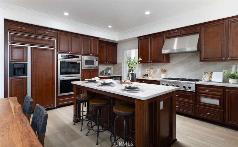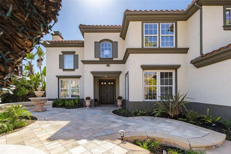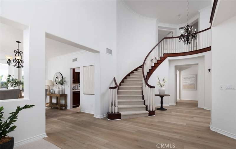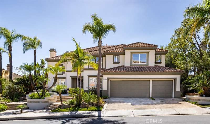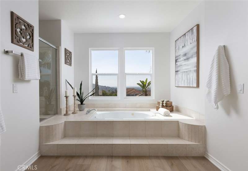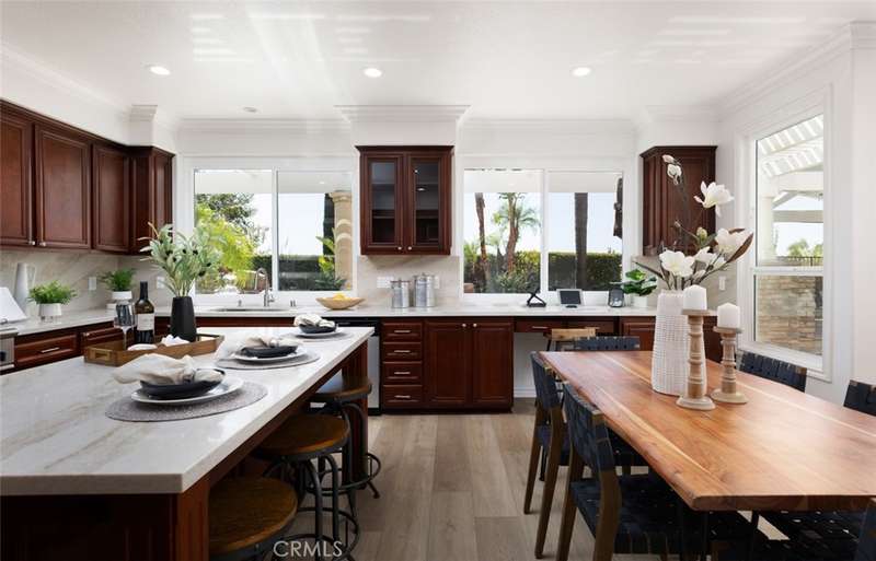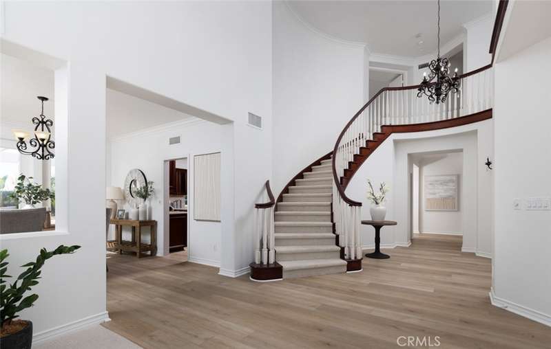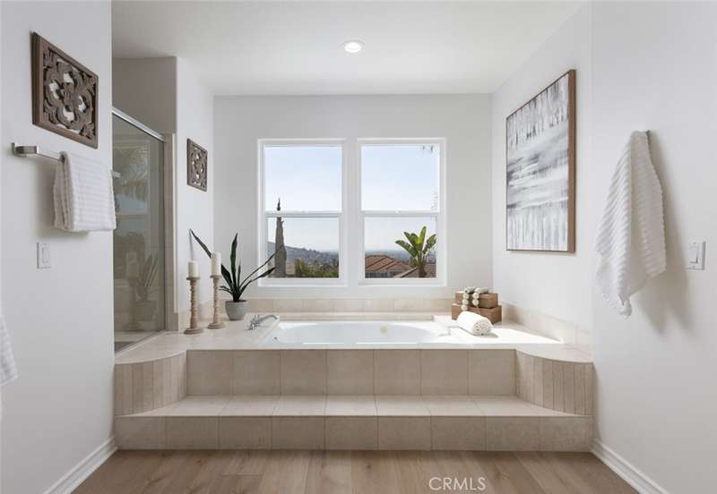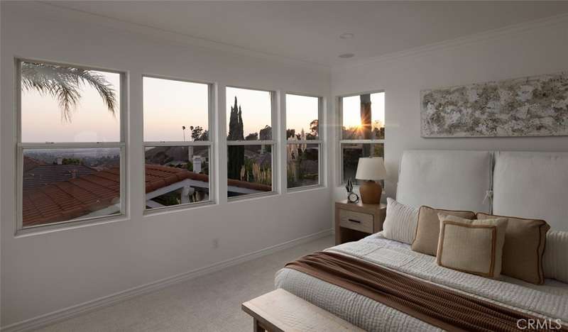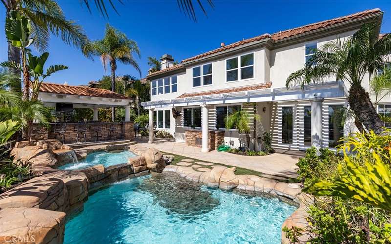 RENOVATED LUXURY HOME | PANORAMIC VIEWS | SPARKLING POOL & SPA | EN-SUITE BEDROOMS | GATED PARKRIDGE COMMUNITY | Welcome to 6336 E Cedarbrooks Avenue, a stunningly updated home located in the prestigious gated community of Parkridge in Orange. With five spacious bedrooms, five and a half bathrooms, and a separate office, this expansive two story property offers the perfect combination of elegance, comfort, and functionality, ideal for modern living and entertaining. Completely renovated with a designer's touch, the home features fresh interior and exterior paint, brand new luxury vinyl plank flooring, plush new carpet, custom countertops, and beautifully remodeled bathrooms. From the dramatic curved staircase to the soaring ceilings and abundant natural light, every space has been thoughtfully refreshed with timeless style and quality. At the heart of the home is the oversized chef's kitchen, complete with quartz countertops, rich wood cabinetry, a center island, and stainless steel appliances. It opens directly to a spacious family room with built-in speakers and walls of windows that showcase the lush backyard and hillside views. A formal living room with two story ceilings and a separate dining room provide even more space to gather. The flexible floor plan includes a downstairs en-suite bedroom, perfect for guests or multi generational living. Upstairs, each of the four additional bedrooms has its own private bathroom, offering privacy and convenience for every member of the household. The expansive primary suite features a wall of windows with panoramic views, a spa-inspired bathroom with dual vanities, soaking tub, walk-in shower, and two generous walk-in closets. Step outside to your private oasis, complete with a lagoon-style pool and spa, rock waterfalls, built-in BBQ bar, and multiple seating areas all surrounded by tropical landscaping and sunset views. Residents of Parkridge enjoy two private gates, a community pool and spa, sport court, BBQ areas, and access to nearby hiking and biking trails, shops, dining, and top rated schools. 6336 E Cedarbrooks Avenue is move-in ready and offers resort style living in one of Orange's most coveted neighborhoods.