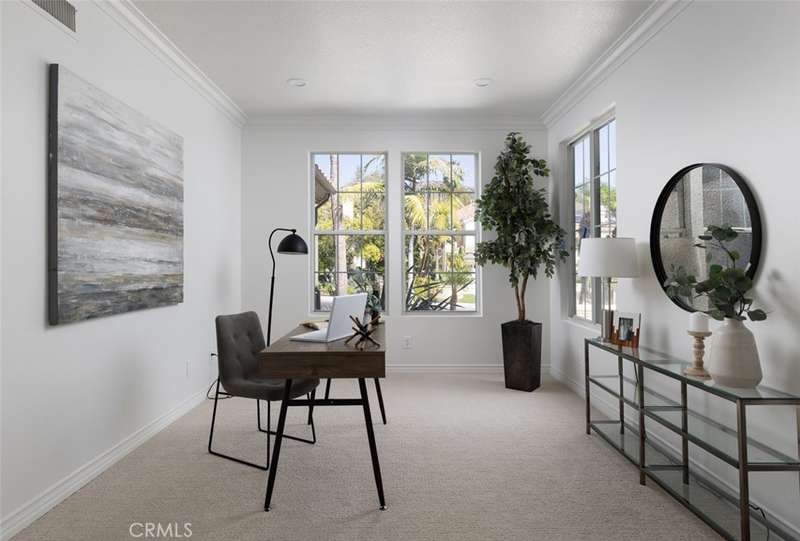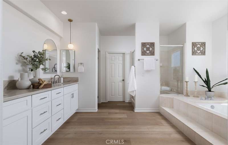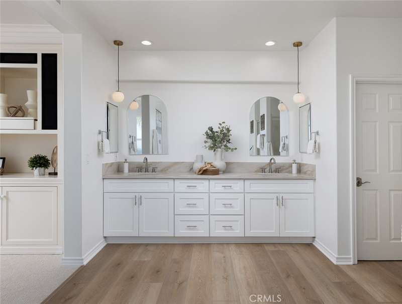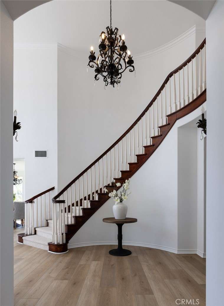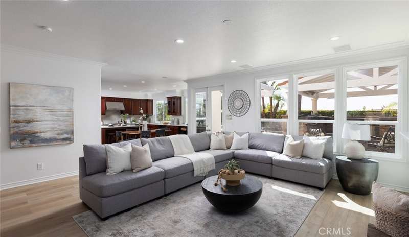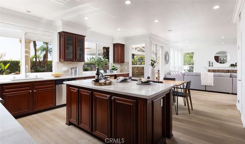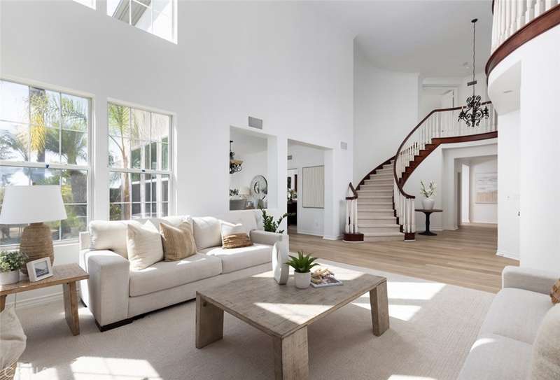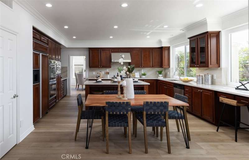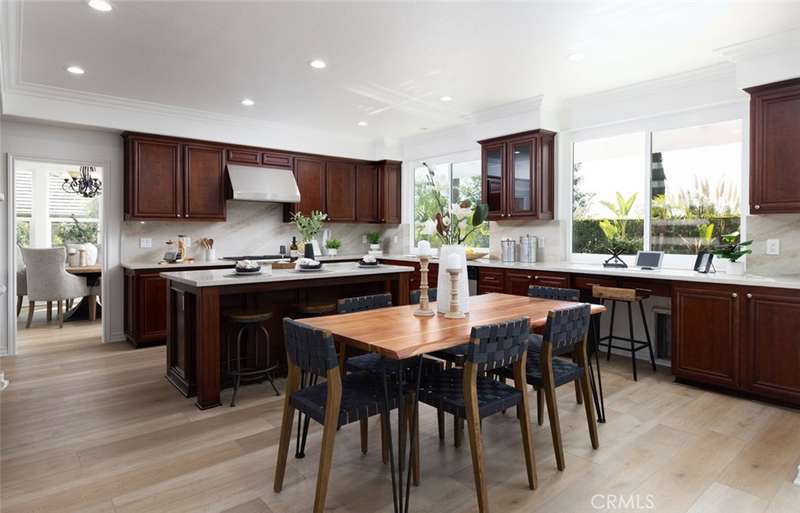RENOVATED LUXURY HOME | PANORAMIC VIEWS | SPARKLING POOL & SPA | EN-SUITE BEDROOMS | GATED PARKRIDGE COMMUNITY | Welcome to 6336 E Cedarbrooks Avenue, a stunningly updated home located in the prestigious gated community of Parkridge in Orange. With five spacious bedrooms, five and a half bathrooms, and a separate office, this expansive two story property offers the perfect combination of elegance, comfort, and functionality, ideal for modern living and entertaining. Completely renovated with a designer's touch, the home features fresh interior and exterior paint, brand new luxury vinyl plank flooring, plush new carpet, custom countertops, and beautifully remodeled bathrooms. From the dramatic curved staircase to the soaring ceilings and abundant natural light, every space has been thoughtfully refreshed with timeless style and quality. At the heart of the home is the oversized chef's kitchen, complete with quartz countertops, rich wood cabinetry, a center island, and stainless steel appliances. It opens directly to a spacious family room with built-in speakers and walls of windows that showcase the lush backyard and hillside views. A formal living room with two story ceilings and a separate dining room provide even more space to gather. The flexible floor plan includes a downstairs en-suite bedroom, perfect for guests or multi generational living. Upstairs, each of the four additional bedrooms has its own private bathroom, offering privacy and convenience for every member of the household. The expansive primary suite features a wall of windows with panoramic views, a spa-inspired bathroom with dual vanities, soaking tub, walk-in shower, and two generous walk-in closets. Step outside to your private oasis, complete with a lagoon-style pool and spa, rock waterfalls, built-in BBQ bar, and multiple seating areas all surrounded by tropical landscaping and sunset views. Residents of Parkridge enjoy two private gates, a community pool and spa, sport court, BBQ areas, and access to nearby hiking and biking trails, shops, dining, and top rated schools. 6336 E Cedarbrooks Avenue is move-in ready and offers resort style living in one of Orange's most coveted neighborhoods.