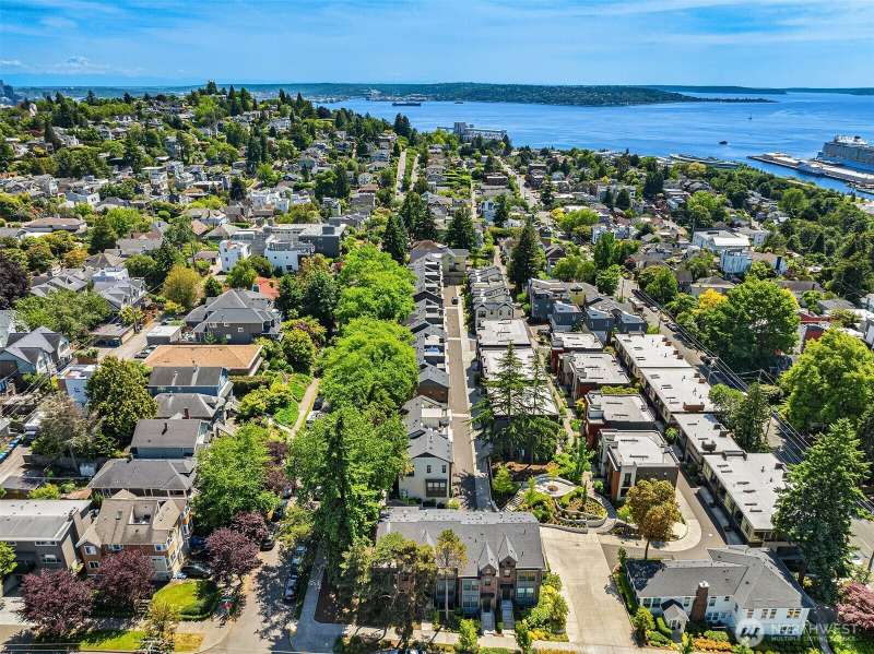 Classic brick grandeur in coveted McGraw Square—a boutique Queen Anne townhome community. This corner lot, smart home has sun-drenched open living spaces w/ hardwood floors & designer finishes frame a chef’s kitchen w/ granite countertops, Thermador gas range, SubZero fridge & custom pantry—an elevated culinary experience. Spacious Living Room w/ FP & lots of natural light. Upper level offers a well-appointed primary ensuite w/ views of the Sound & bright 2nd BR ensuite. Lower level includes a 3rd BR ensuite, storage & attached 1-car garage. Mini-splits provide year-round comfort. HOA covers all exterior maintenance. Live where comfort meets style—close to QA Ave, Farmer's Market, parks, shops & more. Refined living in the heart of it all.