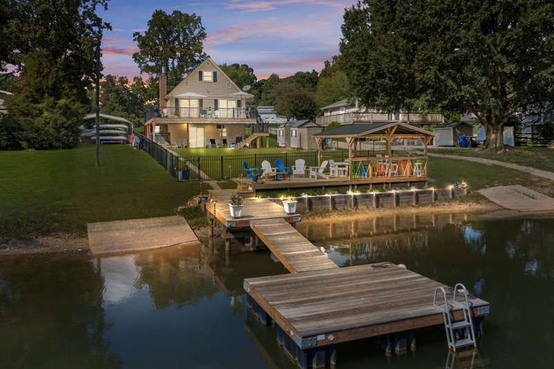 Escape to this charming waterfront home tucked away in a quiet cove, perfect for relaxing weekends or year-round living. Enjoy 52 feet of shoreline, complete with a brand-new floating dock, retaining wall, and a huge gazebo with a built-in epoxy covered bar and tambour door cabinets?ideal for entertaining while watching TV, listening to music or simply taking in the view.Inside, the home offers 3 bedrooms, a small bonus room with closet, a cozy family room, and a newly built walk-out deck with water views. The walk-out basement extends your living space with a covered porch, beautifully landscaped flat backyard, and a fully fenced lawn to secure your furry family members. Downstairs also features a second kitchen, den, and versatile flex space currently used as an office & man cave ?perfect for guests or extended stays.With a brand-new cooling system just installed (Sept 2025), this property is move-in ready and designed for comfort and fun. Whether you're looking for a VRBO investment, vacation getaway, or second home, this waterfront gem is a rare opportunity to enjoy lakeside living at its best.