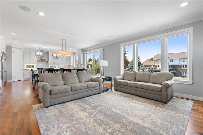 Exceptional walkout 2 story home located in popular Somerby Golf Community in a great cul-de-sac offering 5 bedrooms, 4 baths, finished and heated 3-car garage, a front office, incredible space to entertain and 2nd level for privacy. The main offers impressive open floor plan to kitchen, living and dining sharing beautiful hardwood floors. The stunning kitchen has custom white cabinets to the ceiling with crown molding, a large island with prep sink, corner walk-in pantry, transom windows below some of the cabinets to bring in more natural light, stainless steel appliances including a little extra with commercial size refrigerator, and wine refrigerator. The dining area is spacious that allows plenty of space to entertain with just steps away to the large maintenance free deck and steps down to a fire pit. The living room is cozy offering custom built-ins and gas fireplace with stone surround. The 2nd level is private for the bedrooms that includes the grand primary suite showing French entry doors, crown molding, spa-like primary bath with heated floors, tiled walk-in shower, separate soaking tub, and walk-in closet with custom closet system. There are 3 other spacious bedrooms, a full bath to accommodate, laundry room with sink, cabinets and counter space. The lower level is great for entertaining that provides a full wet bar with walk-in wine cellar, gas fireplace with plenty of space for media and games. The large sliding glass doors takes you out to the expansive paver back patio with fire pit to enjoy almost the seasons MN as to offer. There is a 5th bedroom that is currently being used and gym and offers a walk-in closet, a full bathroom and plenty of storage space in the mechanical room with an additional storage room. There is professional landscaping that surrounds this beautiful home that includes an irrigation system. So many great amenities to enjoy in this home. The HOA includes Somerby Social Membership, garbage pick-up to make the life in Somerby more care free and indulge on all the fun that Somerby has to offer!