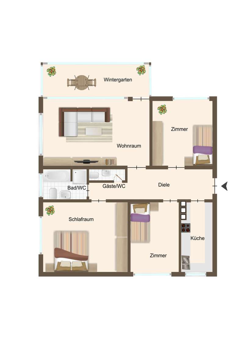 In a quiet yet conveniently located residential area of Bad Godesberg, this charming 4-room apartment on the 1st floor of a well-kept apartment building from 1963 awaits you. With a living area of approx. 120 m², the apartment offers plenty of space for individual design and comfort. It is located in a building with a total of seven residential units and impresses with its well thought-out room layout and modern details. The apartment comprises a spacious living room, two children's bedrooms and a master bedroom with a practical built-in wardrobe. A heated conservatory extends the living area and creates an additional highlight that can be used in both summer and winter. The kitchen, hallway, daylight bathroom and a separate guest WC complete the space on offer. The bathroom is equipped with a bathtub and a shower cubicle, offering maximum comfort for all residents. The apartment has been rented out reliably since 2016, which underlines the stability and sustainability of the property. Other plus points include the lockable garage, which is permanently assigned to the residential unit. This not only offers a secure parking space for your vehicle, but also additional storage space. The communal garden offers residents a green oasis and invites them to relax or play outside. The apartment is in a well-kept condition, which is not only due to the regular maintenance, but also to the modernizations that have been carried out. In 2016, the old lead pipes were replaced, the entire hallway was tiled to a high standard and the apartment entrance door was replaced. In 2022, the old oil heating system was replaced with a modern gas central heating system, resulting in improved energy efficiency. In addition, interior insulation measures were carried out in 2023 to close the cold bridges, and insulation of the radiator niches is also planned for this year. The apartment is equipped with double-glazed windows and roller shutters, which ensure good sound insulation and high energy efficiency. High-quality parquet flooring has been laid in the living rooms and bedrooms, while tiles adorn the hallway, sanitary facilities and conservatory. A dry cellar room with electricity connection offers additional storage space. A washing machine connection is located in the kitchen, and a laundry room is also available to the community. This well-designed apartment in a well-kept apartment building offers a pleasant living experience and a reliable rental history. See the benefits of this property for yourself and arrange a viewing today! **An energy certificate is being processed and will be available upon viewing.