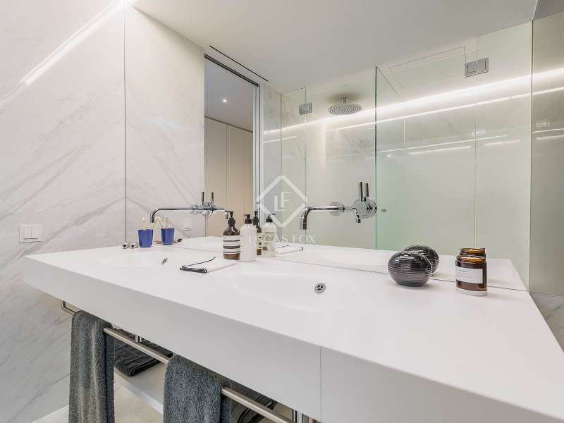 Lucas Fox presents this magnificent new development of high standing designed by the award-winning architect Odile Decq, located in Diagonal Mar, one of the most exclusive areas of Barcelona. Diagonal Mar is a highly coveted area, next to the @22 district, with a great cultural and technological offer, with all kinds of services within reach, excellent communications with the rest of the city and close to the beach. It is a unique residential tower in all of Barcelona, with a unique design and an unparalleled range of services. The promotion offers its residents magnificent common areas, as well as 24-hour security and a concierge service. Among the community areas, there is a sports area with a gym, spa and swimming pool with more than 1000 m², an extensive garden, a multipurpose room with a golf simulator and a paddle tennis court. In the commercial premises on the ground floor, you will have access to the Gran Café Rouge restaurant, with the famous chef Romain Fornell at the helm, while on the 27th floor, you will find a magnificent roof terrace with an infinity pool and solarium area, with the best views of all of Barcelona. This 230 m² house has a modern style in neutral tones and a diaphanous design, with open spaces and windows and floor-to-ceiling windows with access to the terrace, which allows the entry of abundant natural light, to achieve a bright and cozy. In addition, all the main rooms have access to the terraces, except for the guest bedroom. The flat presents clearly differentiated areas for day and night. Upon entering on the right, we find the large day area, with an open-plan living-dining room with an open-plan kitchen. From the living room, there is access to a bedroom with its private bathroom. To the left of the hall, we find a guest bedroom, a guest bathroom and the master bedroom with a private bathroom, dressing room and access to a private terrace. Among its qualities, we can highlight the bamboo wood parquet floors, fitted wardrobes, white lacquered doors. Likewise, a home automation system, LED lights and hot/cold air conditioning have been installed. The kitchen is equipped with a central island and integrated Miele brand appliances. The bathrooms have taps from the Dornbracht brand and finishes from the X-Light range by Porcelanosa. Get in touch for more information.