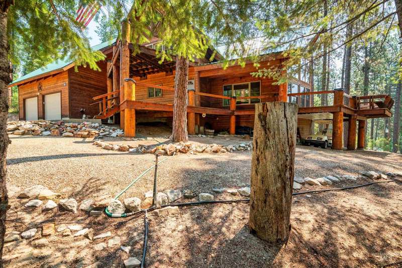 Located in the desirable Terrace Lakes subdivision, this mountain retreat offers year-round recreation with access to a golf course, pickleball, clubhouse, and a thermal pool. Just 90 minutes from Boise, the property is surrounded by outdoor adventure—ride ATVs in summer, snowmobile in winter, ski nearby resorts, hike endless trails, or enjoy the river and Garden Valley for canoeing, kayaking, and world-class fly fishing. The home’s unique design spans three levels, perfect for an active lifestyle. The main floor features a spacious master suite, open kitchen, and great room with vaulted ceilings. Upstairs and third level provide flexible sleeping and gathering areas, including two open lofts and a bonus room. Expansive decks on the second and third floors wrap around the home, ideal for entertaining or simply soaking up the forest and mountain views. While the home could benefit from updating, it offers excellent bones, great space, and rare opportunities in this sought-after community. A perfect fit for adventurous buyers seeking a getaway or year-round residence where recreation, privacy, and natural beauty meet.