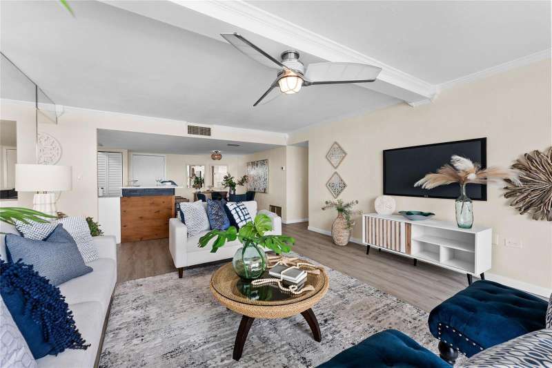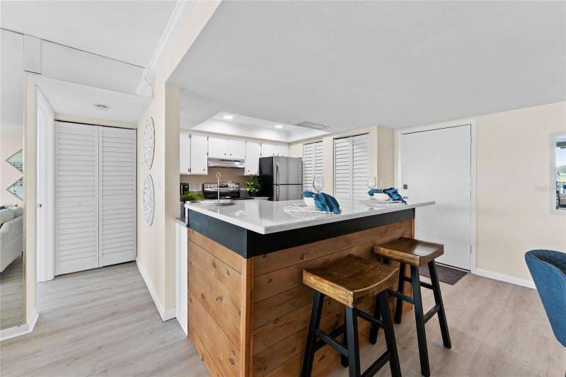 Owner is giving a Reduction for the First month's rent as well as a Reduction for the Security Deposit as a bonus for renting.Waterfront Rental Opportunity- Live where others Vacation! Wake up everyday to serene water views in this stunning waterfront Rental! this beautifully maintained property offers the perfect blend of comfort, convenience, and natural beauty. Whether you are sipping your morning coffee on the patio or enjoying sunset strolls along the shoreline, this condo offers a lifestyle that's hard to match! Featuring 1308 sq ft and split floor plan, this 2 bedroom, 2 bathroom has plenty of natural light, the interior is as inviting as the views outside. This condo comes equipped lots of storage space, separate bar seating and a formal dining area. Vinyl planking is through out, retractable upgraded sliding doors as well up upgrades for the windows, generous custom closets and warm hues for the walls make this condo irresistible for renting! Located in Treasure Island, you are close to shopping, restaurants and white sandy beaches while being tucked away in a peaceful setting right on the water! Water, Sewer, Trash, Internet, Cable are included in the rental. Sorry no pets allowed in this building. Credit checks are a must as well as first, last and a security deposit. Don't miss your chance to lease this rare gem. Waterfront living awaits!