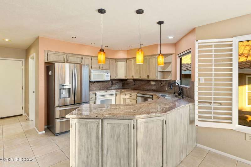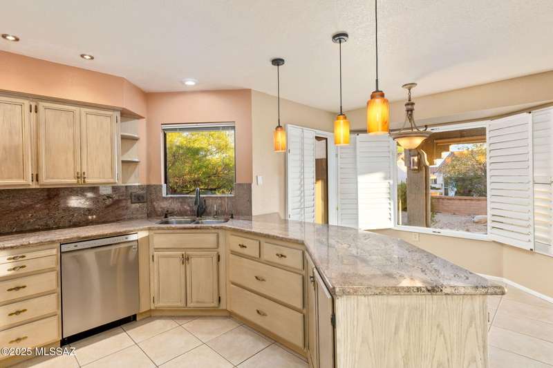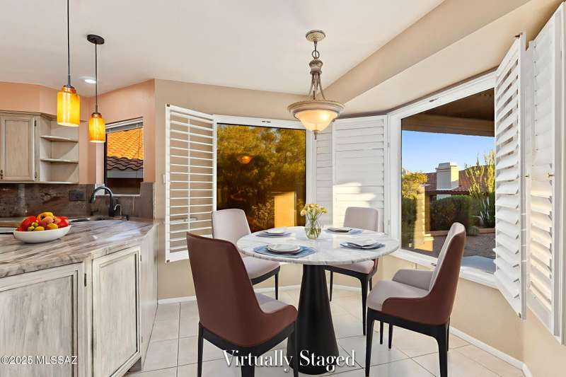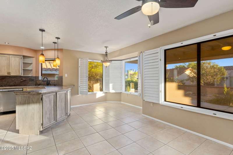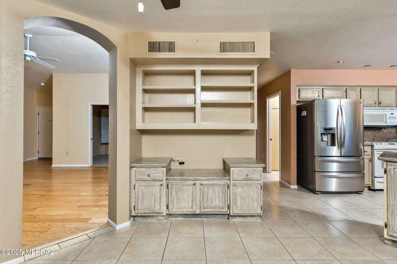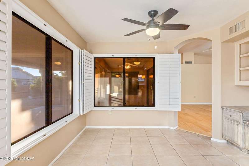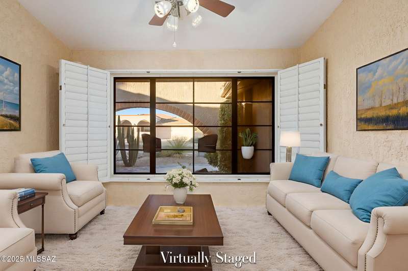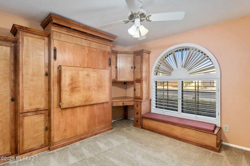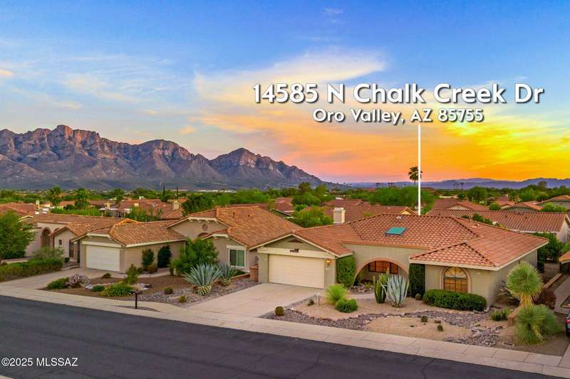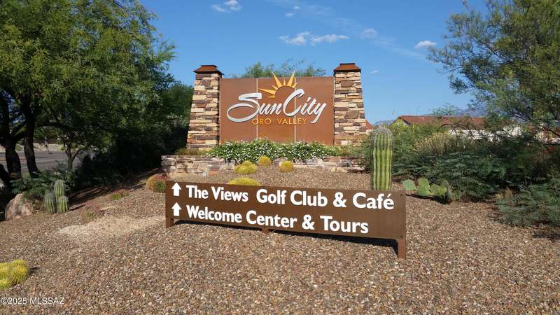 Sun City Oro Valley Expanded Silvercreek Model. Bright & Beautiful 2BR / 2 Bath + Den or Office 1,683 sq ft home with XL Living Room / Dining Room & slider to wonderful Arizona Room. Gorgeous Kitchen w/ Dining Area open to Family Room. Lovely Master Suite w/ En-Suite Walk-in Shower & Walk-in Closet. BR 2 boasts Beautiful Built-In's with Murphy Bed and Desk. Wonderful Front Den / Office Expansion looking out to Front Porch. Also, Laundry Room w/ storage and a 2 Car Garage. The Back Yard Oasis features XL Covered Patio & Catalina Mountain Views to the side. A Fantastic Home! Sun City is a 45+ Active Adult Community featuring 18 Hole Golf Course, Fitness Center, Pickleball, Tennis, 2 Pools, Restaurant/Bar plus many Activities and Clubs to Join. Come & Enjoy the Sun City Oro Valley lifestyle!