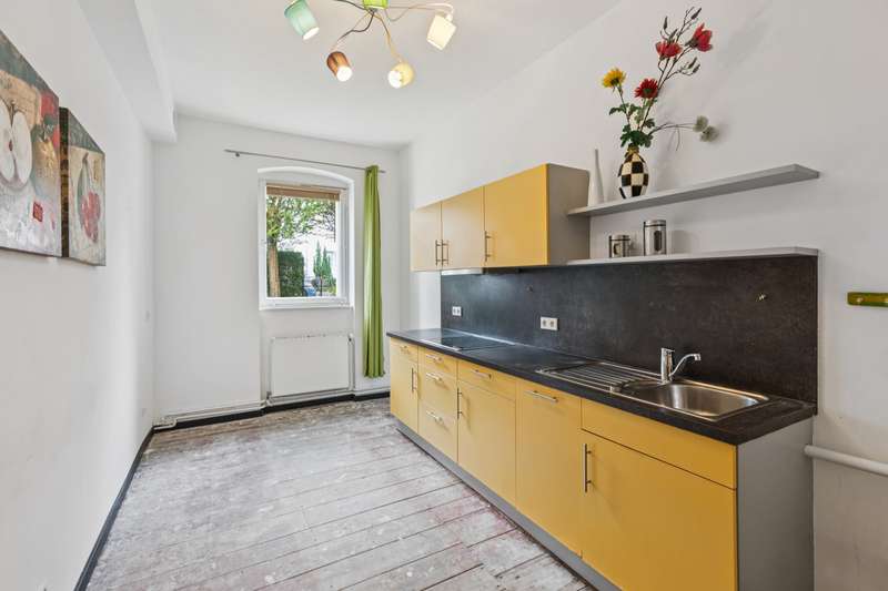 A charming and bright basement apartment is for sale in a historic old building dating back to 1905. The apartment has a living space of 52.52 m² and offers space in two generously proportioned rooms. The room layout is functional and, in addition to the two rooms, includes a fitted kitchen and a bathroom. The owner previously had permission from the district authority to use the property as a vacation apartment. The property is in need of renovation in parts and therefore offers an excellent opportunity for creative minds who would like to make their own contribution in order to design the living space according to their personal ideas. However, the most recent modernizations provide a solid basis: the façade was renovated in 2005, the electrics were modernized in 2015, the exterior walls of the entire apartment were fitted with interior insulation and a modern apartment ventilation system with highly efficient energy recovery was installed. This means you can sleep well even with the windows closed. The boiler was also replaced in 2022, meaning that the apartment has modern gas heating that guarantees a pleasant heat distribution. The roof of the building was partially renewed in 2017. The flooring in the apartment consists of laminate, which creates a harmonious transition between the rooms. The fitted kitchen offers sufficient storage space and is functionally equipped, making everyday use easier. Despite its location in the basement, the apartment is pleasantly brightly lit by large windows. The garden in front can be used individually. This apartment is located in a mature neighborhood that has retained the character of past decades. The location impresses with its proximity to shopping facilities, public transport and various leisure activities, which further enhances living comfort. The infrastructural connections make the apartment ideal for commuters or interested parties who appreciate a central location. The property offers a lockable storage facility within the building, providing residents with additional storage space. Potential buyers who have a preference for the charm of an old building and are also willing to invest in modernization measures will enjoy this property. The attractively priced apartment makes it possible to carry out renovations according to one's own ideas and realize one's individual dream home. If this property has aroused your interest, please do not hesitate to arrange a viewing appointment to see for yourself what this apartment has to offer. Please do not hesitate to contact us for further information or to arrange an appointment.