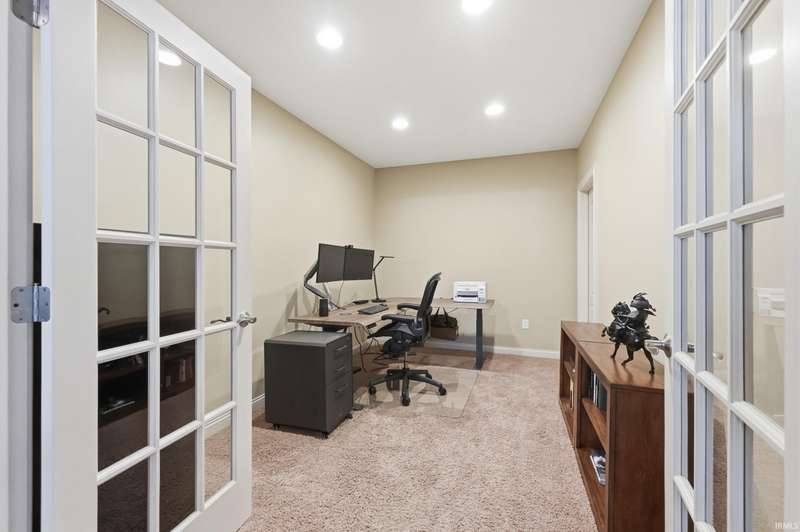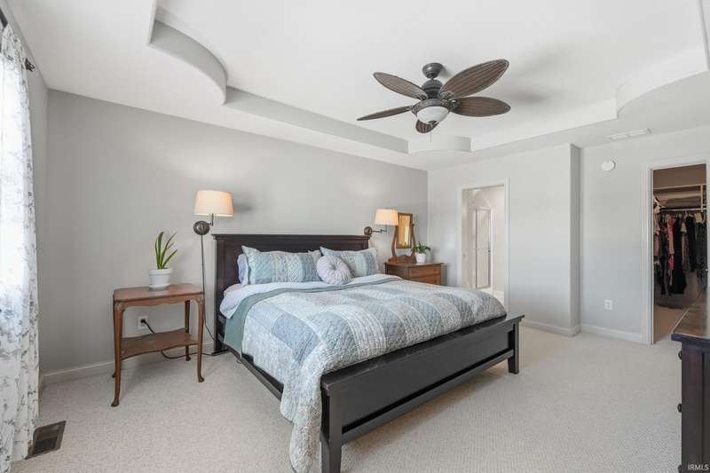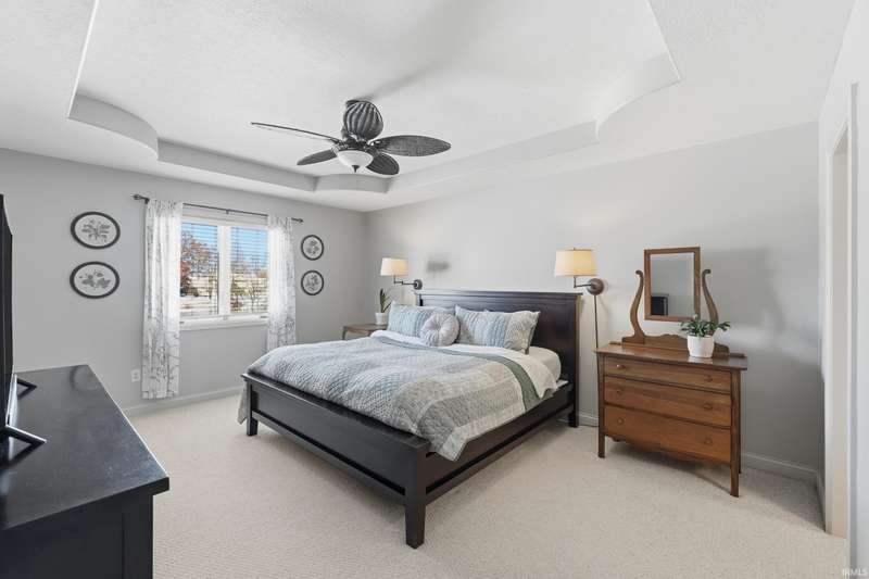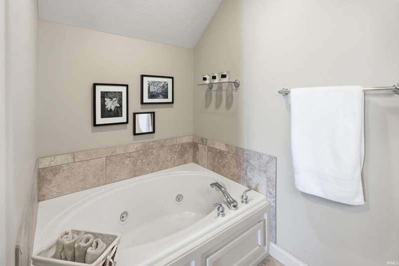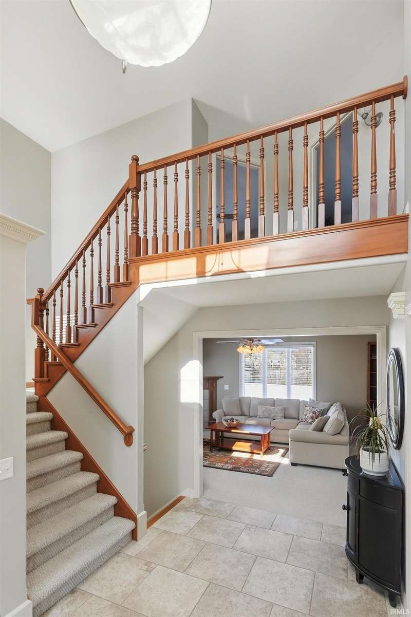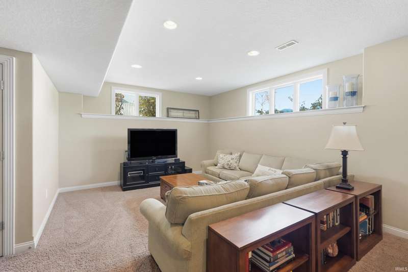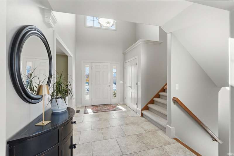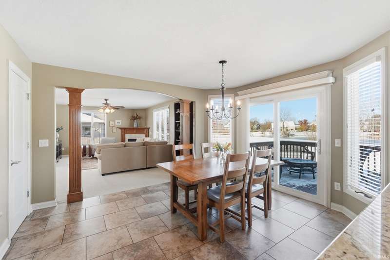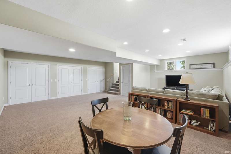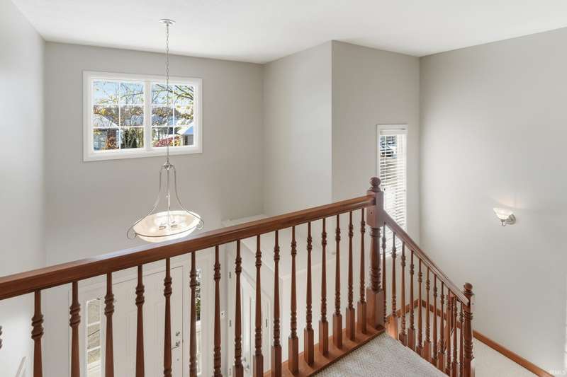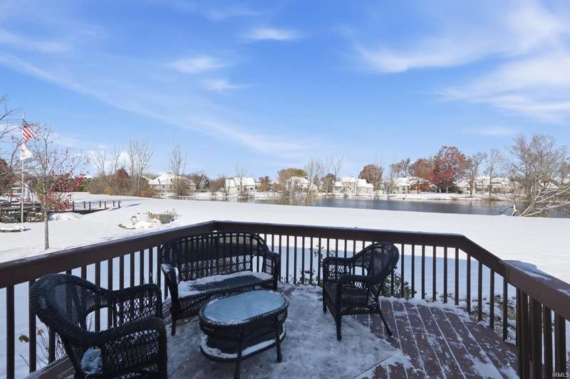 Located on a quiet cul-de-sac with scenic pond views, this stunning two-story home features a finished basement and offers the perfect blend of comfort, convenience, and location. Enjoy easy access to top-rated schools, PRMC, Dupont Hospital, I-69/Union Chapel Road, as well as nearby shopping, dining, and entertainment. Well-maintained, enjoy over 3,100 finished square feet of living space, 4 bedrooms, 2.5 bathrooms, a finished daylight basement with dedicated home office, and a 830 SF 3-car garage (3rd bay is 27' deep). The kitchen has granite countertops, corner farm sink, a breakfast bar, trash drawer, pantry, and nearby 1/2 bath. The 12'x5.5' laundry room is set up so nice with a closet, utility sink, and cabinets. The cozy living room has a corner gas log fireplace and entry enhanced by columns. The upper level features a 17x13 master bedroom with 2 walk-in closets, an en suite full bathroom, and 3 other bedrooms. All bedrooms have ceiling fans and blinds on the windows. The finished basement provides a 26x23 recreation space, 3 large storage closets, and a 14x9 Home office with glass french doors. The Bryant Furnace with humidifier was new in 2020, gas water heater with expansion tank & water softener new 9/2021, Roof is 3 years old. The outside living area includes a deck and a stamped concrete patio - 176 SF of space overlooking the pond. The interior has been freshly painted and Pride of ownership shows! This home combines modern living with a peaceful setting—ideal for families and anyone seeking both privacy and proximity to everything North Fort Wayne has to offer.