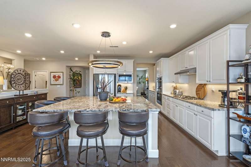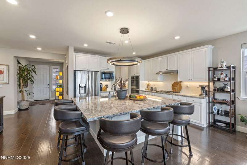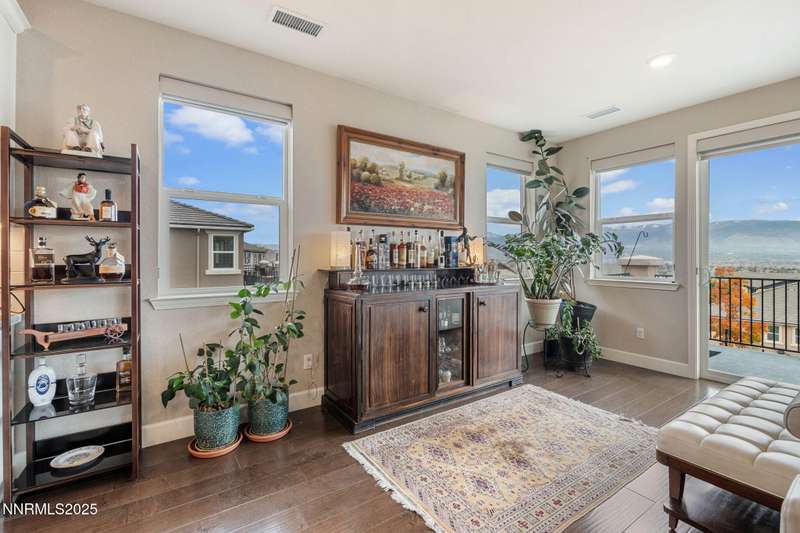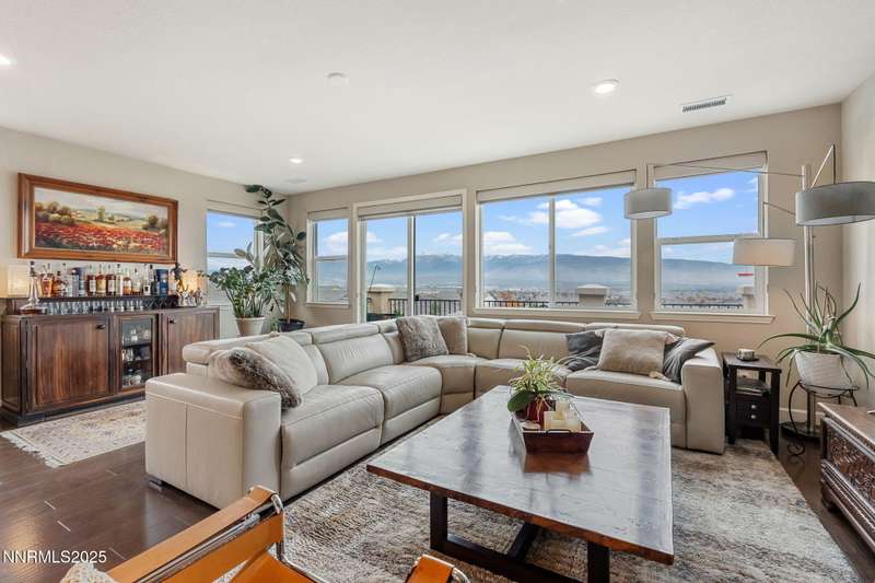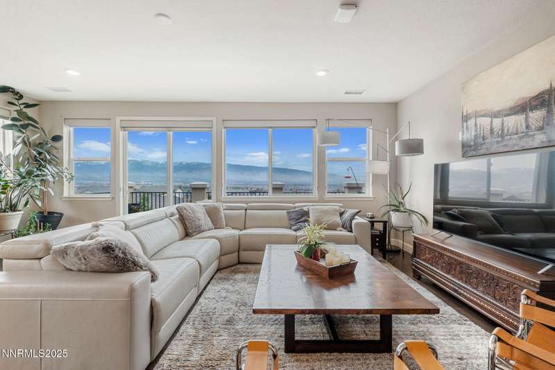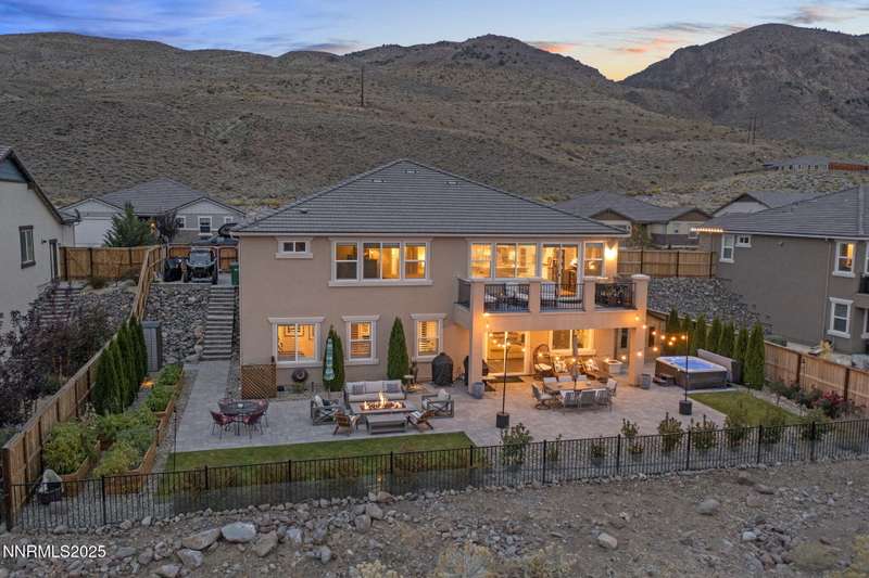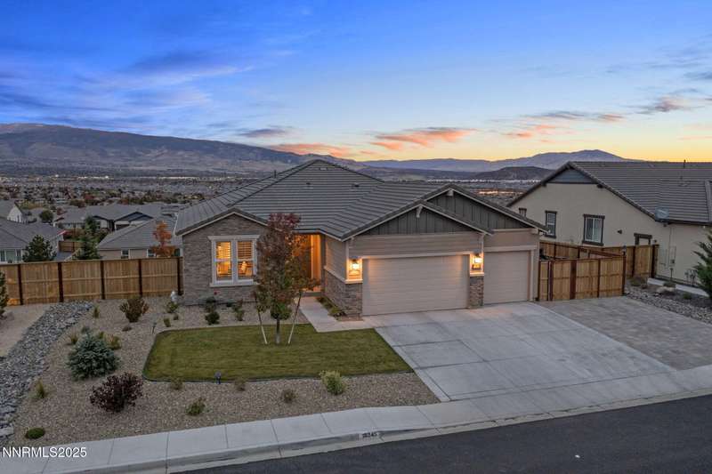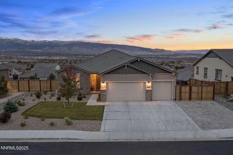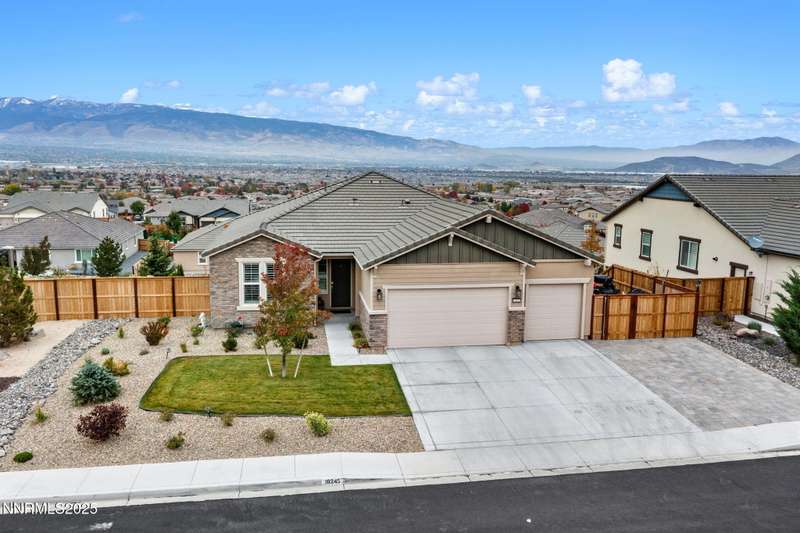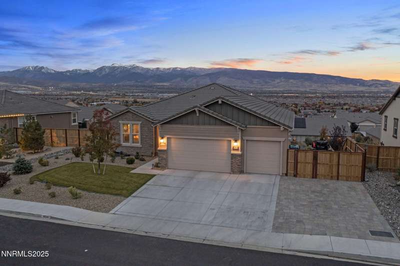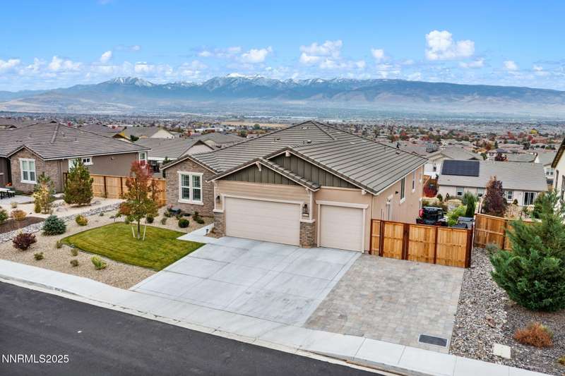 Exceptional Custom Home with Over 200K in Upgrades! Unmatched panoramic views of Mt. Rose and Downtown Reno! Energy-efficient features include a tankless water heater, dual-pane low-E windows, a Honeywell Smart Thermostat, Ring Doorbell, and a 14 SEER HVAC system—providing year-round comfort and savings. Additional upgrades include custom gutters, a whole-home upgraded Wi-Fi system, and integrated smart-home technology for seamless modern living. Enjoy two outdoor living spaces, including an elevated deck, perfectly positioned to capture the stunning views—ideal for entertaining or unwinding. The finished garage features epoxy flooring, built-in shelving, and abundant storage—both stylish and functional. Professionally designed landscaping by Fire Sky Design and NVision Landscaping creates a tranquil outdoor retreat, complete with four 8x2 raised garden beds and one 3x4 raised garden bed. Unwind in the HotSpring spa or the fully finished outdoor sauna for year-round relaxation. A highlight of this home is the multigenerational living area, complete with a private kitchenette, upgraded cabinetry, granite counters, stainless steel appliances, and a full bathroom—ideal for guests, extended family, or independent living. Inside, designer flooring flows throughout, including hardwood, tile, and plush carpet, complemented by elegant Alaska White granite countertops. The gourmet kitchen features GE Profile stainless steel appliances, 42-inch custom cabinetry, granite slab counters, and a striking tile backsplash. The primary suite is designed for rest and renewal, offering dual vanities, a soaking tub, and an oversized walk-in closet. Custom designer lighting and LED chandeliers enhance every space with warmth and elegance, while D-LUX Window Coverings and plantation shutters complete the sophisticated design. RV access/storage measuring 12x22 adds exceptional convenience to this stunning home.