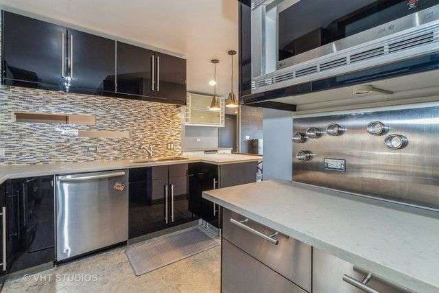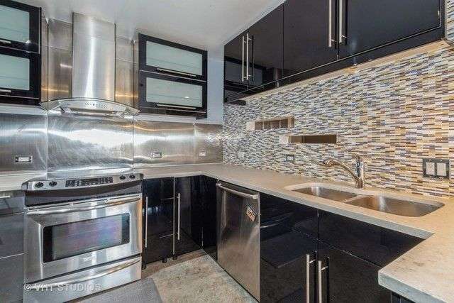 Modern loft-inspired living meets suburban convenience in this sleek Glen Ellyn 2BR/2BA penthouse retreat at Greenbriar Place, featuring polished concrete floors, open floor plan, recessed lighting, built-in bar and speakers, and an imported sliding glass pocket wall that creates either a private 2nd bedroom with full bath or an oversized great room. The chef's kitchen boasts stainless steel appliances, quartz countertops, glass backsplash, and built-in desk, while the luxurious primary suite offers two walk-in closets and a spa bath with Euro soaking tub, separate shower, vanity area, and Italian fixtures. Enjoy in-unit laundry, heated garage space plus unlimited guest parking, and resort-style amenities including a pool, vaulted lobby, elevators, and secure common areas-all just steps from College of DuPage and minutes to shopping, dining, Metra, and I-355/88/290.