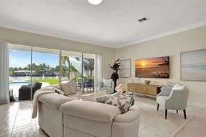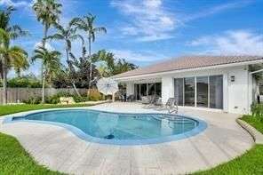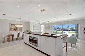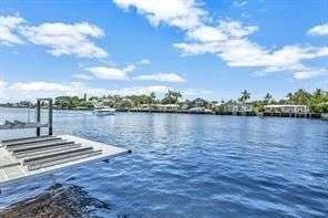 FOR SALE AND FOR RENT. PRIME LOCATION. LUXURY TURNKEY. Floridas sunshine living at its very best! Stunning water views from inside. GATED. Charming, fully renovated and furnished directly on the Intracoastal. The dock has over 100ft of water frontage, with a lift to 4 jet skis. Open concept and airy coastal home w/a high ceiling and high sliding doors. The master suite, living, and kitchen overlooks the intracoastal. 2nd bed has lovely step out sitting area. Top tier appliances: Subzero fridge wine cooler, Gaggenau cooking station. Come to relax in a well-manicured waterfront backyard with a saltwater swimming pool w/lounge chairs to enjoy beautiful sunsets, passing boats, and tranquility of the waters. House is 5-min walk to 5 starts restaurants, to the beach & Pompano Beach Pier.