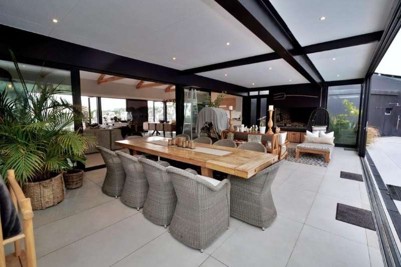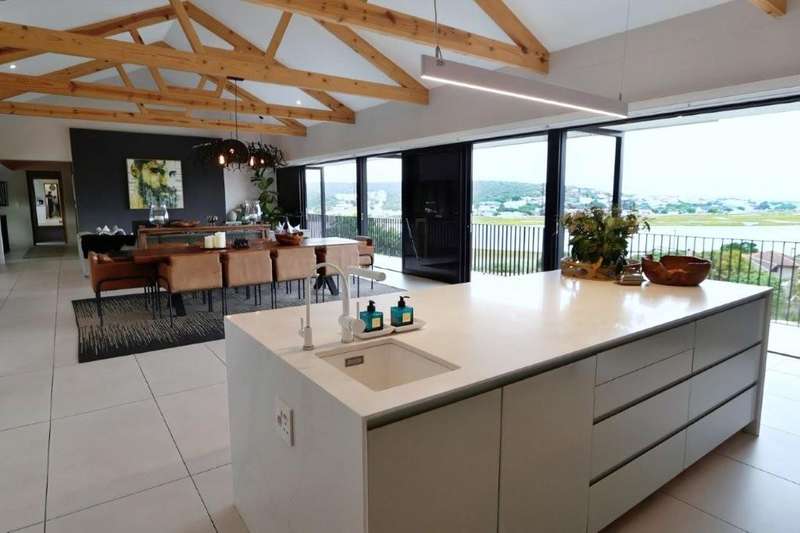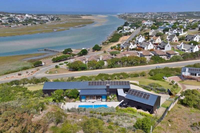 Architectural Masterpiece with Breathtaking River and Ocean Views ?Çô Stilbaai West. Gracefully positioned above the tranquil Goukou River mouth, where river meets sea, this exceptional residence redefines coastal living. A true architectural triumph, it embodies the perfect harmony of design, craftsmanship, and location. Every detail has been thoughtfully curated to celebrate the sweeping views of the river estuary, ocean, and untouched natural landscape. From sunrise to sunset, the ever-changing panorama becomes a living artwork visible from almost every room. Step inside and experience light, space, and contemporary elegance. The open-plan living area, framed by striking exposed timber trusses, flows seamlessly into a designer kitchen with integrated appliances, stone countertops, and a central island ?Çö the heart of the home. Expansive glass doors open completely to the front patio, blending indoor and outdoor living into one breathtaking experience. To the rear, a sophisticated entertainment area connects effortlessly to the sheltered pool terrace, creating the ideal space for summer afternoons, al fresco dining, and evenings under the stars. Upstairs, the luxurious main suite offers a private retreat with panoramic river and ocean views, complemented by an adjoining study or home office. The lower level features three beautifully appointed en-suite bedrooms and a state-of-the-art cinema room ?Çö all designed for comfort and privacy. Set on a meticulously landscaped 3 940 m?? erf, the garden enhances both the home?ÇÖs architecture and its natural surroundings. Every element of this property exudes sophistication, serenity, and the essence of refined coastal luxury. This is more than a home ?Çö it?ÇÖs a lifestyle defined by beauty, peace, and connection to nature. A once-in-a-lifetime opportunity to own one of Stilbaai?ÇÖs most iconic residences. Contact us today to arrange a private viewing of this architectural masterpiece.