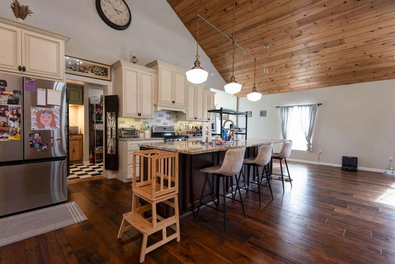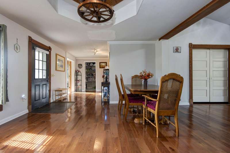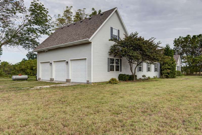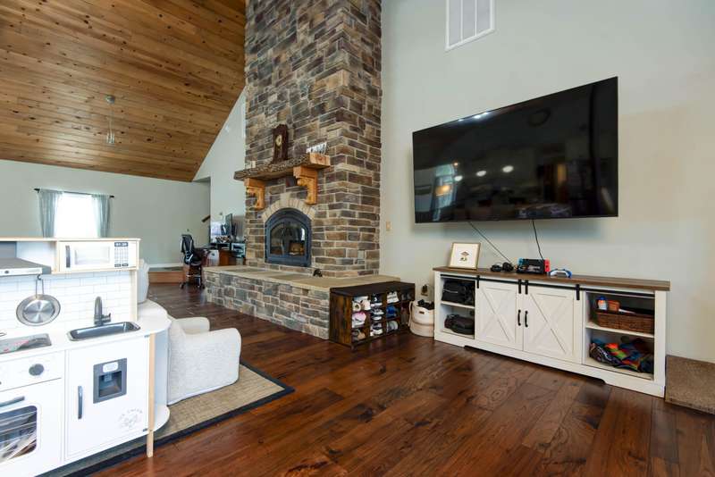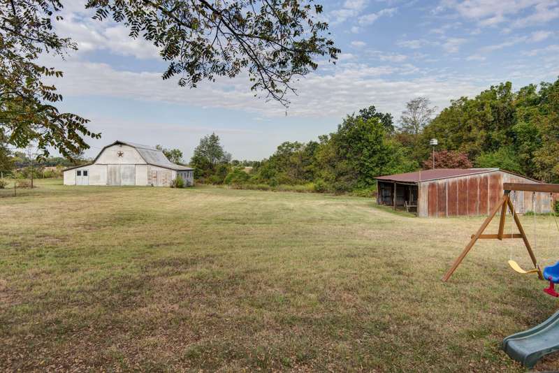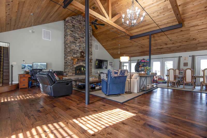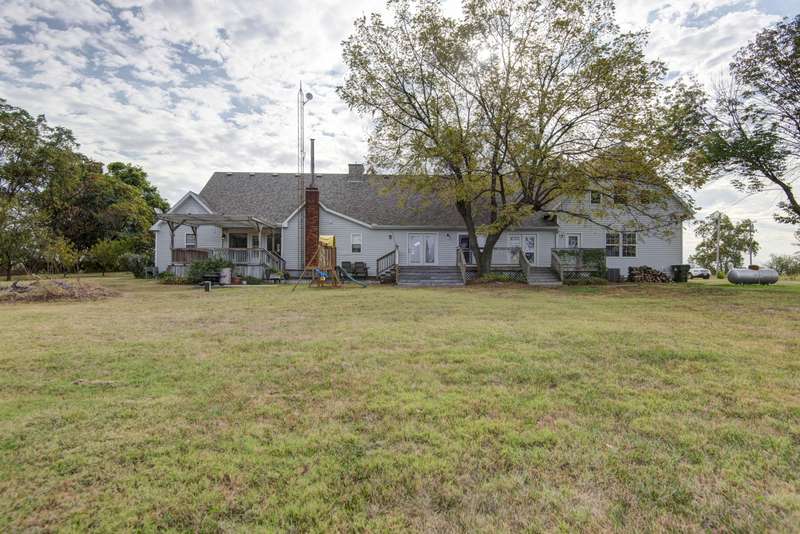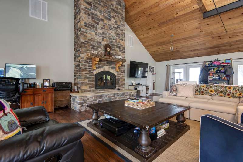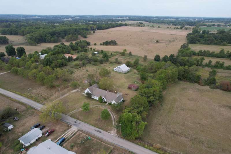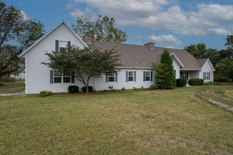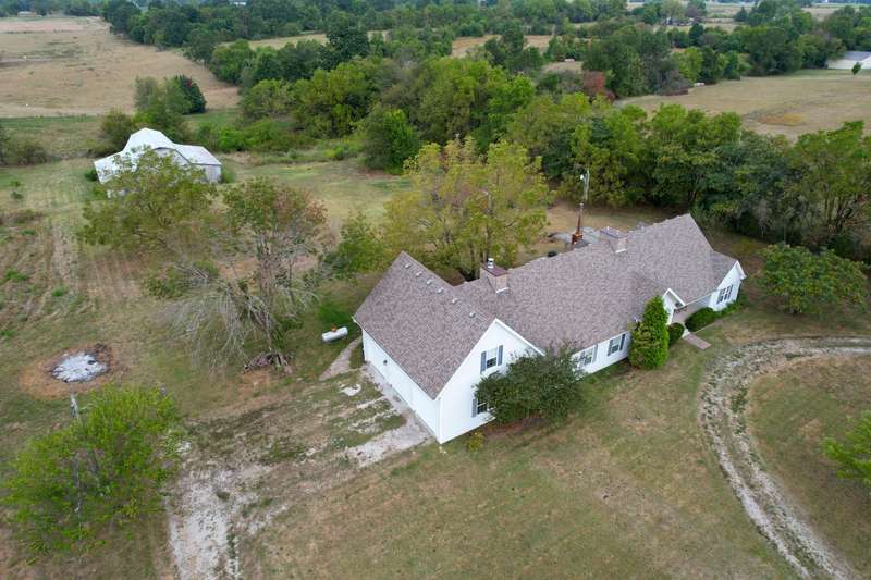 Welcome to your own private retreat on nearly 5 acres!This stunning 3-bedroom, 4.5-bath home offers over 3,200 square feet of living space, a spacious 3-car garage, and room to spread out!From the moment you walk inside, you'll be impressed by the soaring ceilings, exposed beams, and the incredible floor-to-ceiling stone fireplace in the open living area. Just off the entry is a formal sitting room, perfect for entertaining or quiet mornings with a cup of coffee.The kitchen is a cook's dream, featuring granite countertops, an expansive island with seating, and stainless steel appliances. Every bedroom includes its own ensuite bath, and the oversized owner's suite is a true retreat--with a walk-in tiled shower, soaking tub, and double walk in closets. Need an extra room? There is a non-conforming space that could easily serve as a guest room, office, or bonus room. Multiple porches around the home invite you to relax, take in the views, and enjoy the peaceful surroundings. As a bonus there is an in ground tornado shelter professional installed in the garage floor for easy access, plus a 45'x55' barn with electricity and partial concrete floors. This space is something you will want to see!