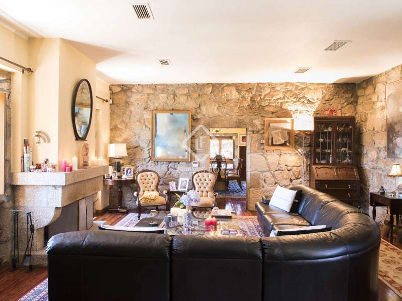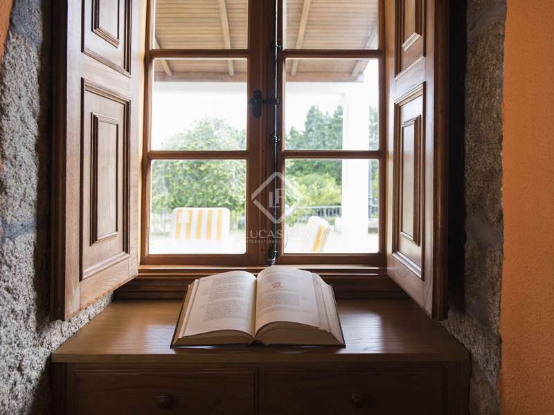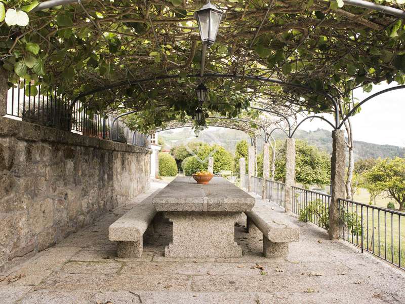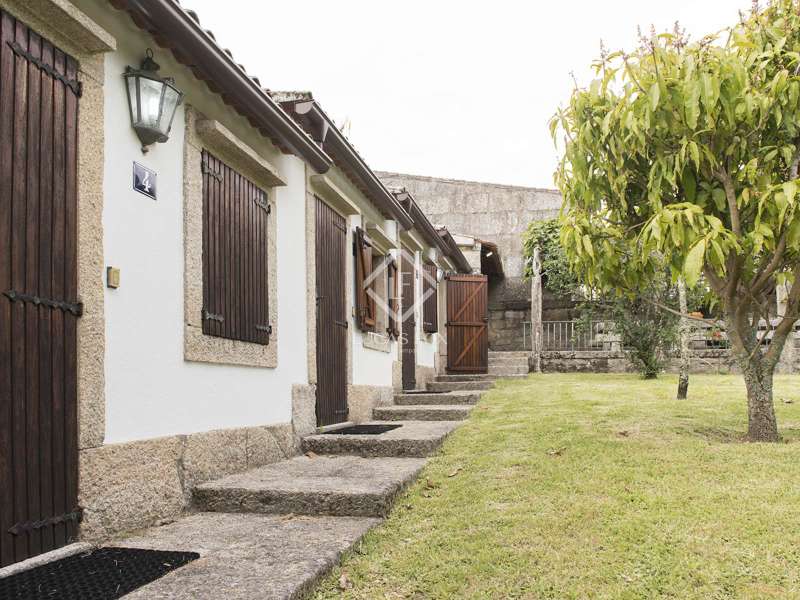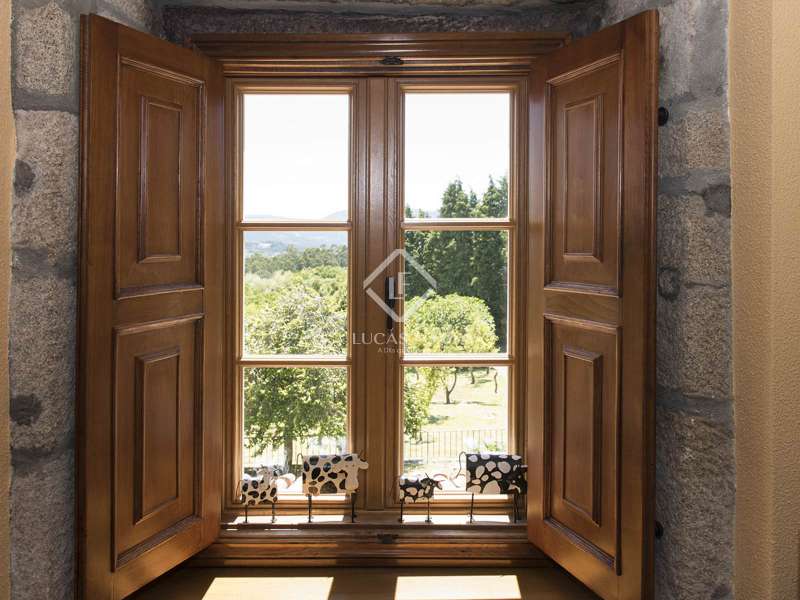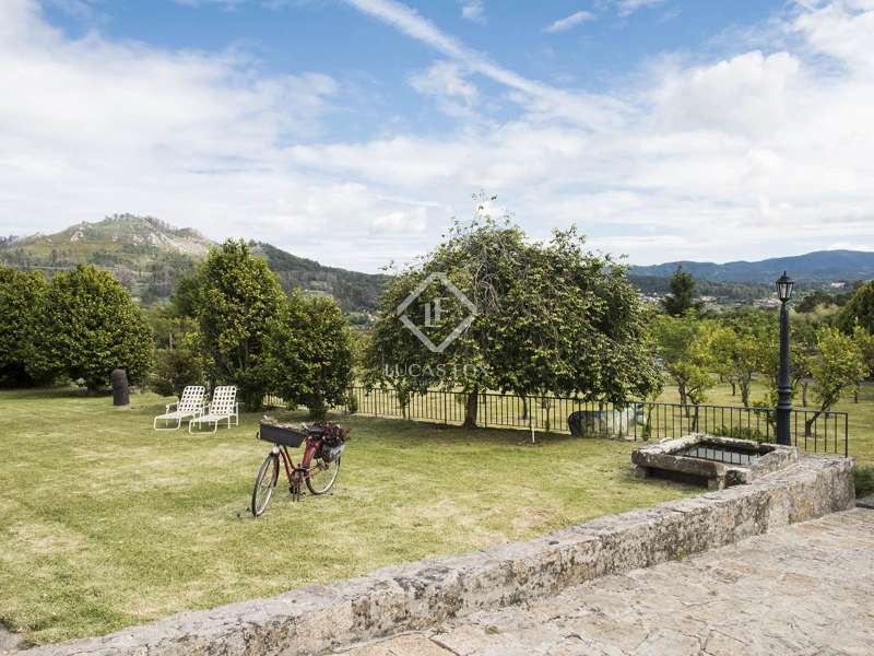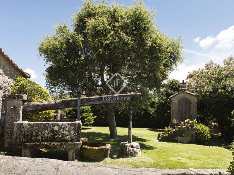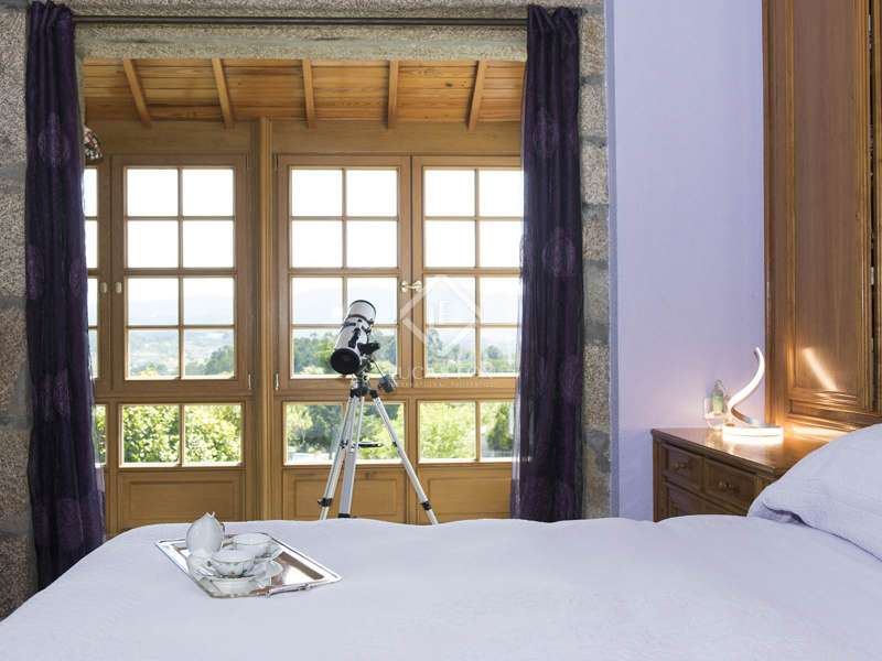 This exceptional property, dating back to the 19th century, is located in Nigran, Pontevedra. The 6,681m² estate is surrounded by an original stone wall and offers total privacy. The estate includes the original private chapel and 3 independent guest houses. The property has a built area of 764m² of which 540m² correspond to the main house, distributed across 2 floors. The main floor is accessed through a stone porch, a characteristic feature in historic buildings such as this. We are welcomed into a reception area that leads to the living room, here you will find a large wood burning stone fireplace, and windows with views to the gardens, this area boasts fine finished hardwood flooring. Continuing on this floor we access the lovely 35m² dining room and the kitchen. On the same floor we find the master bedroom with en-suite measuring 25m². There is a vast glazed gallery offering views of the "cruceiro", the chapel and the beautiful gardens with fruit trees of different types and a variety of ornamental plants. It is worth noting that among the trees are South American species that have adapted very well to the unique climate of this area, such as avocado & mango. All the windows on this floor have been renovated with double glazing and security plus fireproof wood which respects the style of the original construction. The ground floor, accessed from the main hall of the upper level, includes a lounge area, two bedrooms overlooking the garden and with built-in wardrobes and two bathrooms. There is an additional room currently used as a craft workshop which could be used as an extra bedroom. From the same lounge we access to a fully glazed gallery that leads directly to the garden and the summer dining terrace outside. The house also has a service entrance that leads to a private en-suite and laundry room. In the grounds surrounding the house there is a leisure area with a large house used for dining and events and a magnificent large swimming pool. This house has a large living area, a dining section, a kitchen with bar, as well as fireplace and air conditioning. There is a stone barbecue by a large stone table under a thick vine of kiwis, perfect for spring-summer but also pleasant in the autumn. The Chapel with its sacristy, large porch, winery, winepress, the cruceiro, hórreo and other facilities for staff make this a truly exceptional property. There are three independent guests houses, two featuring living areas, bathrooms and separate entrances. Contact us for further information.