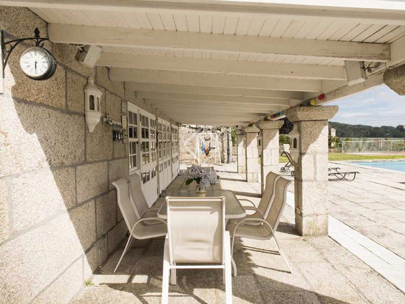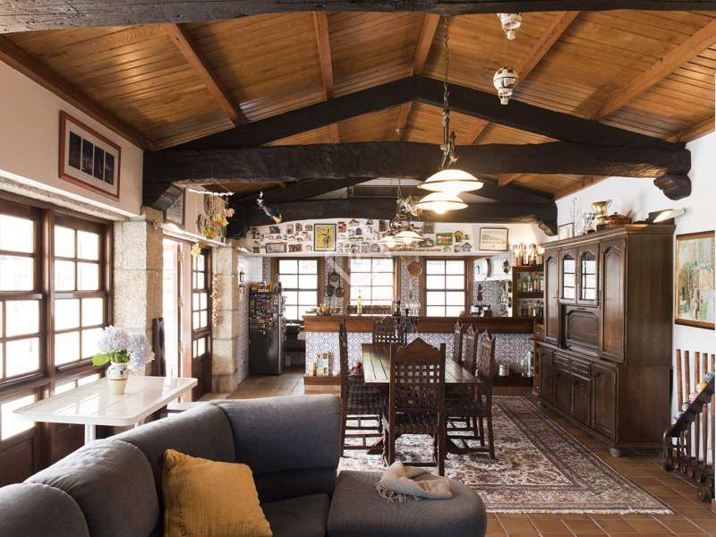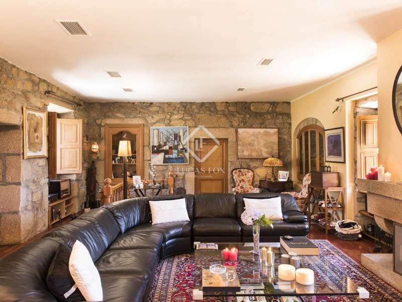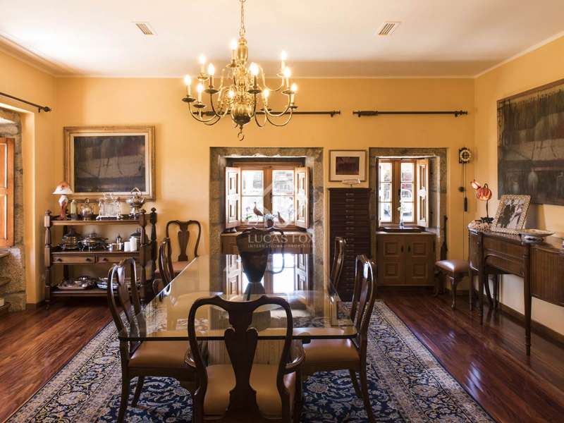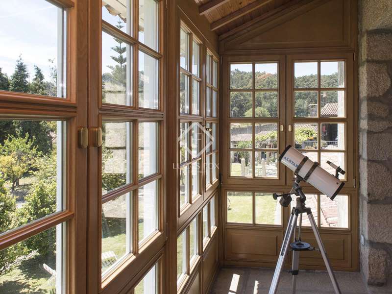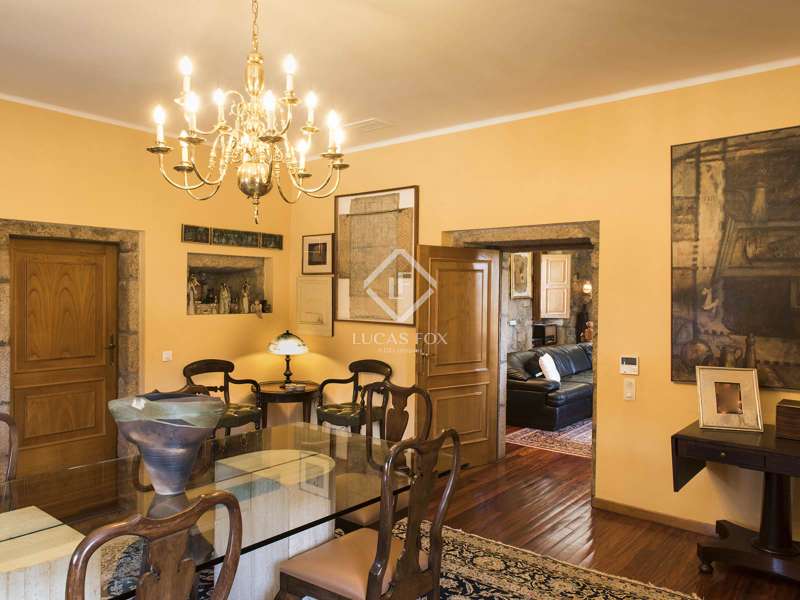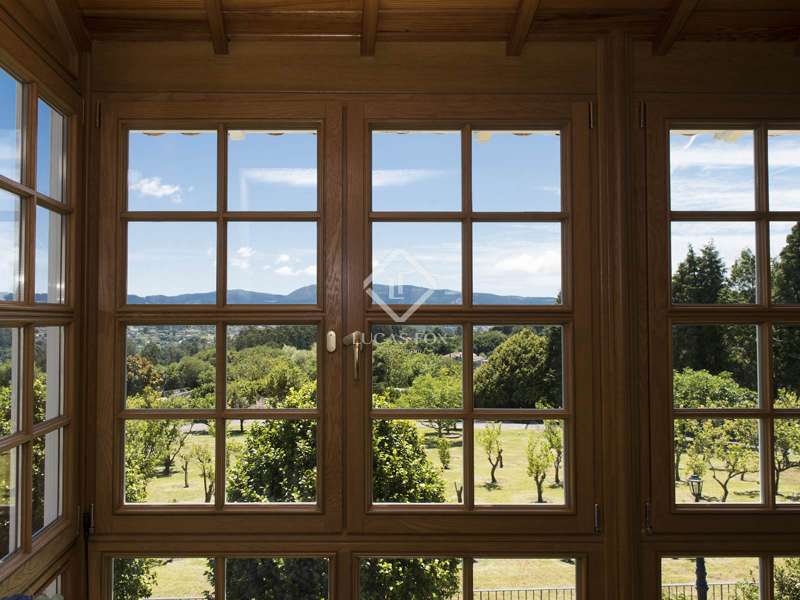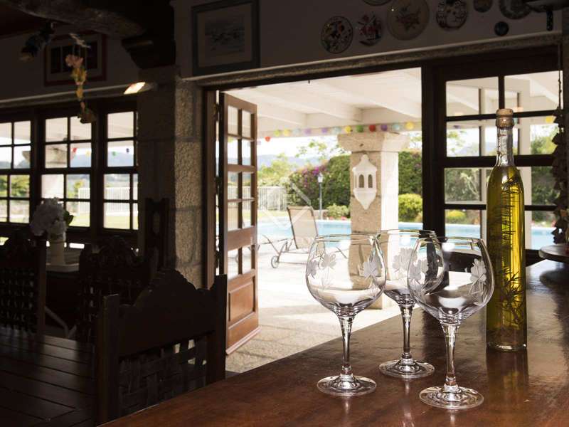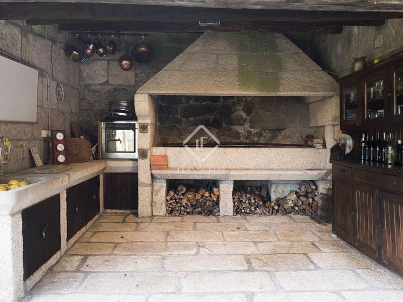 This exceptional property, dating back to the 19th century, is located in Nigran, Pontevedra. The 6,681m² estate is surrounded by an original stone wall and offers total privacy. The estate includes the original private chapel and 3 independent guest houses. The property has a built area of 764m² of which 540m² correspond to the main house, distributed across 2 floors. The main floor is accessed through a stone porch, a characteristic feature in historic buildings such as this. We are welcomed into a reception area that leads to the living room, here you will find a large wood burning stone fireplace, and windows with views to the gardens, this area boasts fine finished hardwood flooring. Continuing on this floor we access the lovely 35m² dining room and the kitchen. On the same floor we find the master bedroom with en-suite measuring 25m². There is a vast glazed gallery offering views of the "cruceiro", the chapel and the beautiful gardens with fruit trees of different types and a variety of ornamental plants. It is worth noting that among the trees are South American species that have adapted very well to the unique climate of this area, such as avocado & mango. All the windows on this floor have been renovated with double glazing and security plus fireproof wood which respects the style of the original construction. The ground floor, accessed from the main hall of the upper level, includes a lounge area, two bedrooms overlooking the garden and with built-in wardrobes and two bathrooms. There is an additional room currently used as a craft workshop which could be used as an extra bedroom. From the same lounge we access to a fully glazed gallery that leads directly to the garden and the summer dining terrace outside. The house also has a service entrance that leads to a private en-suite and laundry room. In the grounds surrounding the house there is a leisure area with a large house used for dining and events and a magnificent large swimming pool. This house has a large living area, a dining section, a kitchen with bar, as well as fireplace and air conditioning. There is a stone barbecue by a large stone table under a thick vine of kiwis, perfect for spring-summer but also pleasant in the autumn. The Chapel with its sacristy, large porch, winery, winepress, the cruceiro, hórreo and other facilities for staff make this a truly exceptional property. There are three independent guests houses, two featuring living areas, bathrooms and separate entrances. Contact us for further information.