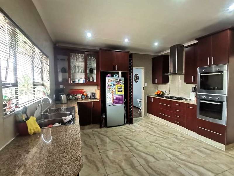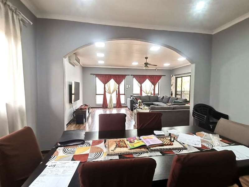 This easy to maintain face brick family home is set on a well sized stand - Be welcomed by a beautiful and spacious entrance hall leading to the open plan air-conditioned lounge, dining area and to the spacious kitchen with modern countertops, plenty cupboard space and a separate laundry room. There are 4 spacious bedrooms with built-in cupboards, the main bedroom has an air-con, en-suite bathroom and a walk-in cupboard. The second ultra-modern bathroom serves the 3 other bedrooms. This property boasts a potential flatlet currently used as an office and also has a bathroom. Complete with a double garage, carport and a huge storeroom. Close to the hospital, shopping centres and so much more...
