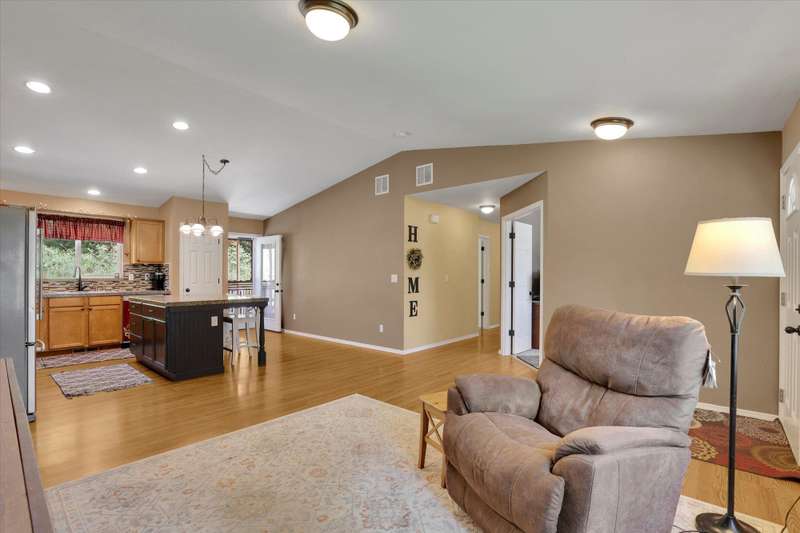 Welcome to your own private paradise! Nestled on nearly 3.5 peaceful acres, this property offers a rare combination of comfort, functionality, and room to live your dream lifestyle. Boasting 3 spacious bedrooms and 2 well-appointed bathrooms, this beautifully maintained one-level home also offers the ultimate bonus features — a massive 30' x 40' shop and a charming ‘she-shed,’ providing ample space for all your hobbies, storage needs, and creative pursuits. Inside you’ll discover an open-concept floor plan enhanced by vaulted ceilings that create an airy, expansive feel. The large sunroom with elegant tile flooring and pellet stove is the perfect spot to unwind, entertain, or simply enjoy the peace and beauty of your natural surroundings. Whether you're savoring the tranquility of the outdoors or relaxing inside, this home is a sanctuary ready to be enjoyed year-round. Don’t miss your chance to own this slice of paradise—schedule your showing today and experience the home you’ve been waiting for!