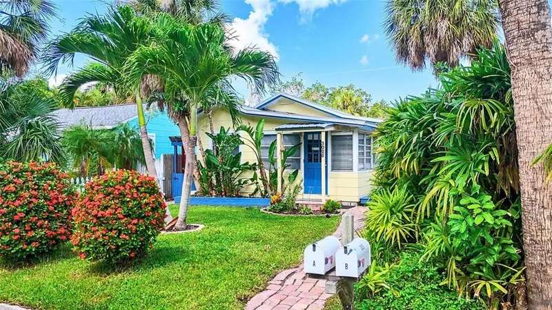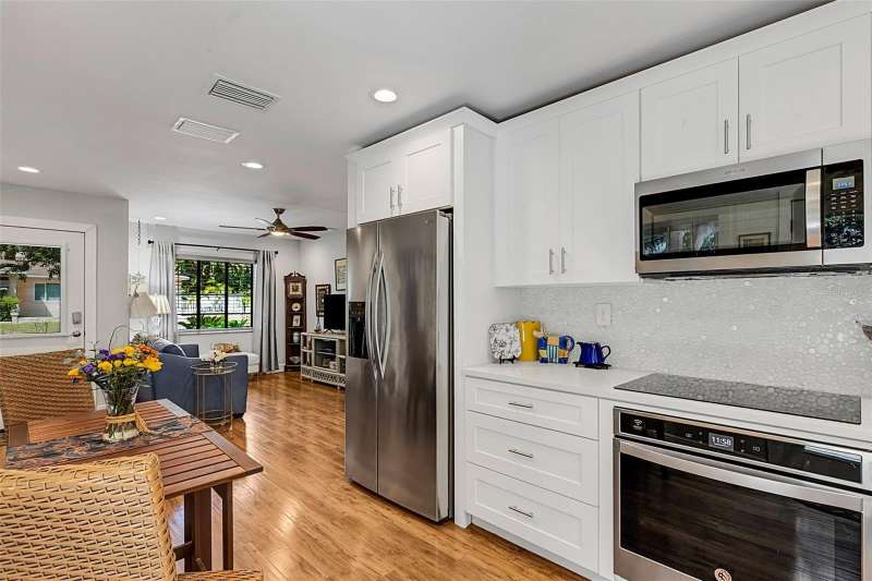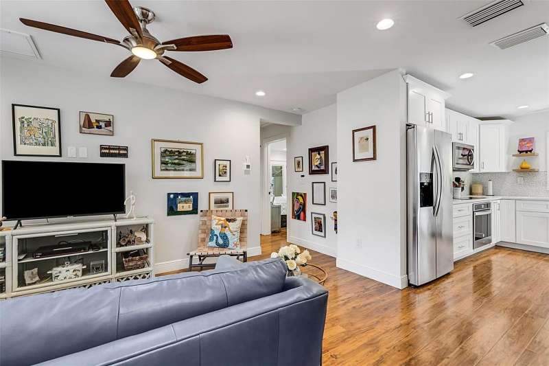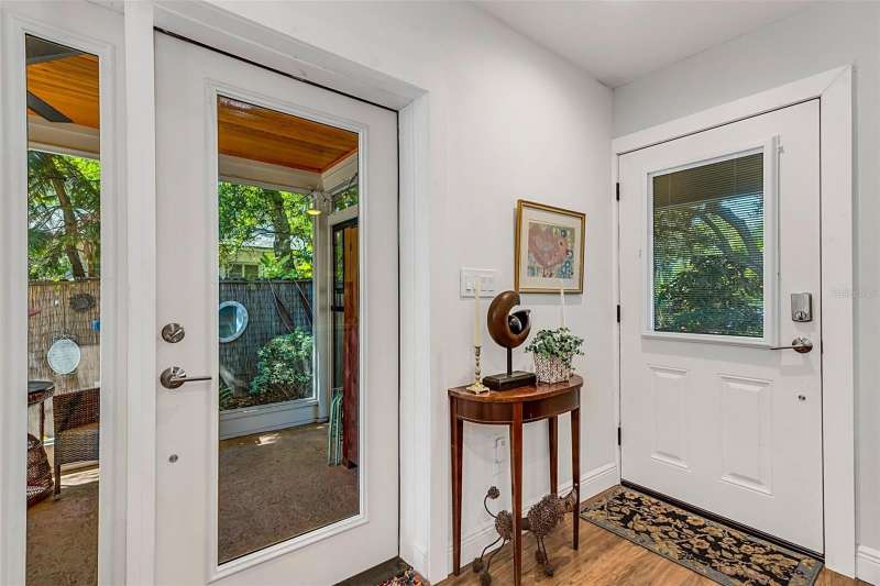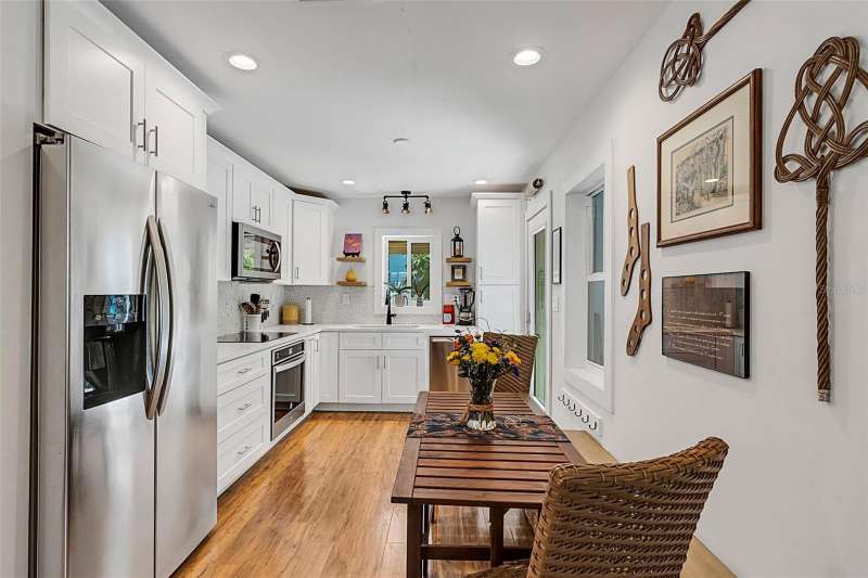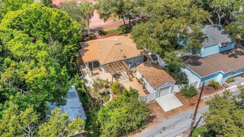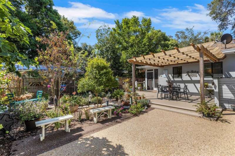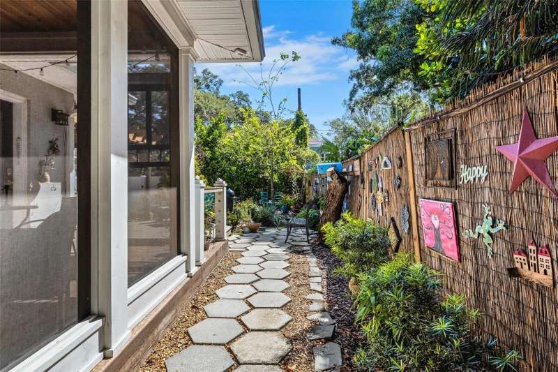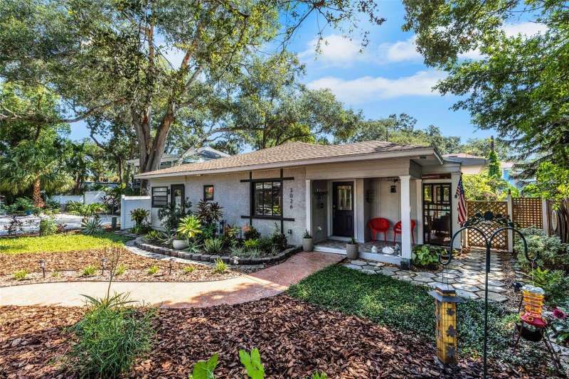 Welcome to 3026 51st Street South, Gulfport, Florida. Great opportunity for a primary home or investment. Located in the vibrant Arts District this one level, two bedroom, two bathroom home was completely renovated in 2018/19 including an added screened lanai, composite decking with a pergola and a garage. The front porch preserves original architectural details of the tongue and groove wood ceiling. The architecturally designed interior showcases a new chef's kitchen with white custom cabinetry, stainless steel appliances, floating shelves, a unique marble and glass backsplash, a pass through window for entertaining, and an induction cooktop. The renovated baths are spacious and inviting with gorgeous ceramic tile, new fixtures & faucets. 2nd bedroom includes a murphy bed. All appliances convey, including washer & dryer. The lush landscape is a gardener's delight featuring a fenced rear yard for privacy, large patio, parking pad for RV or boat, a papaya tree, and Florida friendly plantings. Room for a pool. New water filtration system installed and working on installing a New fence. Outside there are two sheds for storage and a grilling area. Plenty of storage-separate attached room with terazzo flooring + garage. This sought after neighborhood is golf cart friendly, warm and welcoming with a true sense of community. Walk to watch the sunset over the Boca Ciega Bay, or to restaurants, boutiques, galleries, Veterans park, library and a beautiful sandy beach! Minutes to downtown St. Pete and St. Pete Cleawater Airport. Great house and location + No damage/issues during recent storms! Move in Ready!