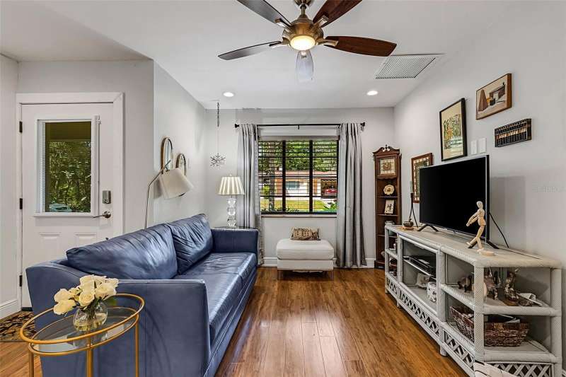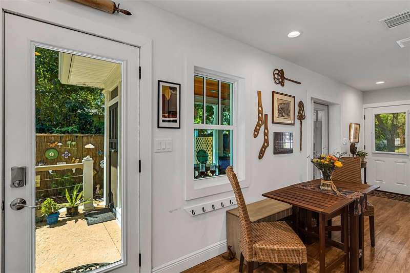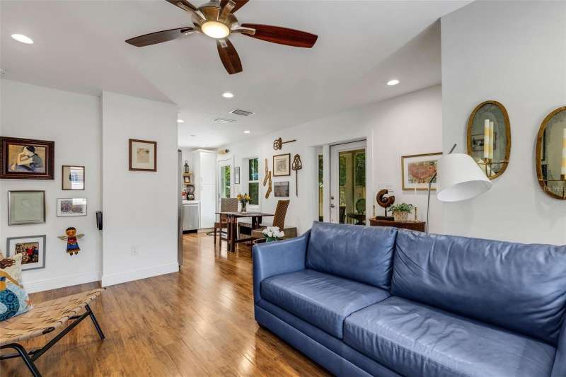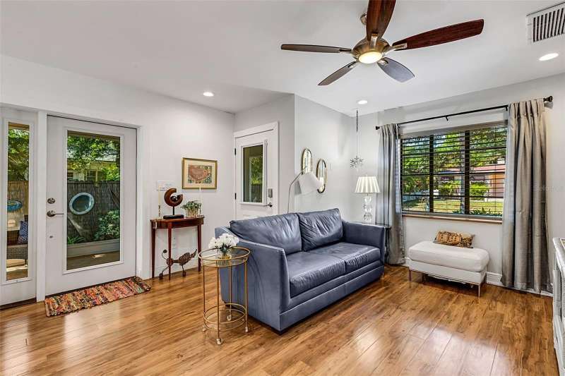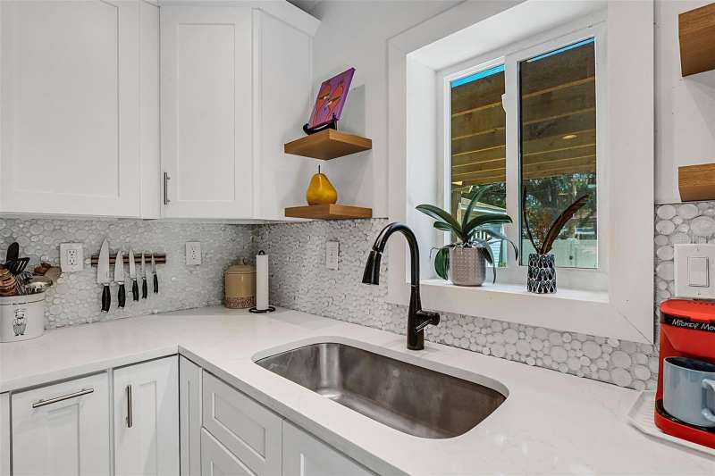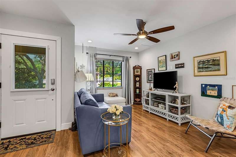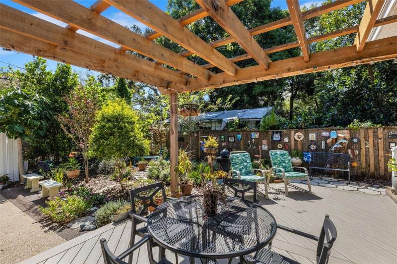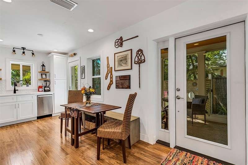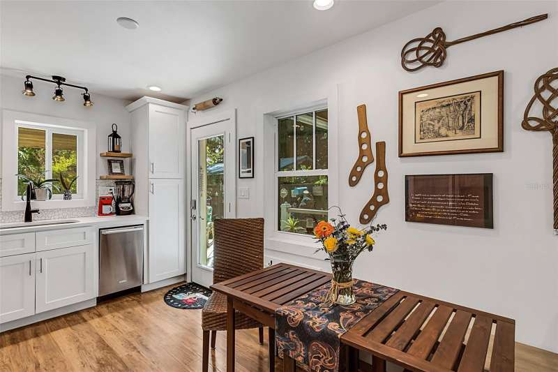 Welcome to 3026 51st Street South, Gulfport, Florida. Great opportunity for a primary home or investment. Located in the vibrant Arts District this one level, two bedroom, two bathroom home was completely renovated in 2018/19 including an added screened lanai, composite decking with a pergola and a garage. The front porch preserves original architectural details of the tongue and groove wood ceiling. The architecturally designed interior showcases a new chef's kitchen with white custom cabinetry, stainless steel appliances, floating shelves, a unique marble and glass backsplash, a pass through window for entertaining, and an induction cooktop. The renovated baths are spacious and inviting with gorgeous ceramic tile, new fixtures & faucets. 2nd bedroom includes a murphy bed. All appliances convey, including washer & dryer. The lush landscape is a gardener's delight featuring a fenced rear yard for privacy, large patio, parking pad for RV or boat, a papaya tree, and Florida friendly plantings. Room for a pool. New water filtration system installed and working on installing a New fence. Outside there are two sheds for storage and a grilling area. Plenty of storage-separate attached room with terazzo flooring + garage. This sought after neighborhood is golf cart friendly, warm and welcoming with a true sense of community. Walk to watch the sunset over the Boca Ciega Bay, or to restaurants, boutiques, galleries, Veterans park, library and a beautiful sandy beach! Minutes to downtown St. Pete and St. Pete Cleawater Airport. Great house and location + No damage/issues during recent storms! Move in Ready!