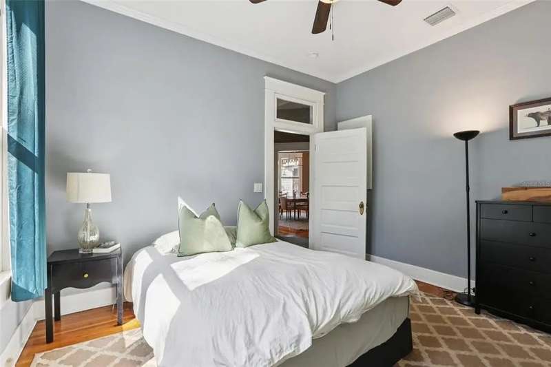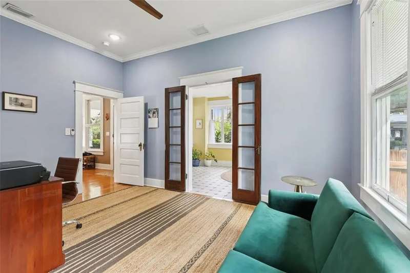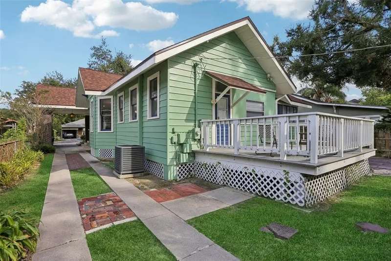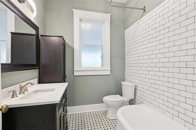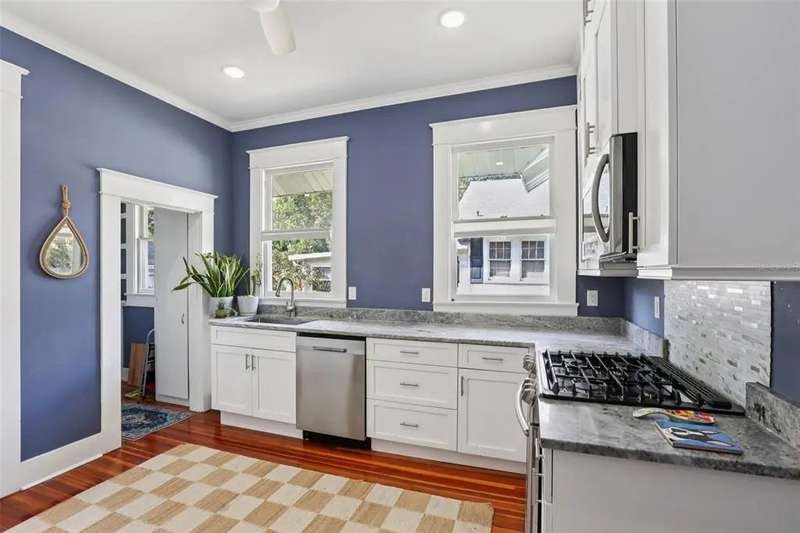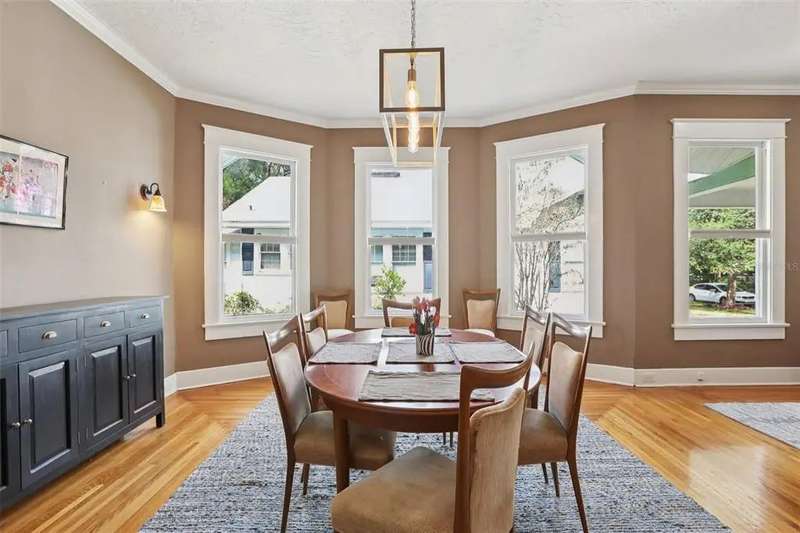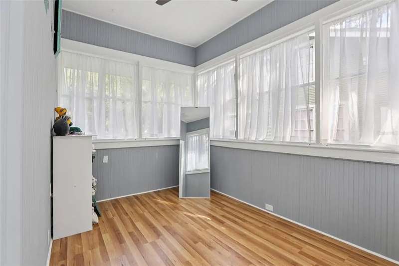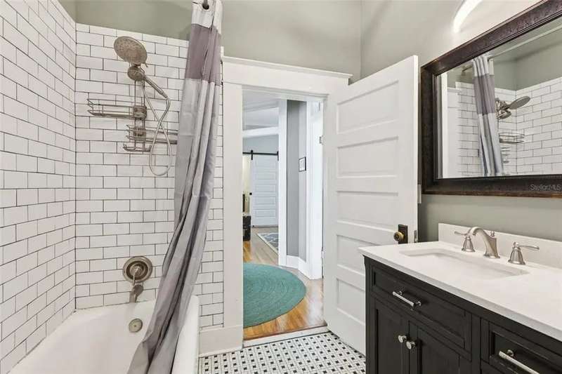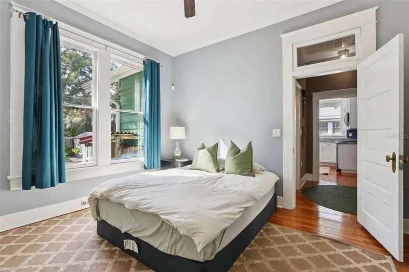 This stunningly restored 1910 bungalow blends historic charm with modern upgrades. Located in the heart of historic Seminole Heights on a large 61x132 lot, this home has beautifully refinished hardwood floors, crown molding, and high ceilings throughout. The living and dining rooms feature recessed lighting, custom light fixtures, and bottom-up cordless shades for privacy and style. The kitchen is a chef’s dream, boasting stone countertops, stainless steel Samsung appliances, a walk-in pantry with built-in shelving, and direct access to the utility room and outdoor deck. The newly remodeled primary suite includes a built-in closet and a luxurious full bathroom with stone counters and a walk-in shower. Bedroom 2 opens to a sunroom through French doors and showcases tile flooring and a custom light fixture, while Bedroom 3 offers a built-in closet and a cozy den/office space wrapped in windows and beadboard paneling, perfect for work or relaxation. The 2nd bath was renovated with classic tile honoring the era of the home. The utility room includes washer/dryer, built-in storage, and backyard access. Outside, enjoy a covered front porch, a huge back yard, and a long driveway with porte cochère. The backyard is ideal for entertaining, with a wood deck, paver patio, gated side yard, alley access, and a storage shed. Recent updates include a new roof (2023), AC system (2020), foundation restoration (2022), and a PEX plumbing system (2016). The home also features a tankless electric water heater and water softener. This prime property offers walkable access to Florida Avenue’s most sought-after restaurants and is just minutes from Raymond James Stadium, Armature Works, Downtown Tampa, Tampa International Airport, and I-75.