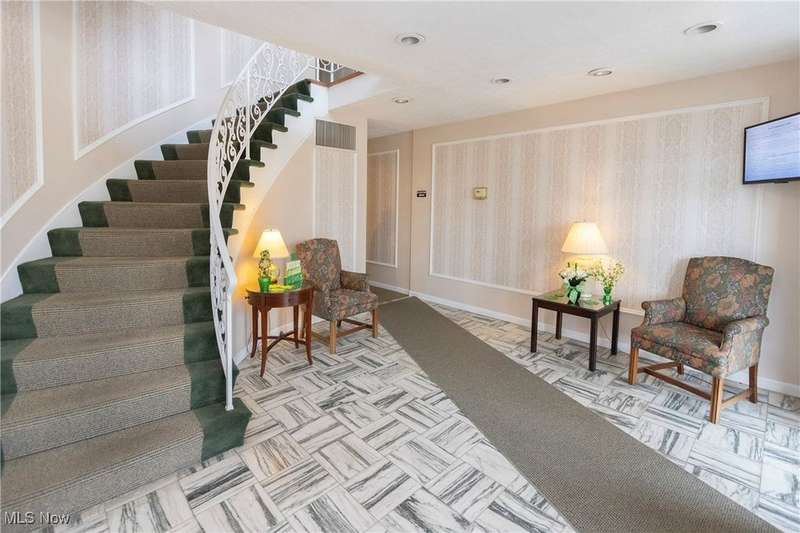 Welcome to The Riviera West in Rocky River! This bright and spacious end unit features 2 bedrooms and 2 full bathrooms, offering comfort and convenience in a prime location. The inviting living room boasts a newer electric fireplace insert and opens to a private balcony overlooking the front of the building?perfect for relaxing or entertaining. Enjoy the ease of in-suite laundry, a dedicated garage space, and an additional storage unit for all your essentials. With generous room sizes and ample storage throughout, this condo combines style, warmth, and functionality in one of Rocky River's most desirable communities.