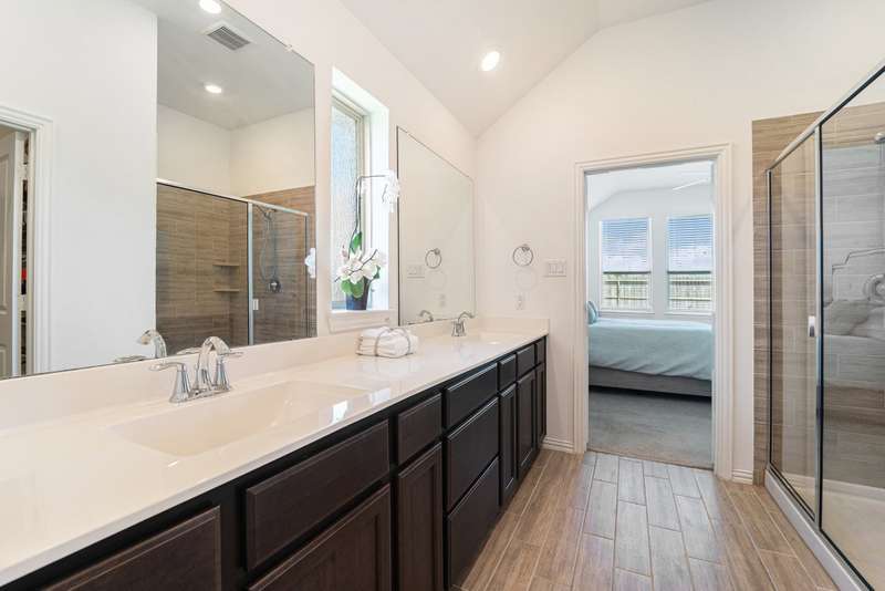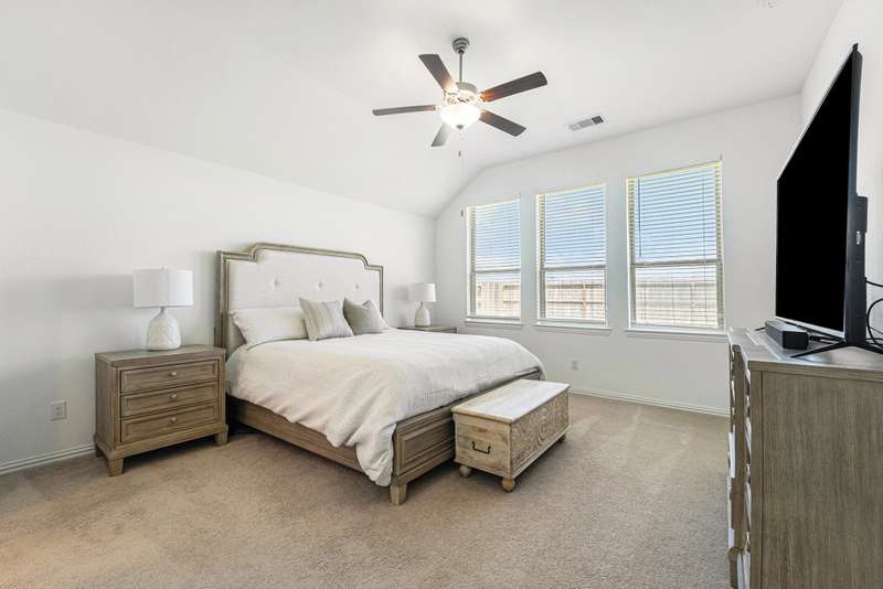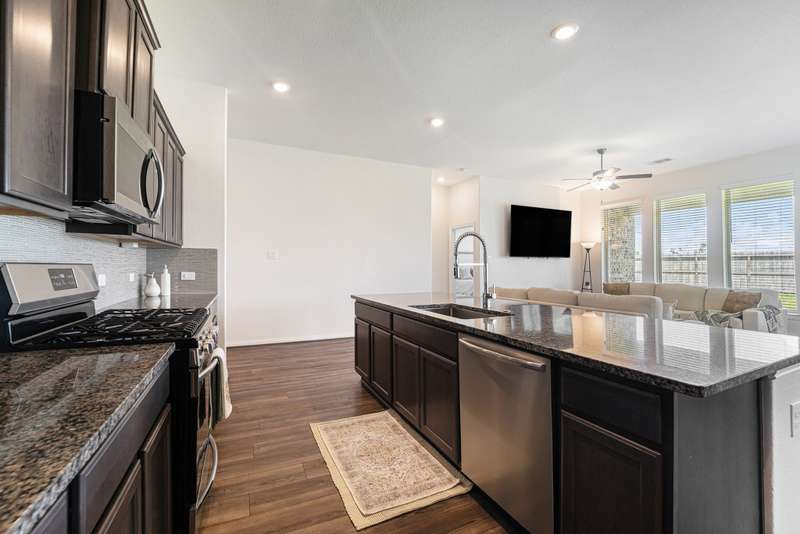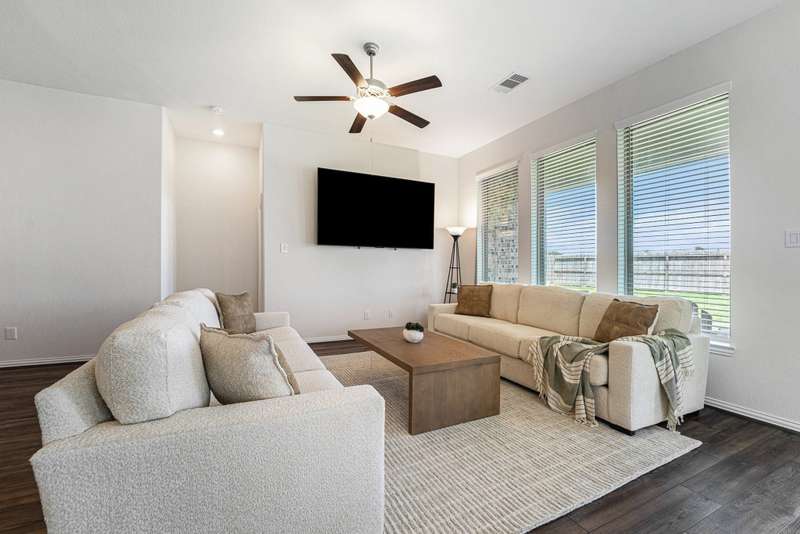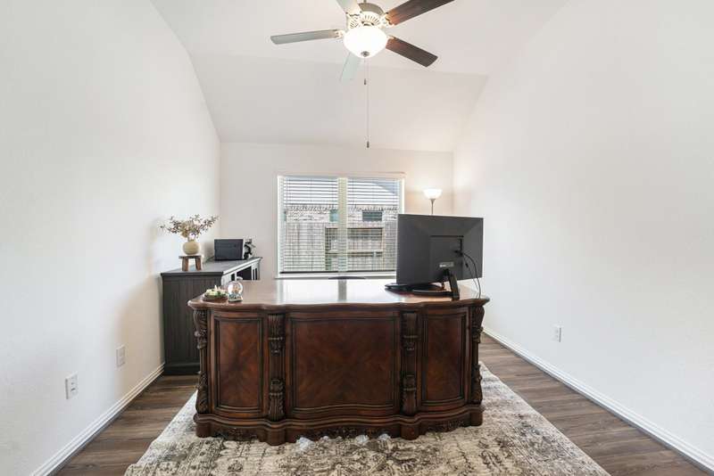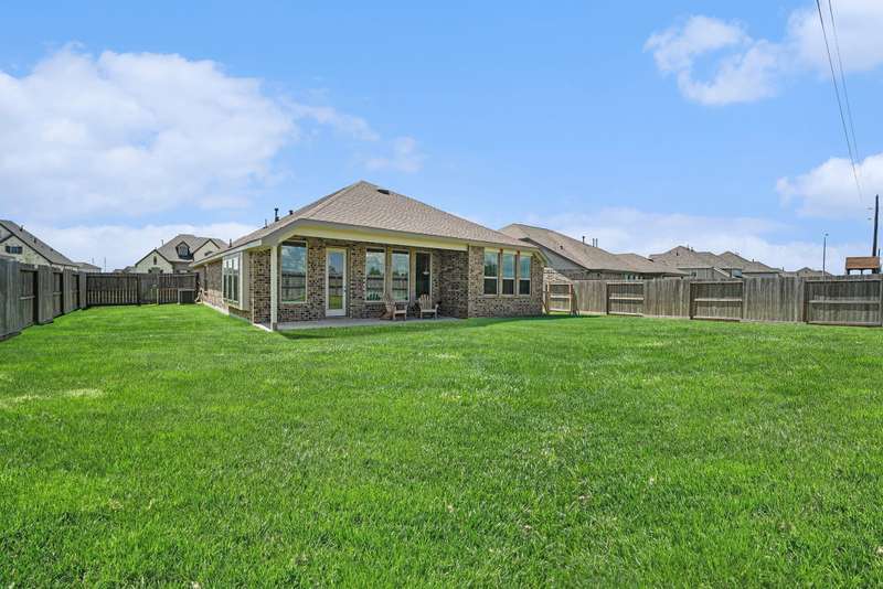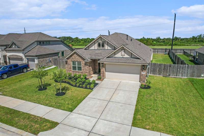 4 bedrooms, 3 bathrooms, and a private office on a spacious quarter-acre lot! All with NO MUD tax in Lakes of Champions Estates. Zoned to top-rated Barbers Hill ISD North, this single-story home offers an open-concept design with soaring ceilings, large windows, and wood-look floors throughout. The kitchen includes a walk-in pantry, abundant cabinetry, and generous counter space. The primary suite features dual vanities, an oversized walk-in shower, and a large closet. A private office with French doors adds versatility, while the oversized laundry room provides built-in storage and space for an additional refrigerator or freezer. Enjoy below-market rates and a prime location in one of the area’s most desirable communities. Schedule your tour today!