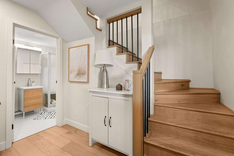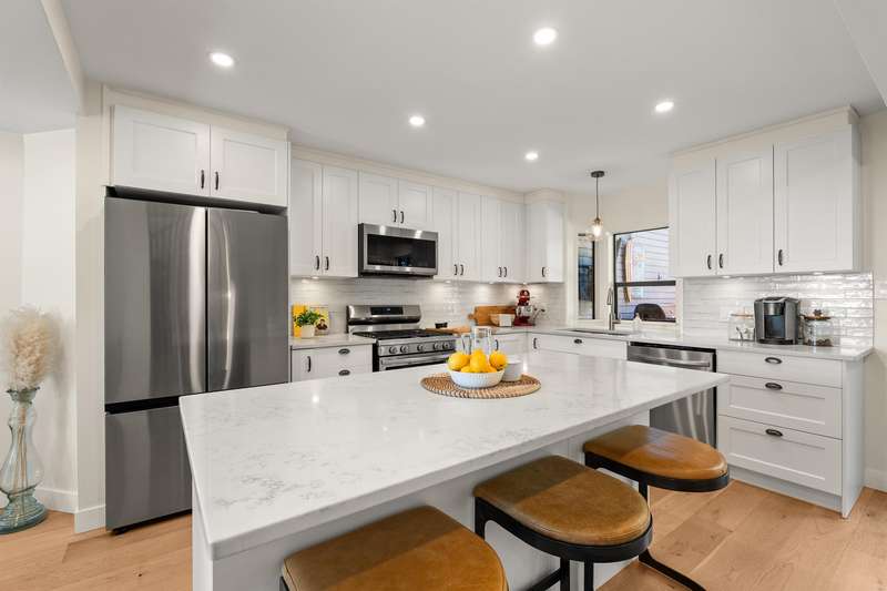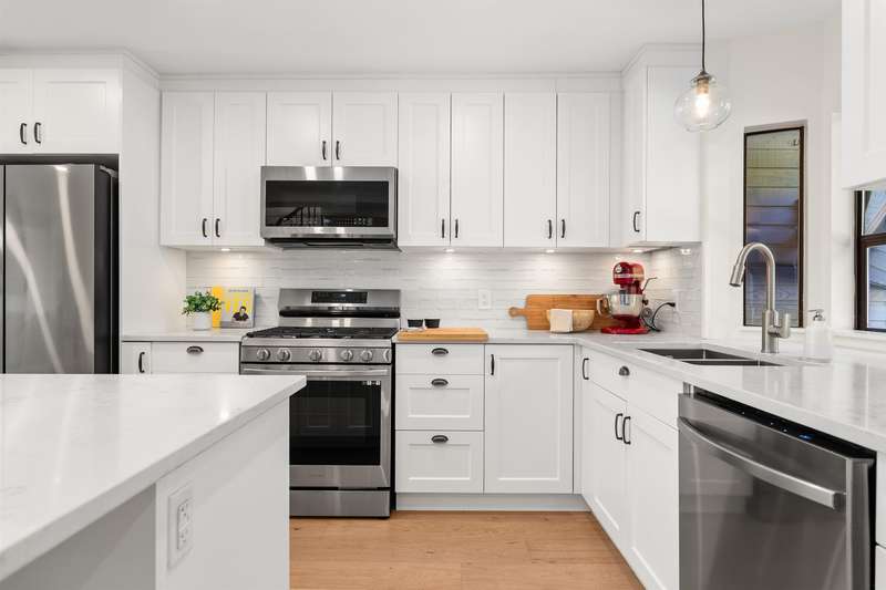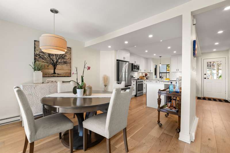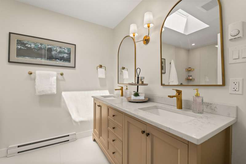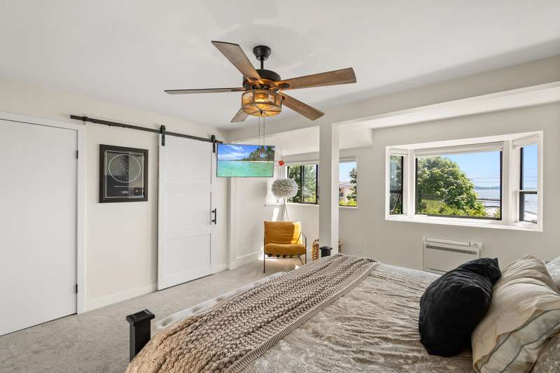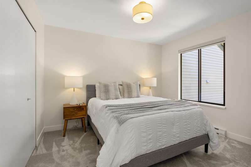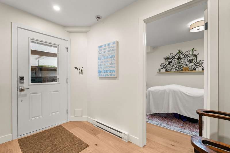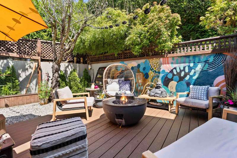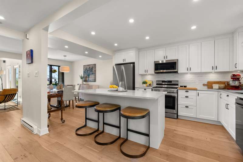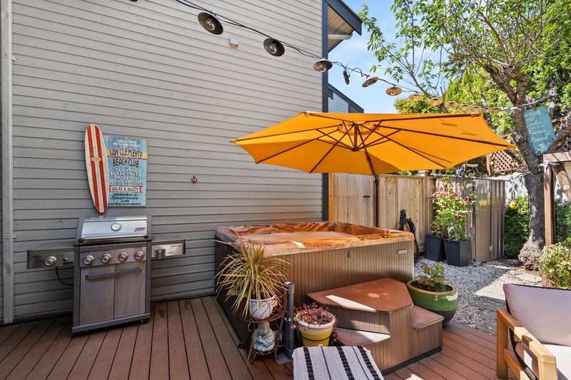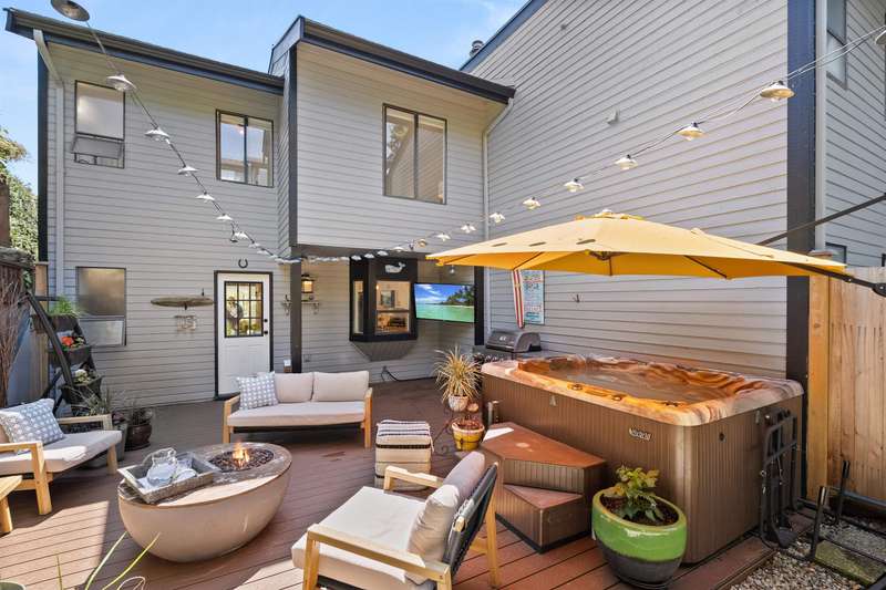 White Rock beachside living! This exquisite 3 bed, 3.5 bath end-unit townhouse offers over 1,800 sq ft of thoughtfully renovated space just steps from White Rock beach, the famous pier, and your choice of restaurants. Enjoy ocean views from both the main floor and spacious primary suite. This bright, renovated, open-concept home features engineered hardwood floors, a bright spacious kitchen and private backyard oasis that is an entertainer's dream with a hot tub, BBQ area, and alfresco dining/lounging spaces. Upstairs offers two generous bedrooms with ensuites, and updated laundry area with storage. Extra guest bedroom with murphy bed and bathroom on lower floor. Most recent upgrades include heat pump/AC, hot water tank, and more. A must see!