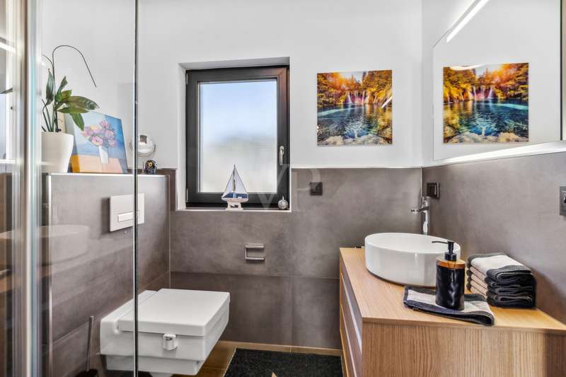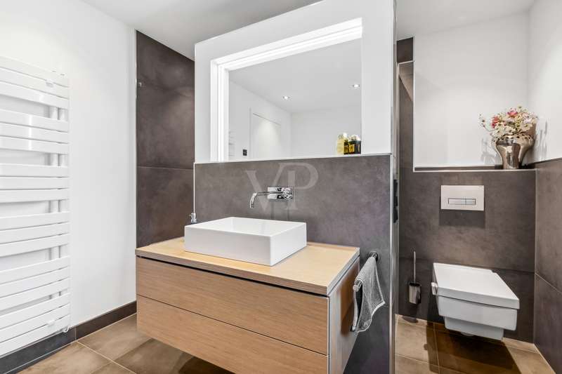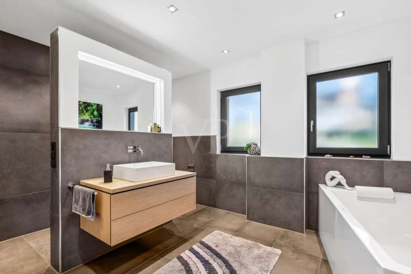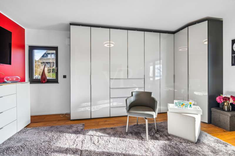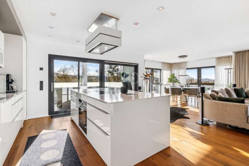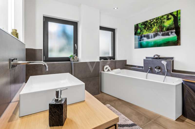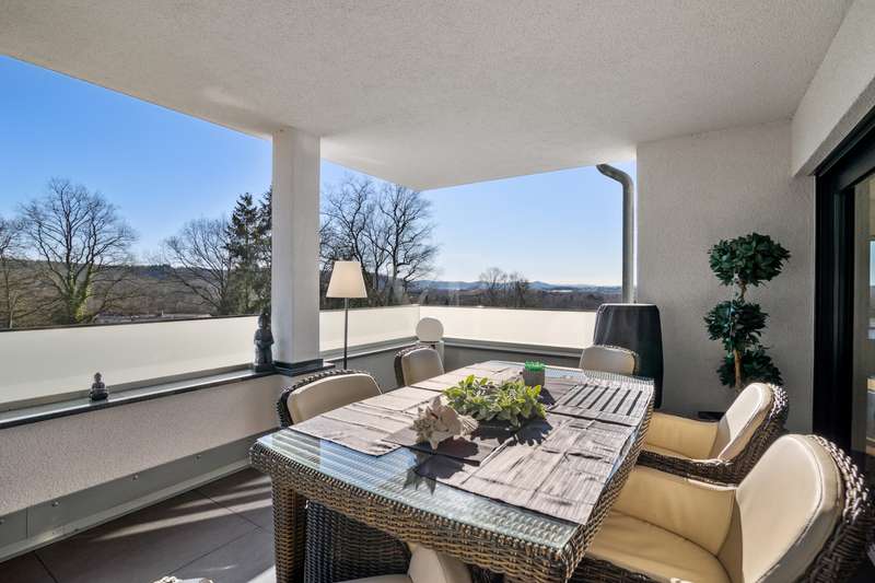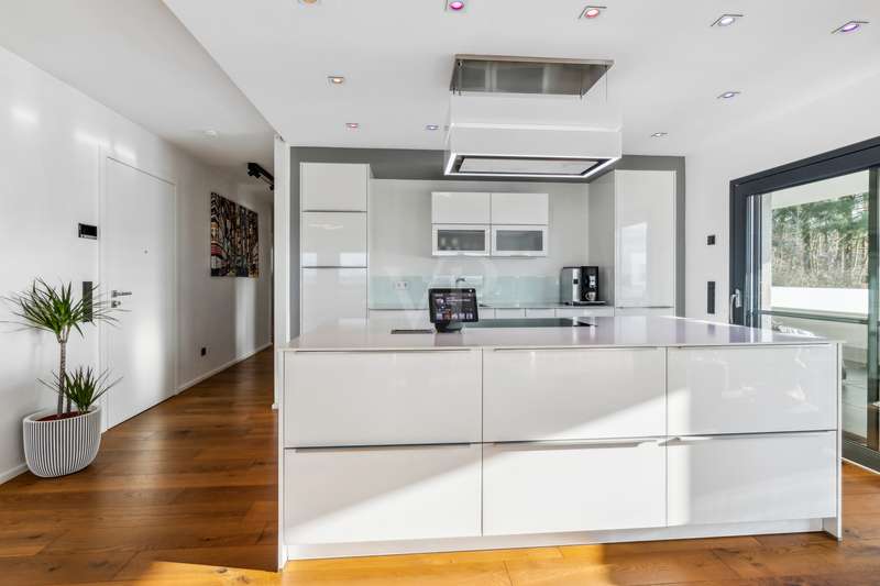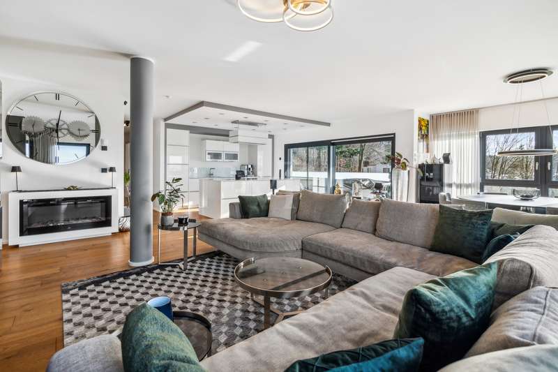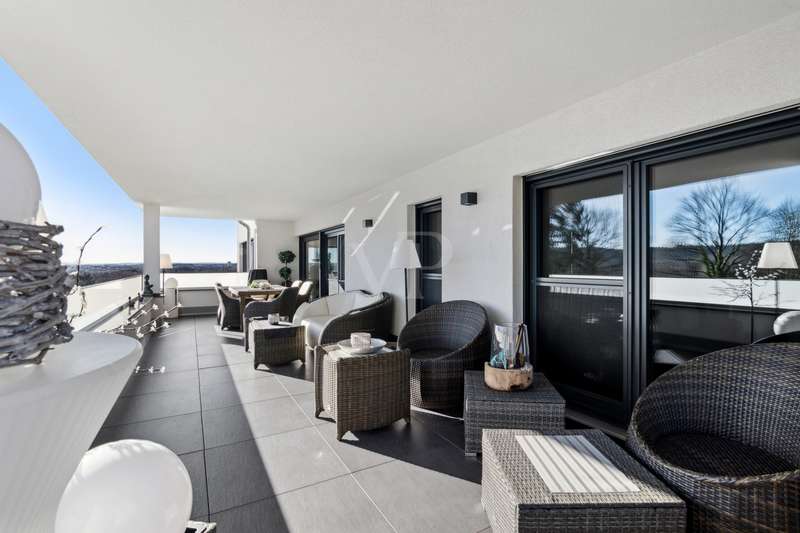 This exclusive condominium offers a generous living space of approx. 195 m² and is located in a modern, as-new three-family house in a fantastically beautiful residential area of Homburg-Sanddorf. The penthouse-style property offers maximum living comfort paired with first-class furnishings. It impresses with its excellent room layout, which is ideally tailored to the needs of families or people who appreciate plenty of space. The apartment comprises a total of seven generous rooms, including three spacious bedrooms, which offer a comfortable atmosphere in which to relax and unwind. The bedrooms are furnished with fine materials and high-quality floor coverings and offer a wide range of furnishing options thanks to their generous layouts. The floor-to-ceiling windows provide plenty of natural light and create a pleasant living ambience. Upon entering the apartment, you are greeted by a bright and spacious entrance area that flows directly into the open-plan living and dining area. Two modern bathrooms are available, which impress with their high-quality fittings and modern design. The master bathroom has an elegant bathtub and a walk-in shower, while the second guest bathroom is equipped with a spacious shower. Both bathrooms are fitted with elegant fittings and attractive tiling. This creates a stylish ambience that meets the demands of a comfortable living environment. Underfloor heating ensures even heat distribution in all rooms and, in conjunction with the building's high-quality insulation, offers an energy-saving living experience coupled with a pleasant indoor climate. The heart of the property is the light-flooded living/dining area, which impresses with its spaciousness and large windows that provide optimal lighting conditions. The open-plan design creates an airy and harmonious living atmosphere. In addition, this area is particularly impressive thanks to the uniquely fantastic view of the natural surroundings. The open-plan, luxurious fitted kitchen is equipped with all modern conveniences and high-quality appliances and meets the highest standards of functionality and design. In addition, the adjoining balcony-terrace offers a variety of uses and invites you to enjoy the sun with a picturesque view of the greenery in your free time. Here you can relax and end the day in a peaceful atmosphere. The master bedroom is another highlight. With the separate dressing area and the adjoining master bathroom, you can feel completely at ease at the highest level. High-quality materials and a sophisticated design characterize the appearance of all rooms. The entire apartment therefore boasts luxurious furnishings that leave nothing to be desired. The upscale building also offers an elevator, a first-class double garage and ample outdoor parking spaces, which further underline the living comfort. With its high-quality construction and modern architecture, this apartment is an ideal opportunity for discerning buyers who value quality and exclusivity. Arrange a viewing today and see for yourself the numerous advantages of this excellent property.
