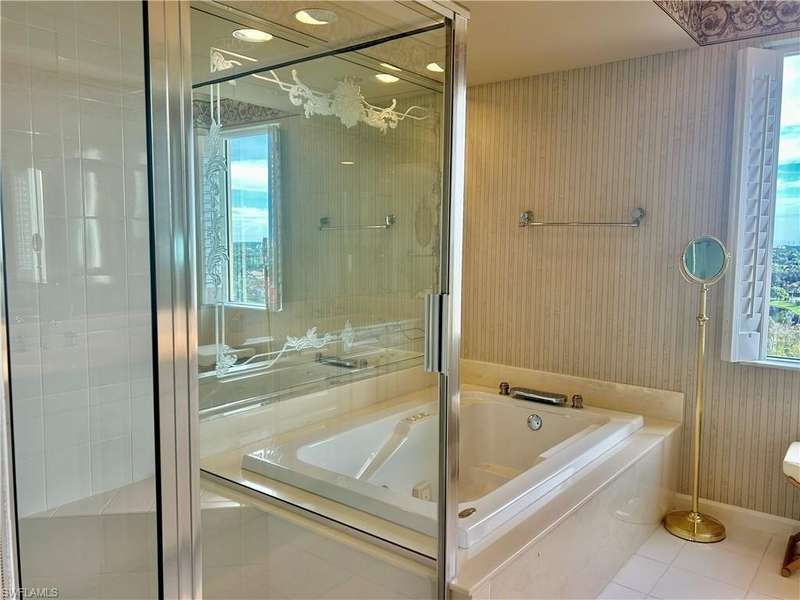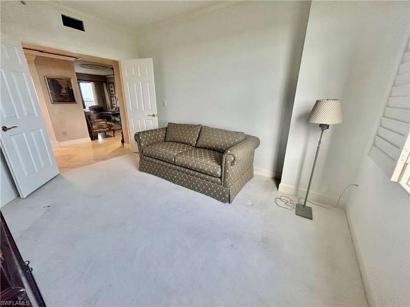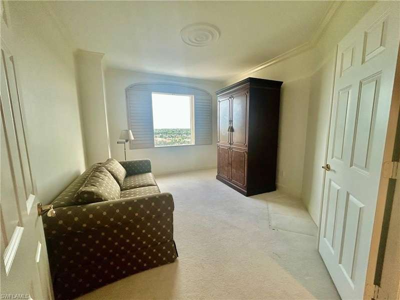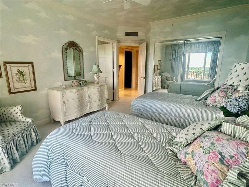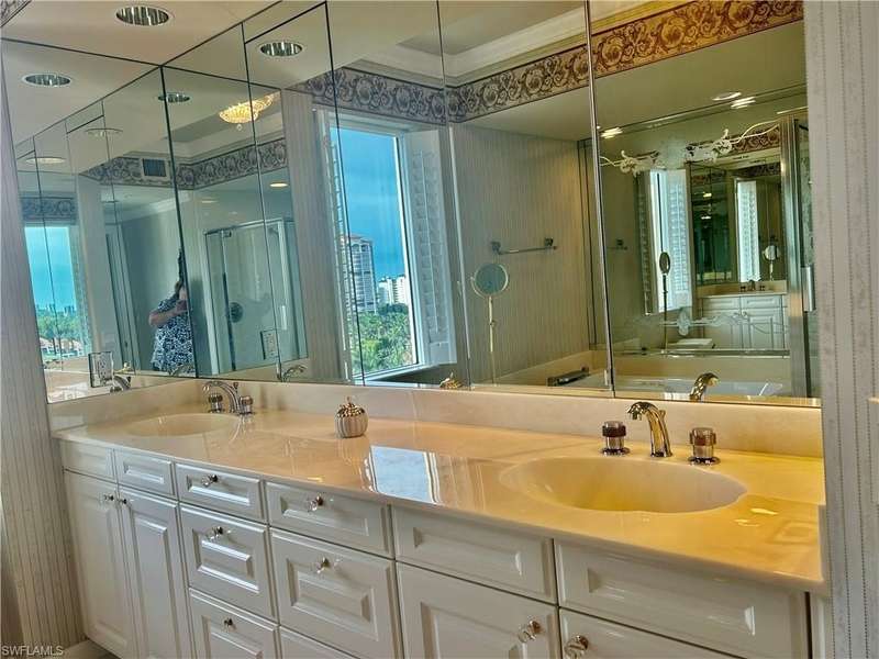 Guests can enjoy this elegant building located in the private gated community of Bay Colony. This 9th floor, 3 bedroom, den, 3 bath residence overlooks the beauty of the Pelican Bay preserve and Golf Beach. The quiet location offers a full range of amenities, including fitness, a large pool, spa and poolside grill. As a guest in the Marquesa, you have access to the tennis center, and also private Beach Club at Bay Colony, offering fine and casual dining, as well as a beachside pool with lounge service and light fare. This residence offers a spacious master suite, with a king-sized bed, flat screen TV, large walk-in closet, and a master bath e- suite with a large jetted tub, separate shower and dual sinks. Presently the guest suite features 2 twin beds, this will be one queen bed before Season 2026. The second guest bedroom offer a pullout sofa bed. The den offers desk and flat screen TV, plenty of space for those who need a work space. A beautiful kitchen with Corian counters, quality appliances, and a sitting area with dining for 4. Enjoy a beautiful sunset on the screened lanai, which is fully furnished for relaxing and dining; an east, morning view is perfect for your morning coffee. So close to the shops, restaurants and galleries at Waterside shops, and Venetian Village; a short drive to 5th Ave. S., and Third Street.