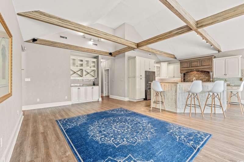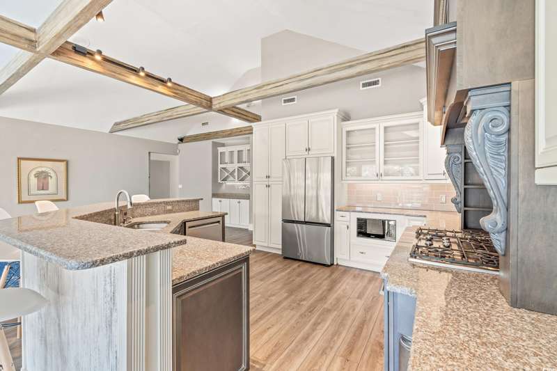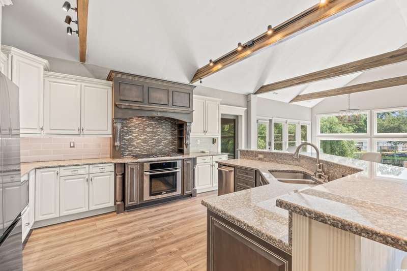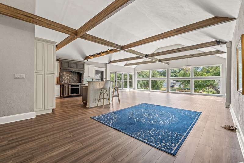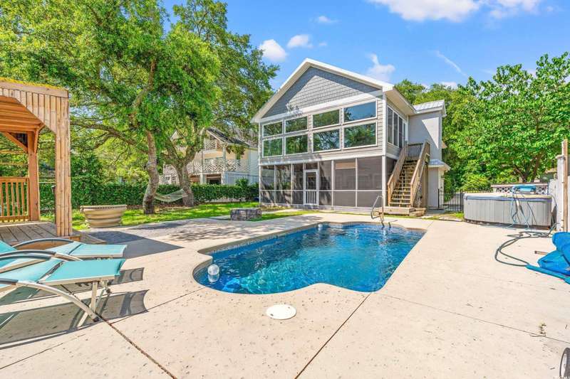 3597 Sunfish St. is nestled along Murrells Inlet creek, this 4-bedroom, 4-bathroom home offers the perfect blend of coastal charm and versatility. Enjoy direct access to the creek for kayaking, paddle-boarding, boating or simply soaking in the waterfront views. The main residence features a spacious, open-concept layout with two well-appointed bedrooms and two full bathrooms on the main level, ideal for both everyday living and entertaining. The rich, wood-toned beams draw the eye upward, creating a sense of height and rustic elegance. Thoughtfully integrated accent lighting along the beams cast a warm, ambient glow throughout the room! Expansive windows and multiple living spaces bring in natural light and provide serene views of the water. The heart of the home is a beautifully updated kitchen, featuring granite countertops and kitchen island, this space offers ample room for meal prep and entertaining. A striking ornate range hood serves as a stunning focal point, adding a touch of sophistication and craftsmanship to the room. Stainless steel appliances, including a modern refrigerator, dishwasher, and professional-grade range, complement the upscale finishes and ensure a seamless cooking experience. Designed to impress! There is an elevator to each level! A unique highlight of the home is the full apartment on the ground level, complete with its own separate entrance, kitchen, living area, fireplace, two bedrooms, two bathrooms and washer/dryer—perfect for guests, extended family, or rental income opportunities. The screened porch is a great extension from the living area overlooking the swimming pool and covered sitting area with rocking chairs that connects to the dock. The pool deck is a great place to cool off and enjoy the Carolina sunshine after a day boating on the creek. Designed for both convenience and enjoyment, the dock features a boat lift perfectly suited for a pontoon boat, making it easy to launch and store your vessel with minimal effort. Tucked beneath the shade of mature trees, a hammock invites relaxation! Another great feature is solar panels! The outdoorsmen will appreciate the attached storage room for fishing, tackle and your other creek life needs. Conveniently located to everything Murrells Inlet has to offer, golf cart/bike ride distance to the to the famous, Marsh-walk, restaurants and entertainment! Whether you're seeking a primary residence, a vacation getaway, or an investment opportunity, this creekfront gem offers the best of Murrells Inlet living in a peaceful, natural setting.