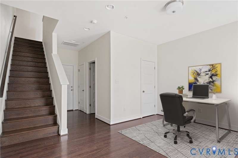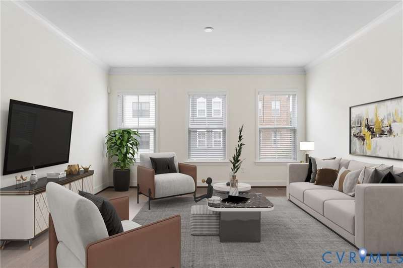 Welcome to 5414 Coopers Walk Lane - A Stylish 2-Bedroom Townhome in the Heart of Libbie Mill Midtown! Experience modern urban living in one of Richmond's most desirable communities! This beautifully maintained two-bedroom, multi-level townhome offers the perfect blend of comfort, style, and convenience-all located in vibrant Libbie Mill Midtown. The entry level features a versatile den or private office, complete with half bath & closet and direct access to the attached one-car garage with ample storage. Upstairs, enjoy an open-concept living space with a seamless flow between the living room, dining area, and gourmet kitchen. The kitchen is a chef's dream, featuring granite countertops, stainless steel appliances with gas cooking, a double-bowl undermount sink, and a convenient powder room. Step out onto the private balcony-perfect for morning coffee or evening wine. The third level hosts two spacious bedrooms, including a luxurious primary suite with a double vanity, walk-in shower, and generous closet. The second upstairs bedroom includes its own private en-suite bath, offering comfort and privacy for family or guests. Additional highlights include: Beautiful wood floors, Elegant crown molding throughout, Custom window treatments, Energy-efficient tankless hot water heater. Enjoy walkable access to all that Libbie Mill offers-restaurants, shopping, green spaces, and the award-winning Libbie Mill Library, just steps from your door. Community amenities include: Resort-style swimming pool, Fitness center, Playground, Community library! All just minutes from I-95, I-64, Downtown Richmond, Willow Lawn, and Scott's Addition. Don't miss this exceptional 2-bedroom townhome-schedule your private tour today!