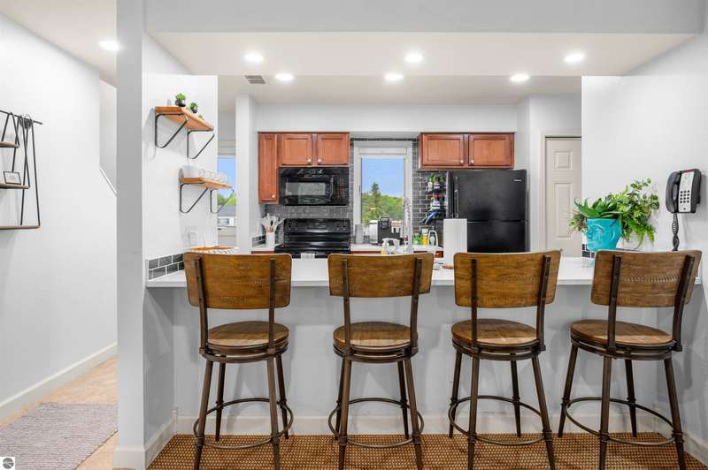 Perched above the third tee of Spruce Run Golf Course, this top-floor condo offers peaceful views, vaulted ceilings, and no upstairs neighbors--just quiet comfort in a scenic setting. The lofted second bedroom adds charm and flexibility, while the main living space opens to a private balcony through both the living room and primary suite. The condo itself has seen several thoughtful updates, including quartz kitchen countertops, a new backsplash, and fresh professional interior paint. Brand new sliding doors are already scheduled to be installed. One rare bonus: in-unit laundry, which only a handful of Golfview buildings include. This property also has a solid track record as a short-term rental and could easily continue to serve as a "guest-favorite" successful Airbnb. Whether you're looking for a turn-key investment or a low-maintenance Up North getaway, this one just feels like the right fit.