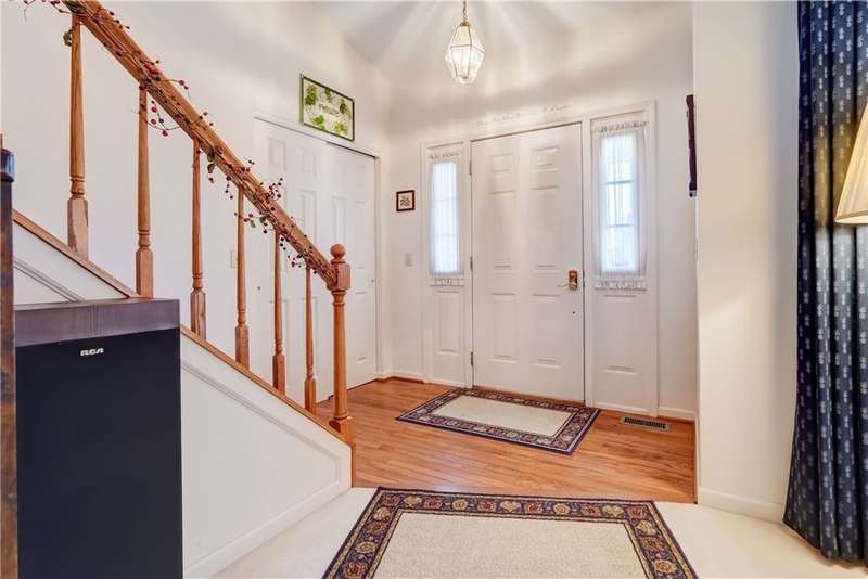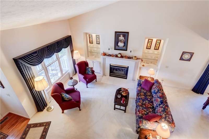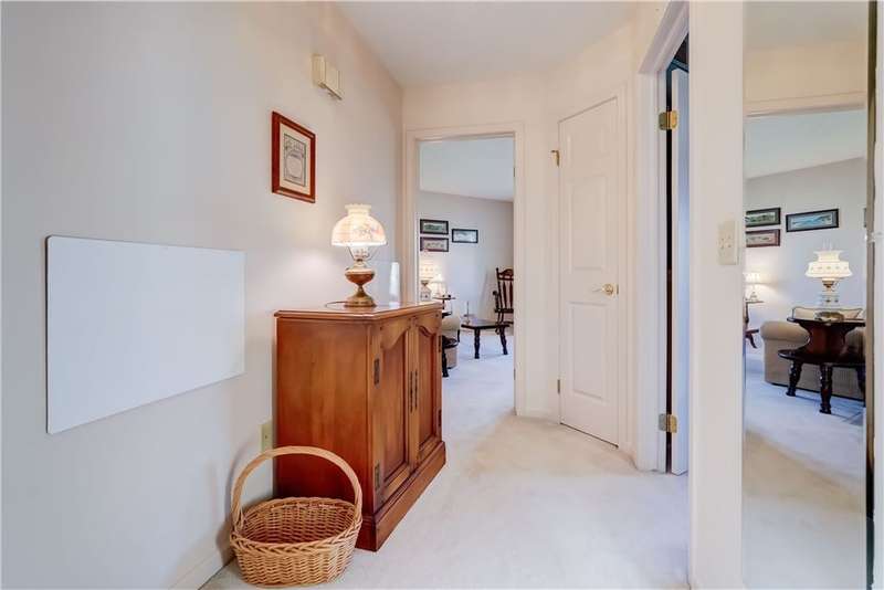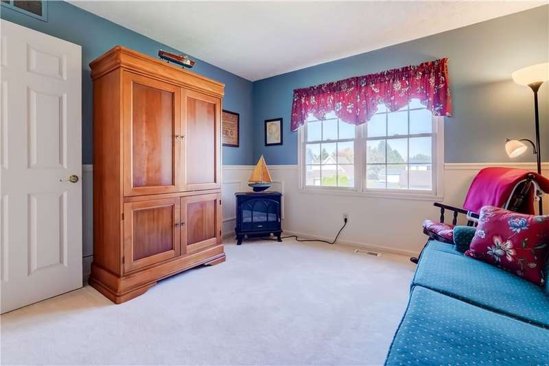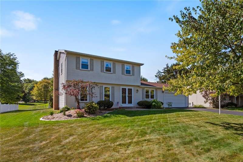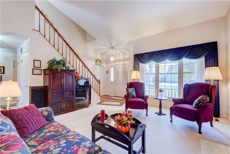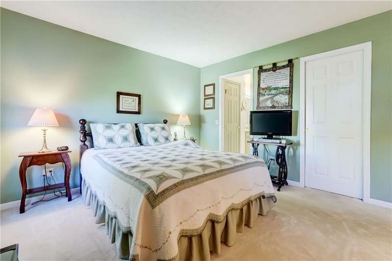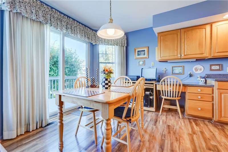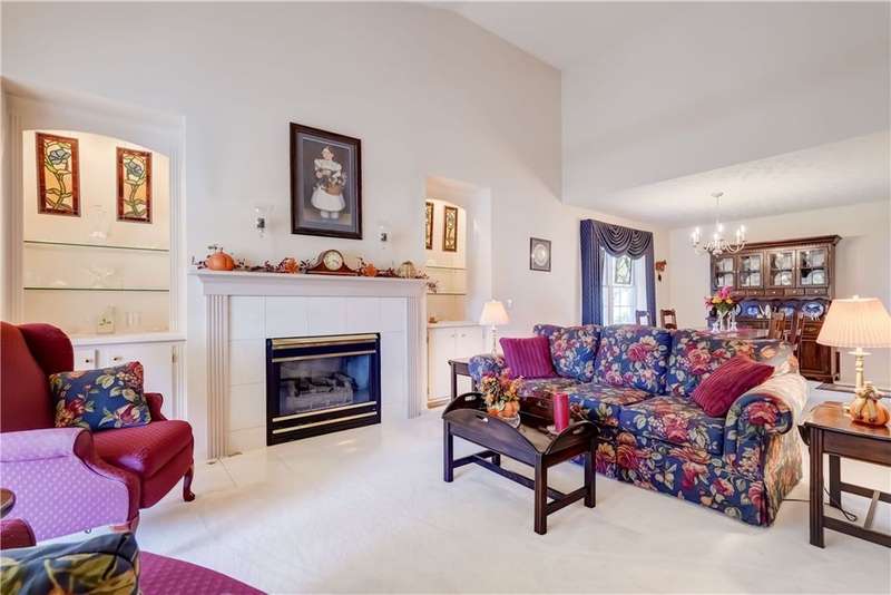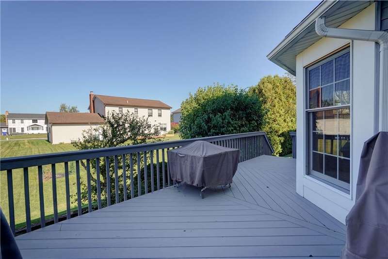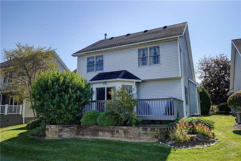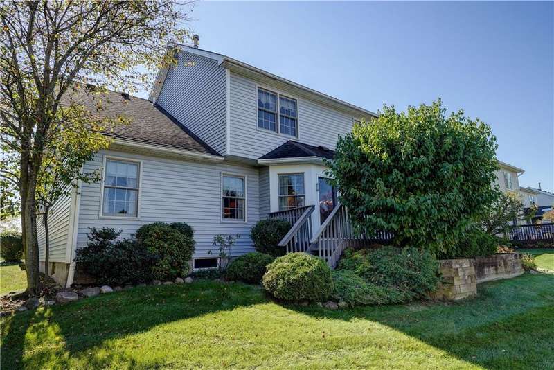 Lovingly cared for and move-in ready patio home featuring first floor primary suite. Spacious living room with gas fireplace, mantel and custom shelving & storage. dining room, eat-in kitchen with ample storage, solid surface countertops, newer appliances , separate dining area with slider to deck & view of backyard, 1st floor laundry. The primary bedroom has a large walk-in closet, bath with shower. Upstairs there are two bedrooms with large closets and a full bathroom. The basement is unfinished. Roof & HVAC less than 4 years old, neutral decor, custom window treatments, HOA $225/mo. covers lawn mowing, driveway plowing and roof. Delayed negotiations until October 7 @ 5 p.m.