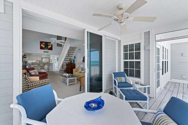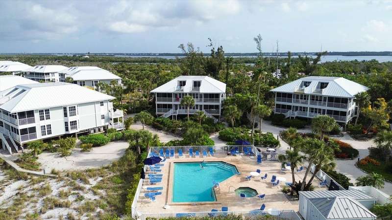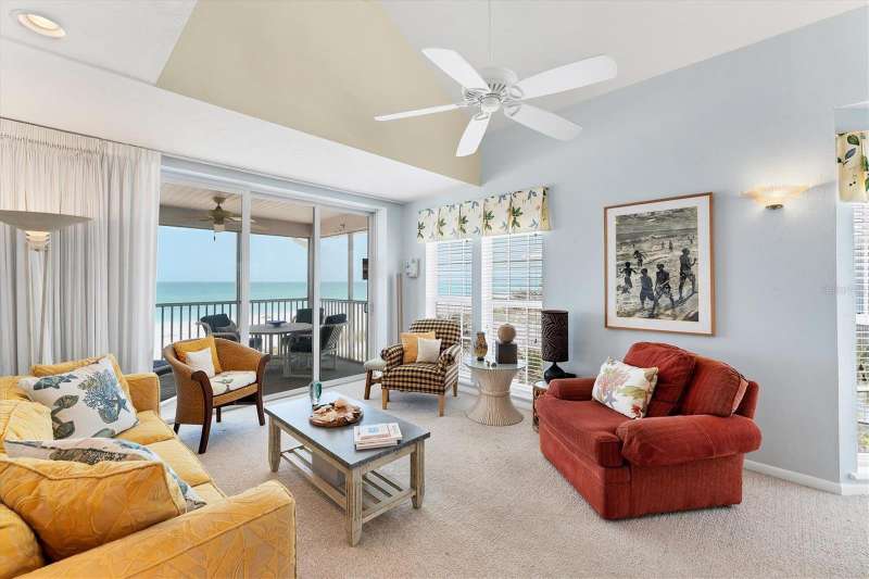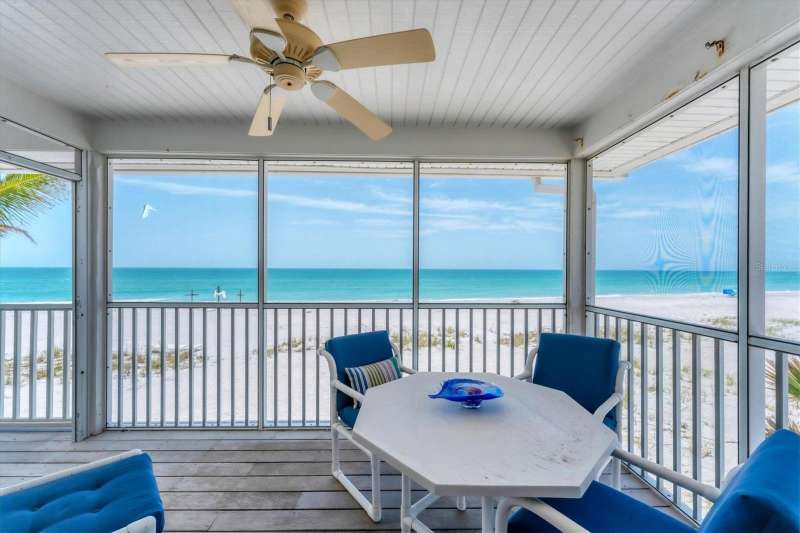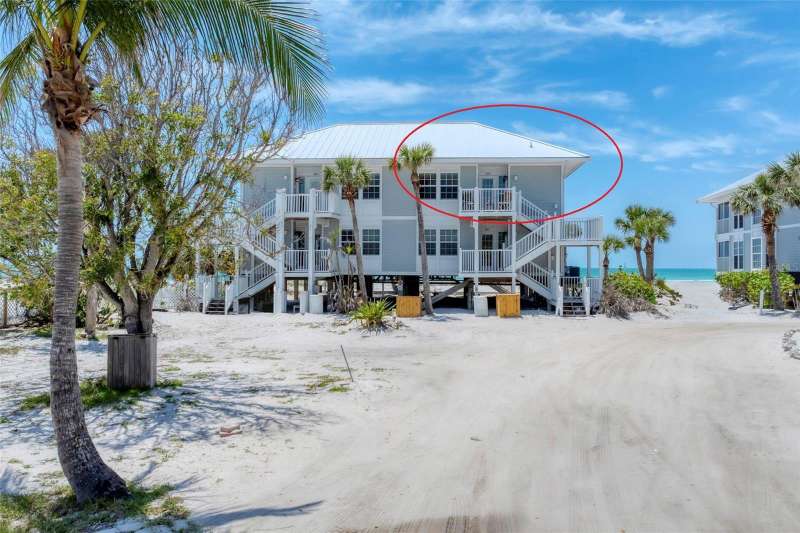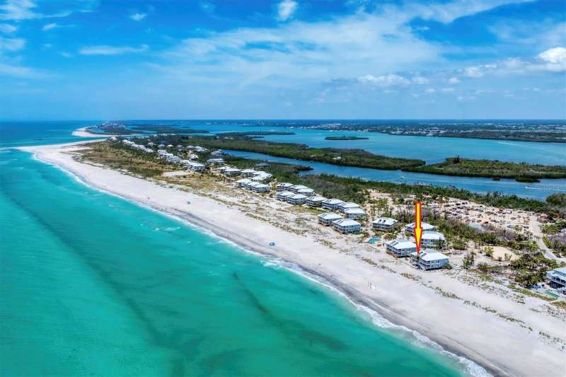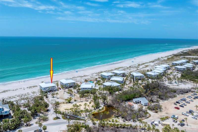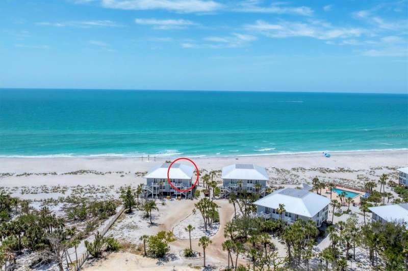 Live the ISLAND LIFE and enjoy UNOBSTRUCTED, PANORAMIC VIEWS of the glistening BLUE WATER of the GULF from YOUR HOME. Situated on the barrier island of Palm / Knight Island, at the southernmost end of the Palm Island Resort community, the location of this 2-level, 3 bedroom / 3 full bathroom over 2100 sf (under AC) condominium truly cannot be beat. This island home offers amazing space and comfort for you and the entire family with space to roam both on the main and second level. Enjoy the mesmerizing view and sound of the surf from either of the TWO waterfront PATIOS. The main level of this home features the kitchen, dining, main living, primary suite, second bedroom, second bath and laundry room. The second level hosts the family room, office/bonus room, bedroom (that fits two double beds!) and yet another full bathroom! The open-air patio on the second floor offers the ultimate in salt life serenity. Relax while you are protected by impact-resistant windows & doors and a metal roof. This amazing home is truly unique, in a truly unique location. The island is accessible only by car ferry, personal boat or water taxi, assuring you will always have a seat on the beach. In fact, the Resort provides the chaise lounge! Meander the miles of white sandy beach, toss a line in for tarpon or snook, or enjoy floating the waves. Order dinner to go from Rum Bay Restaurant and watch the sunset across the water. You might even catch a loggerhead turtle lay her eggs or watch the babies emerge into the world. Truly breathtaking. Palm Island Resort offers its residents the finest amenities, including 24-hour security and gate guards, private beach access with chaise lounge chairs, heated pool/spas, tennis courts, boat docks, fitness center, rentals (golf carts, bikes, kayaks, paddle boards, etc.), clubhouse, playground, and the only restaurant on the island. This is a golf cart community, so leave your vehicle and worries in the private parking lot and take your golf cart, or let the bellman escort you, to your private piece of paradise. Come, treat yourself to ISLAND LIFE.