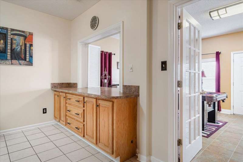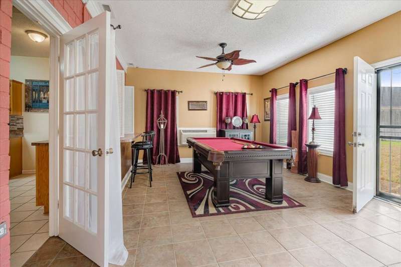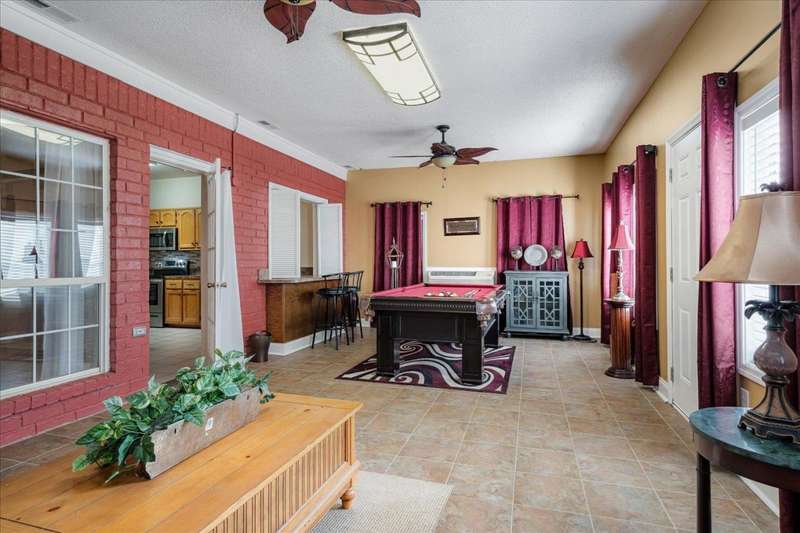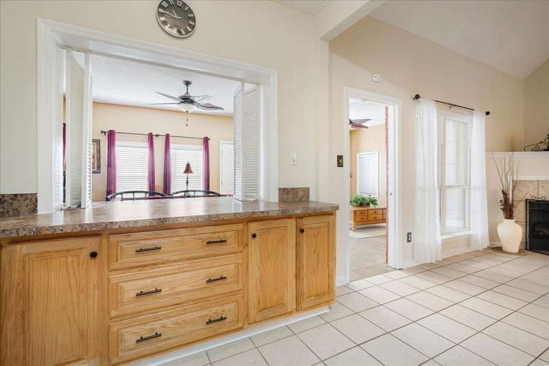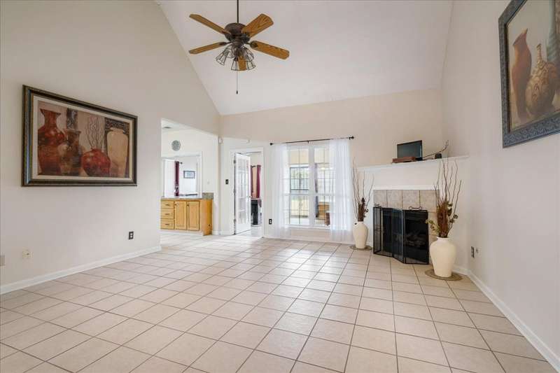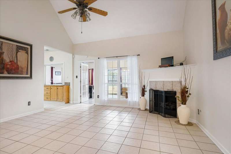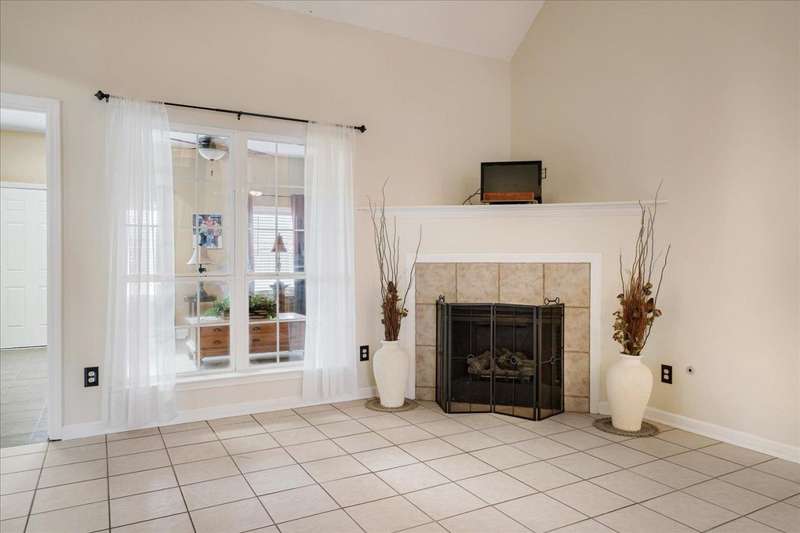 Welcome to 4464 Julia Cove - Stylish Comfort! This beautiful 3 bed, 2 bath home bonus is nestled in a quiet cove just minutes from the Naval base. This charming home features beautiful arches, tall, vaulted ceilings, and a cozy fireplace in the spacious living area. The split floor plan offers privacy with the primary suite separate from the guest bedrooms. A built-in storm shelter provides added peace of mind during severe weather. Located on a low-traffic cove, the setting is ideal for enjoying a sense of community and quiet living. Whether relaxing indoors or enjoying the outdoor space, this home delivers comfort, style, and functionality. Schedule your private tour today?don't miss this opportunity to make Julia Cove your new address!