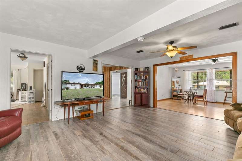 Welcome to this beautifully maintained 3-bedroom, 2-bathroom home nestled in one of Eustis's most sought-after neighborhoods. Offering the perfect blend of comfort, functionality, and outdoor living, this residence is ideal for families, entertainers, or those seeking a versatile living space. Step inside to discover a spacious open-concept living and dining area filled with natural light-perfect for gathering and entertaining. The living space flows seamlessly into a tranquil screened-in porch that overlooks your private swimming pool and expansive backyard oasis. Enjoy relaxing or hosting guests under the large cabana-style pergola, fully equipped with electricity-ideal for outdoor dining, parties, or simply unwinding. Inside, you'll find generously sized bedrooms, including an oversized primary suite featuring a large ensuite bath and convenient attached laundry/mudroom for added functionality. A bonus multi-purpose room offers endless possibilities-whether used as a playroom, homeschool space, guest room, or in-law suite-with its own private exterior entrance for added privacy and flexibility. The fully fenced backyard adds privacy and peace of mind for pets and family fun. Major updates include all-new piping completed in 2024, durable new Hardie board siding, and a brand-new hot water heater. Just three minutes from vibrant downtown Eustis, you'll enjoy an exciting mix of new dining spots, local shops, and picturesque views of Lake Eustis. 10-15 minutes from Downtown Tavares and Downtown Mount Dora. One hour from Orlando theme parks. Don't miss your chance to own this move-in-ready gem that blends comfort, character, and convenience!