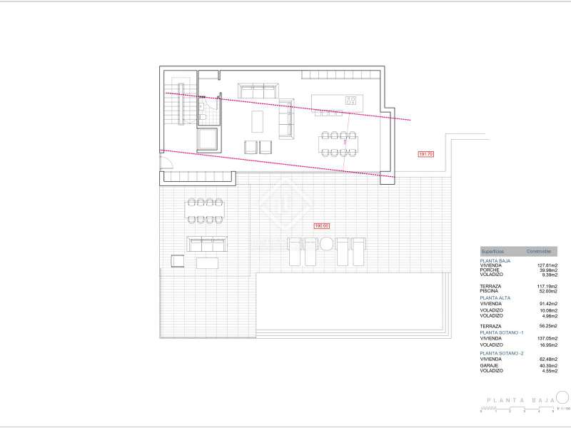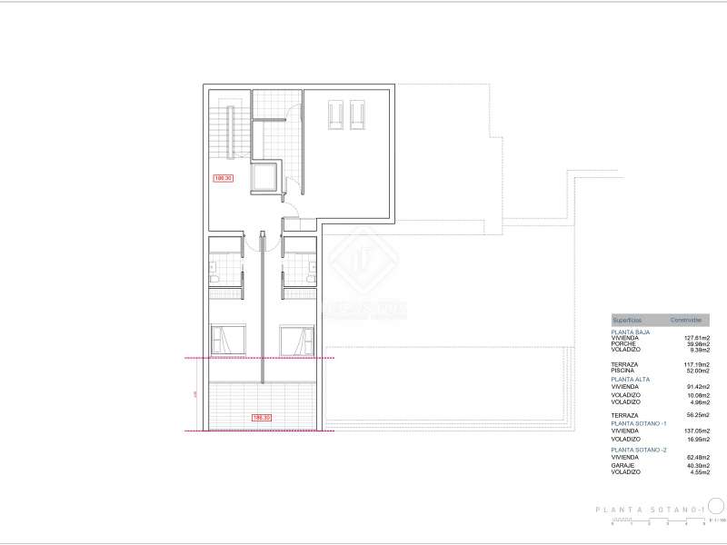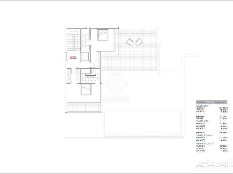 Luxury villa in Benissa with VIEWS TO THE SEA and the Peñón de Ifach. This villa, with paneled exposed concrete finishes, has 4 floors that are connected with a lift and an internal staircase. The ground floor has a large open living-dining room-kitchen and a toilet. The kitchen is fully equipped and has an island for cooking. Sliding doors at ceiling height give direct access to a large terrace and pool. The upper floor contains two bedrooms with en-suite bathroom and a terrace. The property has 2 basements. Basement number 1 has two other bedrooms, each with its own bathroom and a utility room. Basement number 2 houses the gym, the wine cellar and a garage with capacity for 4 cars. The house has air conditioning (with ducts) and central heating with heat pump. It has an automatic entrance door with independent pedestrian entrance and intercom. On the same level as the main property is the pool. It includes exterior carpentry with automatic blinds and mosquito nets in bedrooms, built-in wardrobes with modules and basic alarm installation.